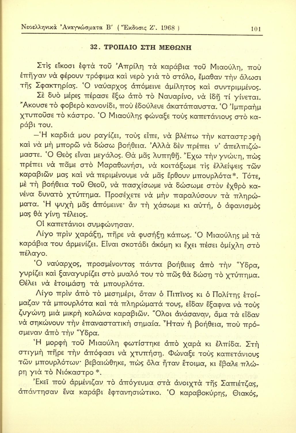 Σχολικό εγχειρίδιο Νέων Ελληνικών Β΄ Εξατάξιου Γυμνασίου που περιλαμβάνει ποιήματα και πεζά Ελλήνων συγγραφέων και δημοτικά τραγούδια εμπνευσμένα από την σύγχρονη ελληνική ιστορία, τη βυζαντινή ιστορία, την ...