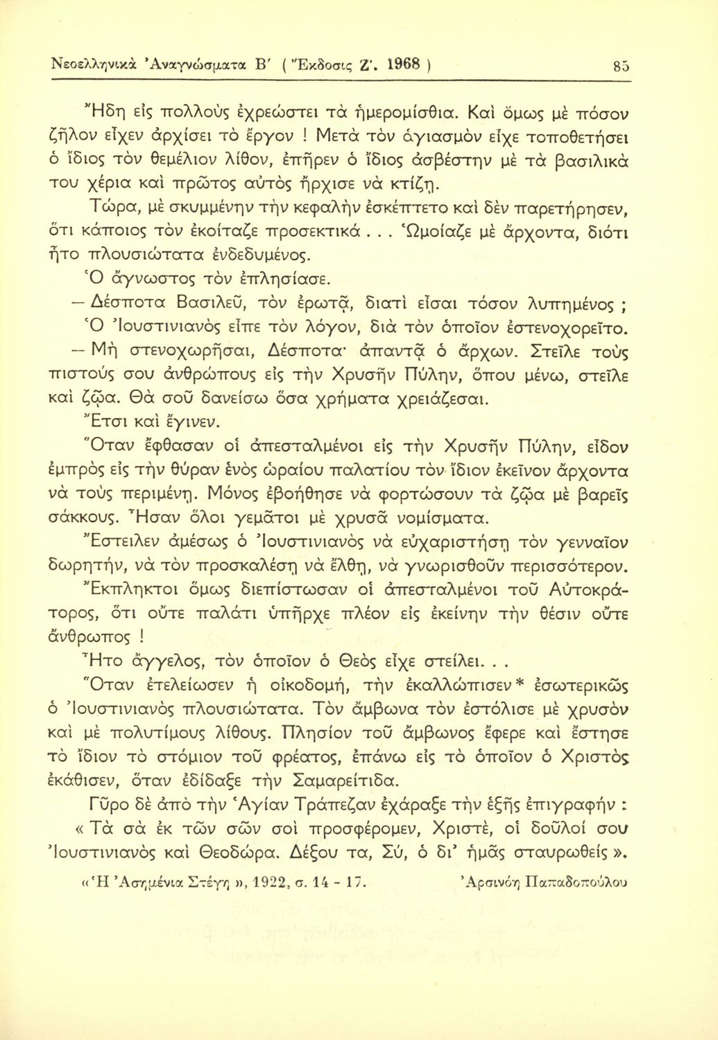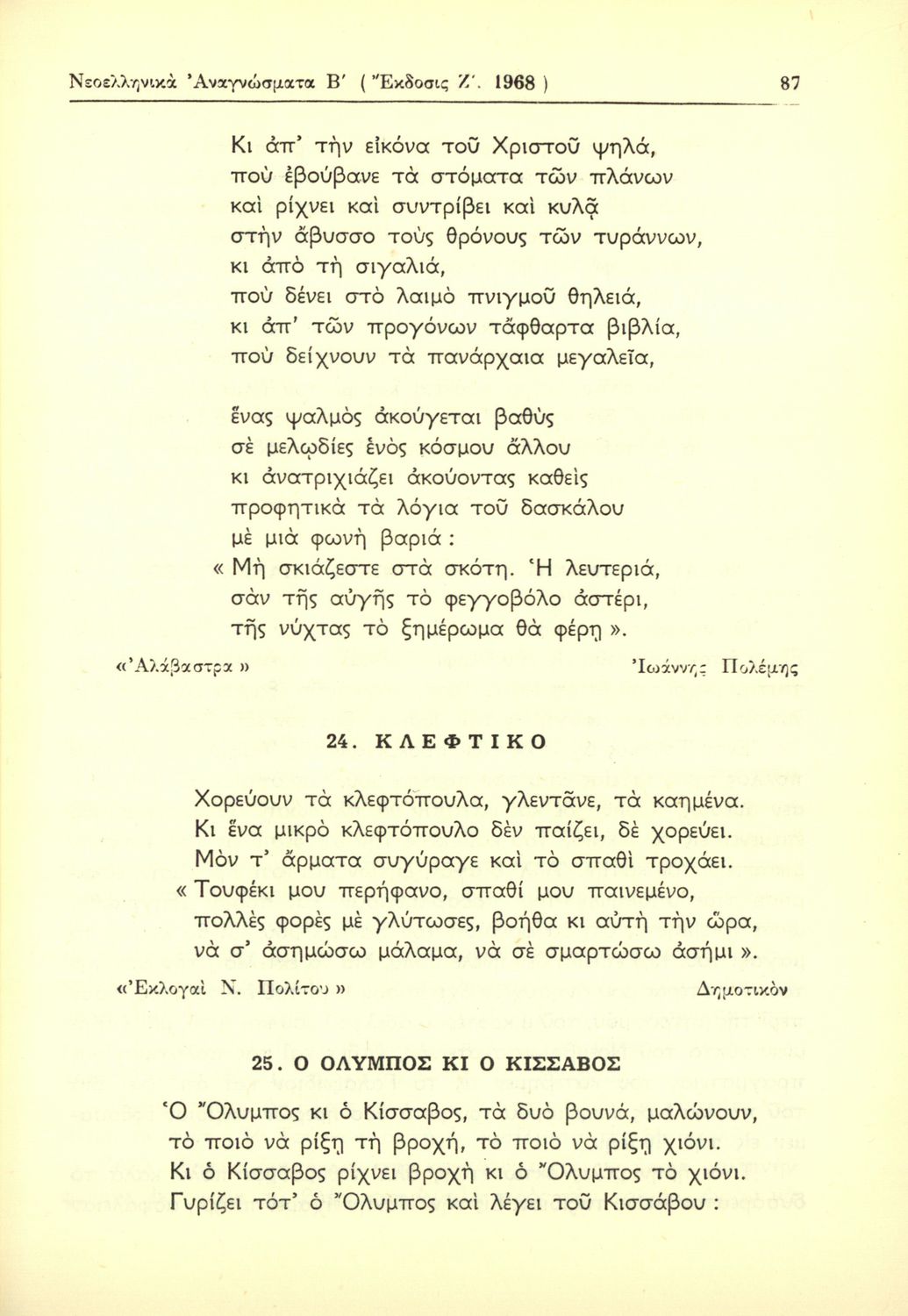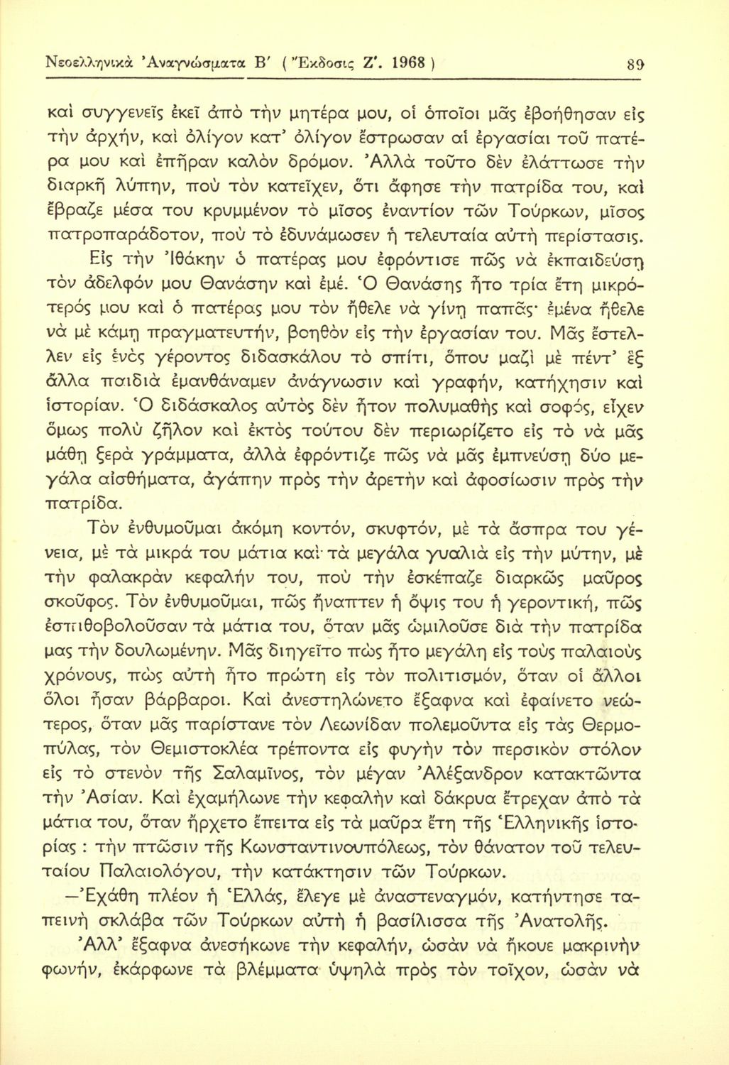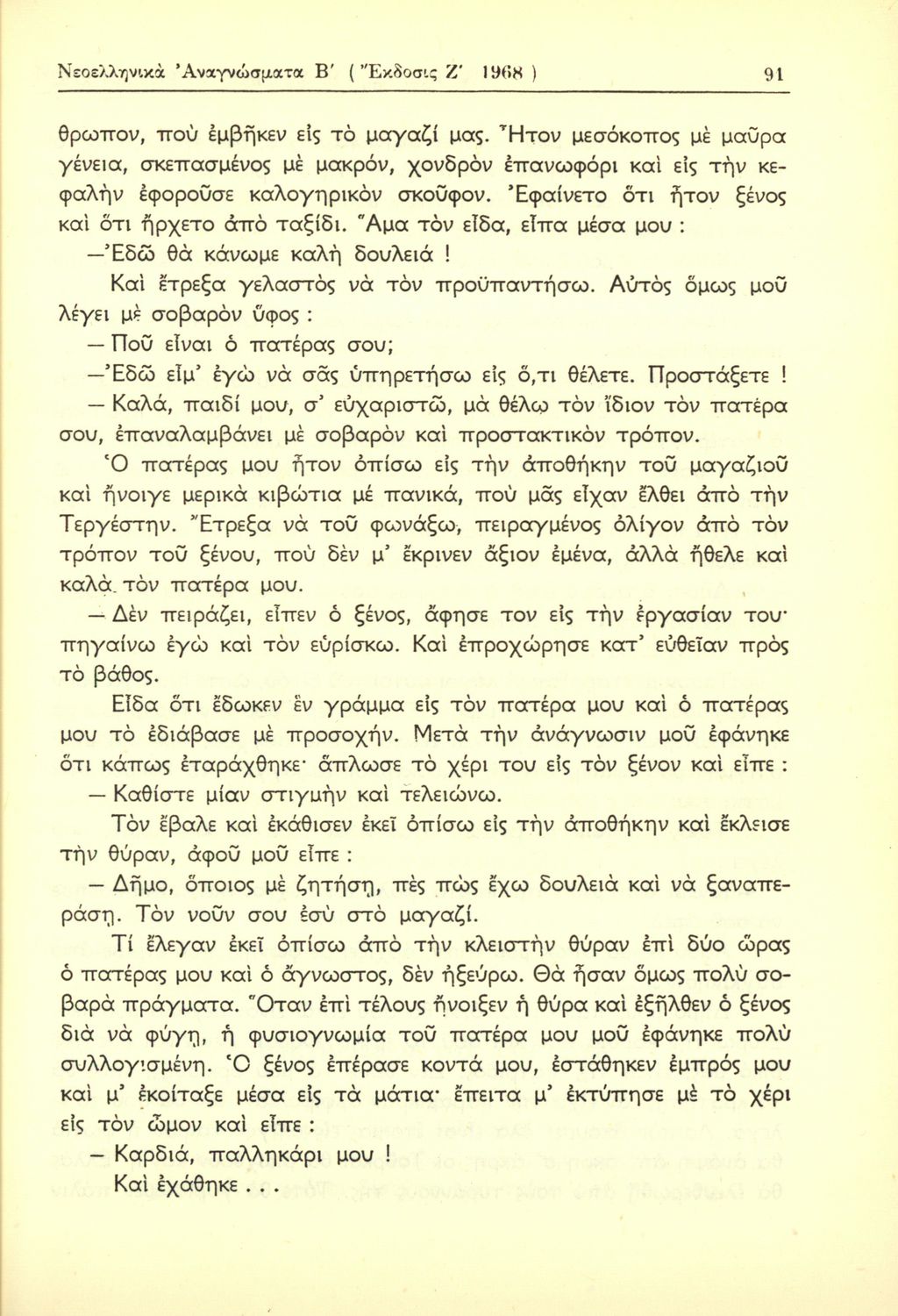 Σχολικό εγχειρίδιο Νέων Ελληνικών Δ΄ Γυμνασίου και Β΄ Αστικού Σχολείου που περιέχει πεζά και ποιήματα Ελλήνων συγγραφέων εμπνευσμένα από τη θρησκευτική και κοινωνική ζωή, την ελληνική μυθολογία, την αρχαία και