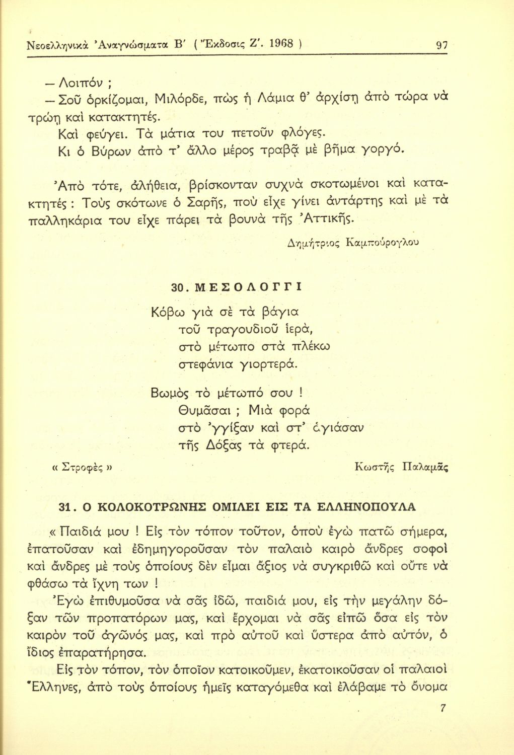 Σχετιζόμενοι όροι:  Κρυστάλλης, Παλαμάς, Σολωμός, Δροσίνης