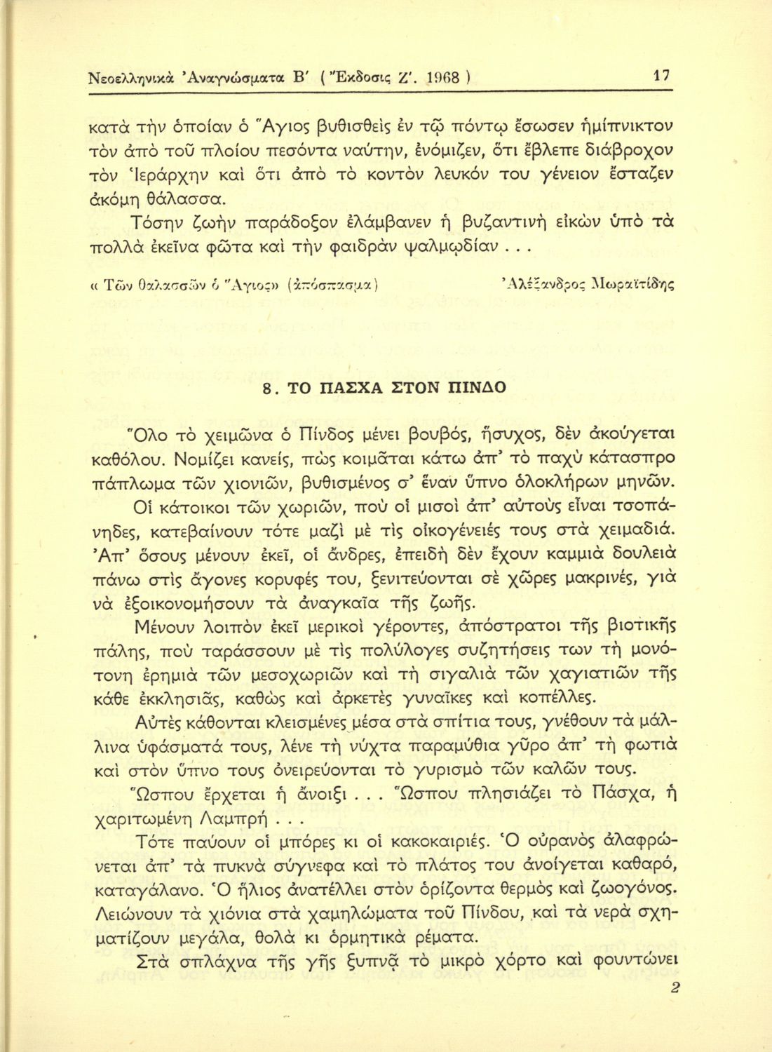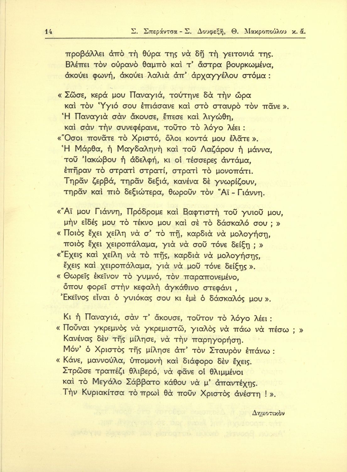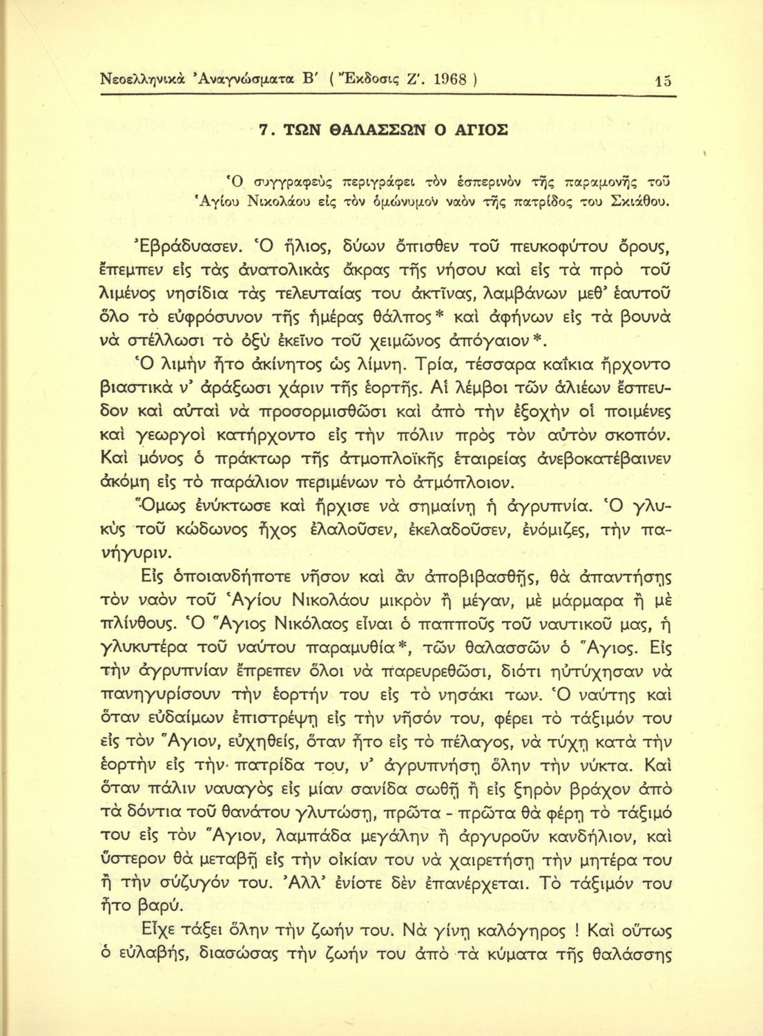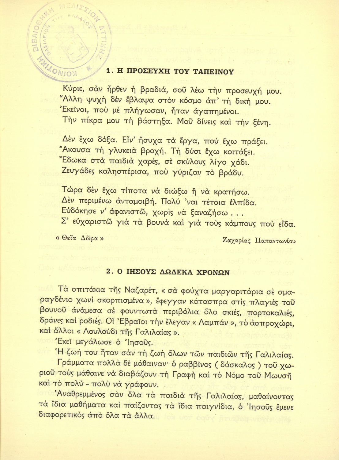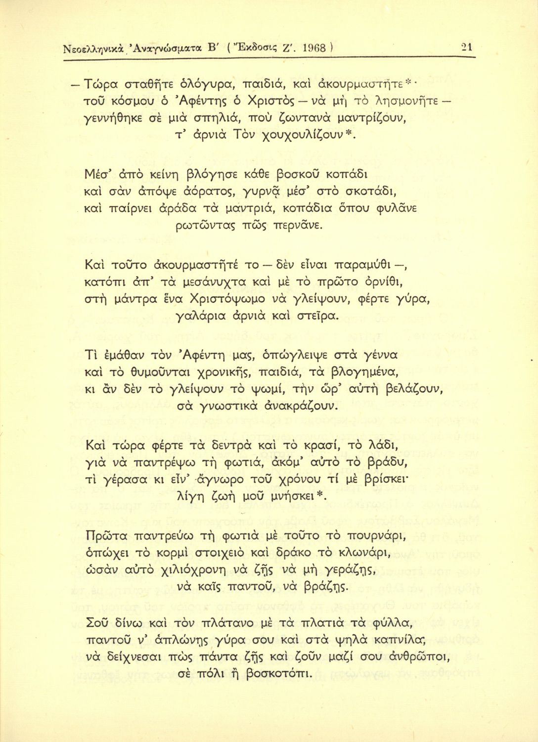 Σχολικό εγχειρίδιο Νέων Ελληνικών Δ΄ Γυμνασίου και Β΄ Αστικού Σχολείου που περιέχει πεζά και ποιήματα Ελλήνων συγγραφέων εμπνευσμένα από τη θρησκευτική και κοινωνική ζωή, την ελληνική μυθολογία, την αρχαία και