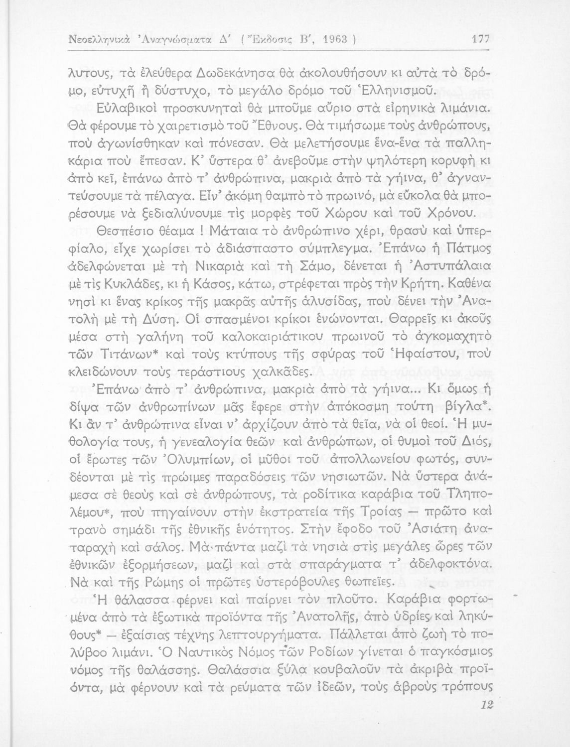 LDR 01158 2200217 4500 035 ## _a01-18402 040 ## _aΙνστιτούτο Εκπαιδευτικής Πολιτικής 041 ## _ael 100 ## _aΓ. Καλαματιανός _aΛ. Βρανούσης _aΒ. Σφυρόερας _aΚ. Ρωμαίος _aΠ. Πάρρης 110 ## _a18402 245 0# _aΝεοελληνικά Αναγνώσματα, Δ' Γυμνασίου 250 ## _a2η Έκδοση 260 ## _aΑθήνα _bΟργανισμός Εκδόσεως Διδακτικών Βιβλίων _c1963 300 ## _a296 _c20 520 ## _aΣχολικό εγχειρίδιο Νέων Ελληνικών για τη Δ΄ Γυμνασίου. Περιέχει πεζά και ποιήματα Ελλήνων λογοτεχνών καθώς και βιογραφίες των συγγραφέων. 521 ## _aΔ' Γυμνασίου 522 ## _aΕλλάδα 546 ## _aΚαθαρεύουσα / Δημοτική 563 ## _aΣκληρό Εξώφυλλο 583 ## _a1130/31-1-1963 _c1963 650 #4 _aΒιογραφίες _aΔημοτικά _aΘρησκευτική ζωή _aΠεζά _aΠοιήματα