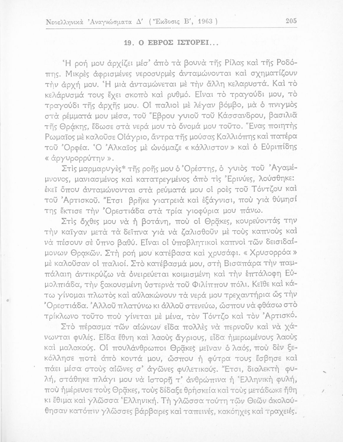 Σχολικό εγχειρίδιο Νέων Ελληνικών Δ΄ Γυμνασίου και Β΄ Αστικού Σχολείου που περιέχει πεζά και ποιήματα Ελλήνων συγγραφέων εμπνευσμένα από τη θρησκευτική και κοινωνική ζωή, την ελληνική μυθολογία, την αρχαία και