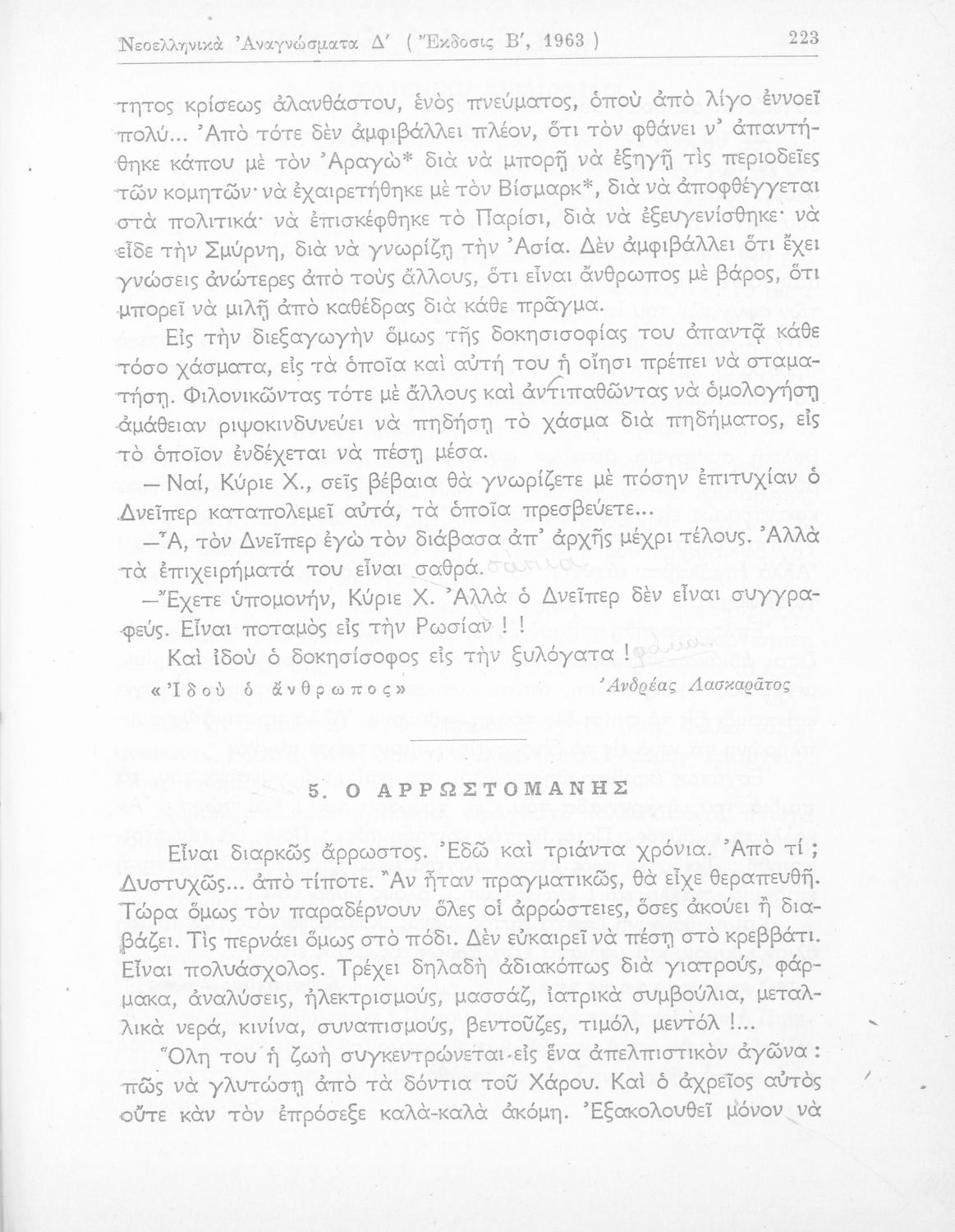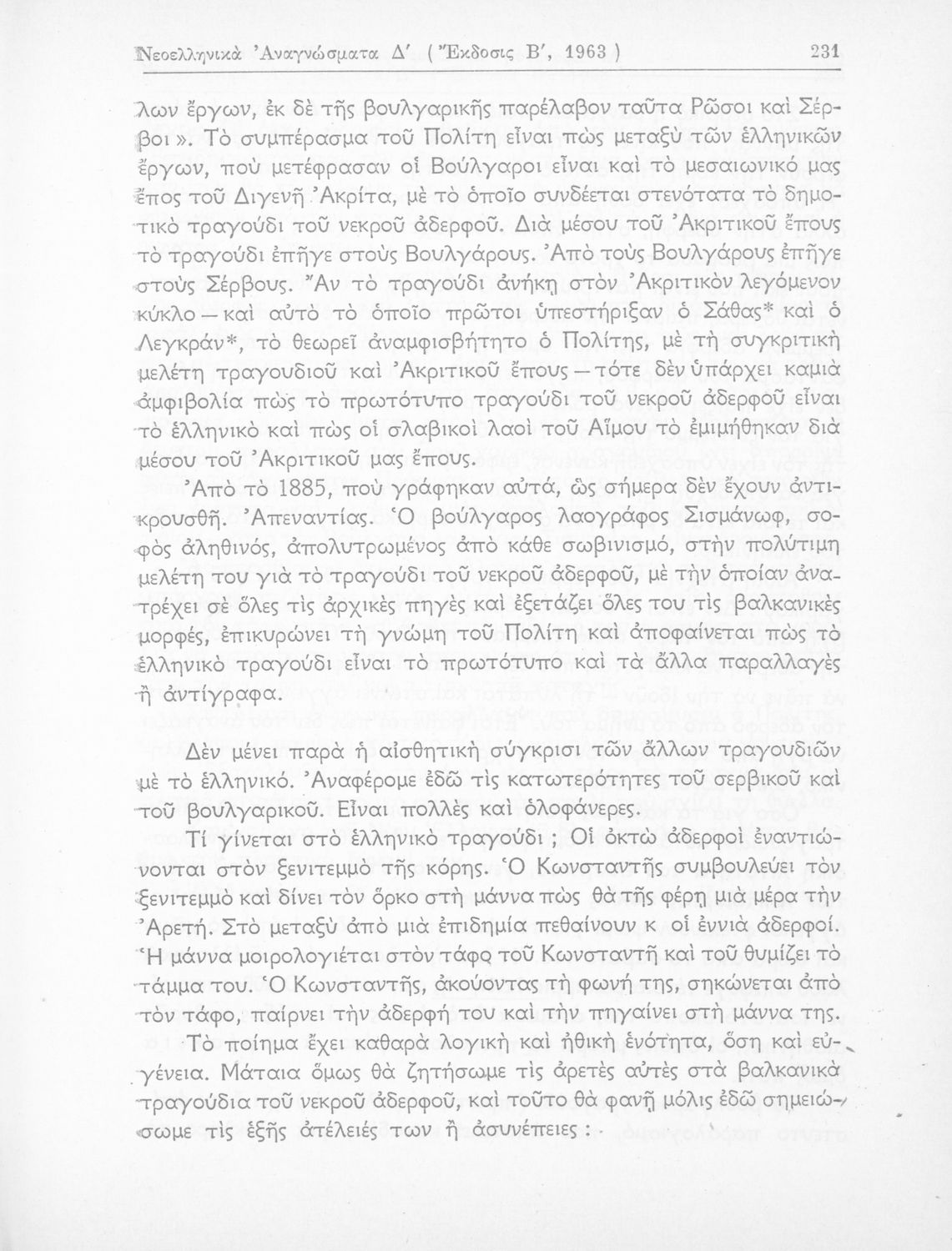 Σχολικό εγχειρίδιο Νέων Ελληνικών Δ΄ Γυμνασίου και Β΄ Αστικού Σχολείου που περιέχει πεζά και ποιήματα Ελλήνων συγγραφέων εμπνευσμένα από τη θρησκευτική και κοινωνική ζωή, την ελληνική μυθολογία, την αρχαία και