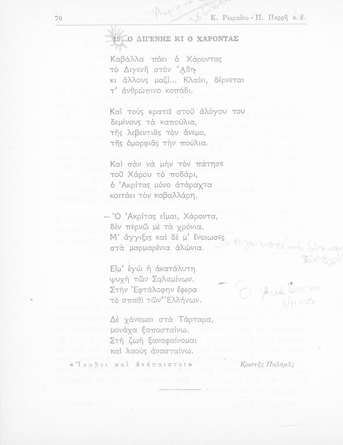 Σχετιζόμενοι όροι:  Παλαμάς, Δροσίνης, Σολωμός, Νιρβάνας
