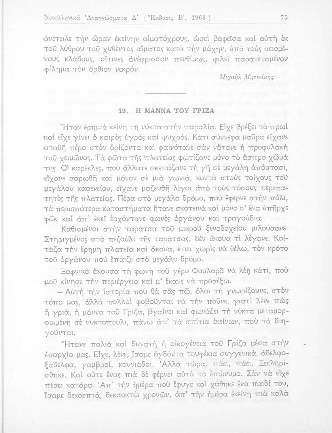 Σχολικό εγχειρίδιο Νέων Ελληνικών Δ΄ Γυμνασίου και Β΄ Αστικού Σχολείου που περιέχει πεζά και ποιήματα Ελλήνων συγγραφέων εμπνευσμένα από τη θρησκευτική και κοινωνική ζωή, την ελληνική μυθολογία, την αρχαία και