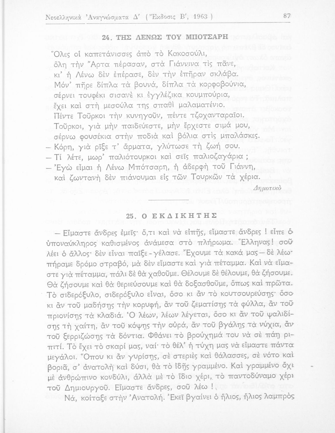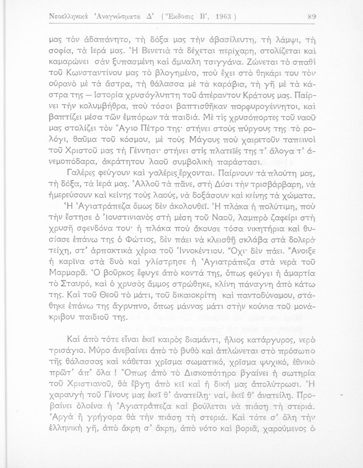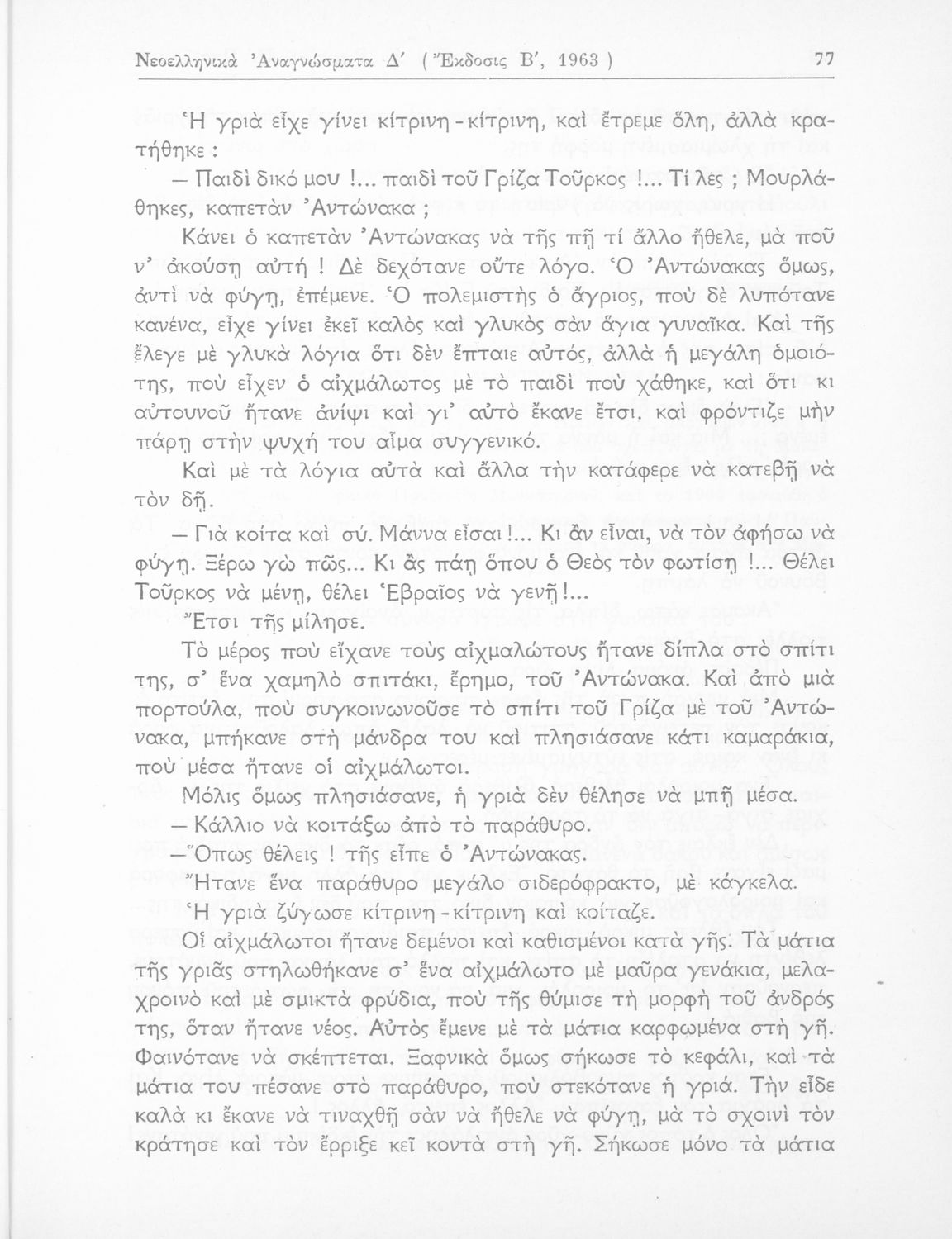 Σχολικό εγχειρίδιο Νέων Ελληνικών Δ΄ Γυμνασίου και Β΄ Αστικού Σχολείου που περιέχει πεζά και ποιήματα Ελλήνων συγγραφέων εμπνευσμένα από τη θρησκευτική και κοινωνική ζωή, την ελληνική μυθολογία, την αρχαία και
