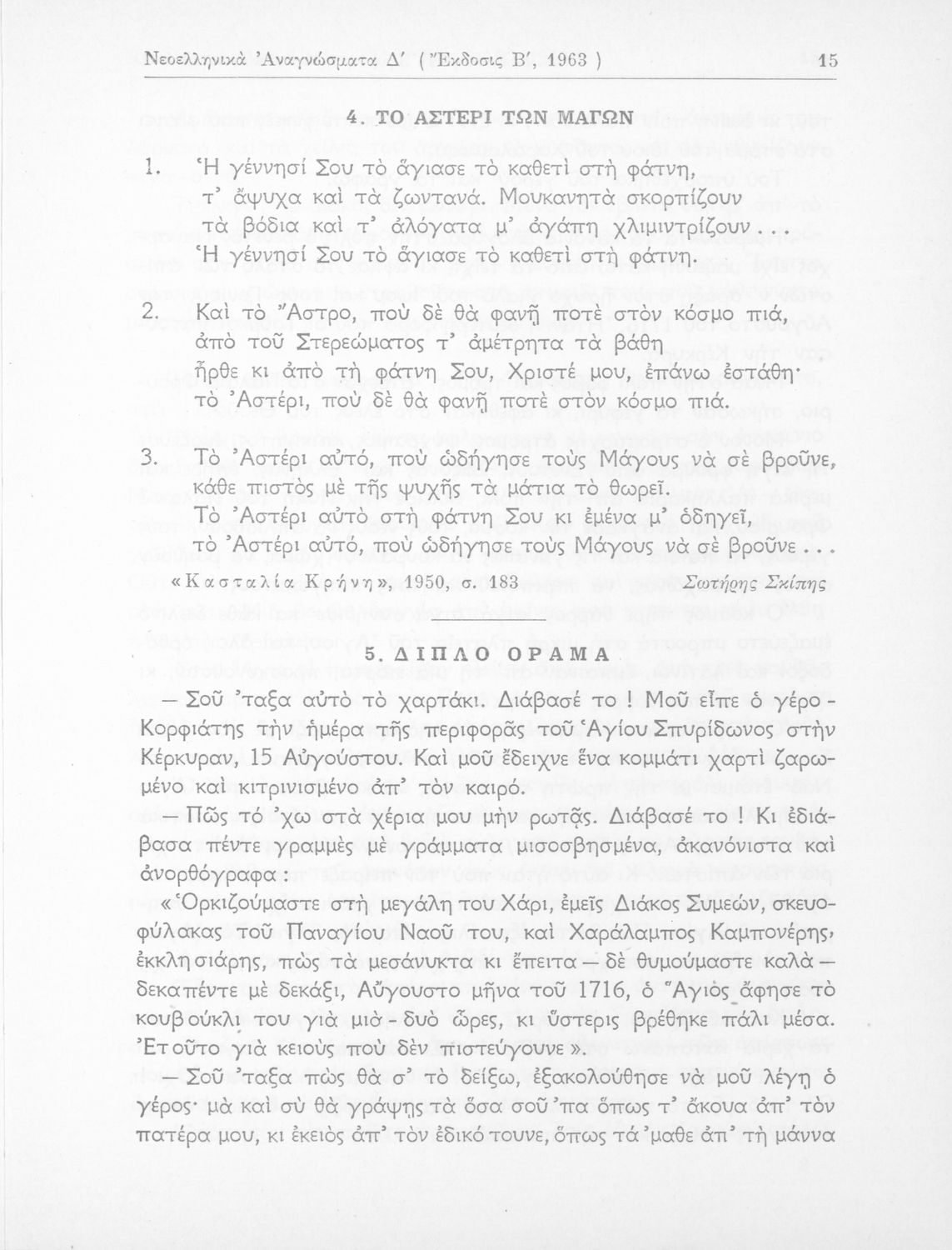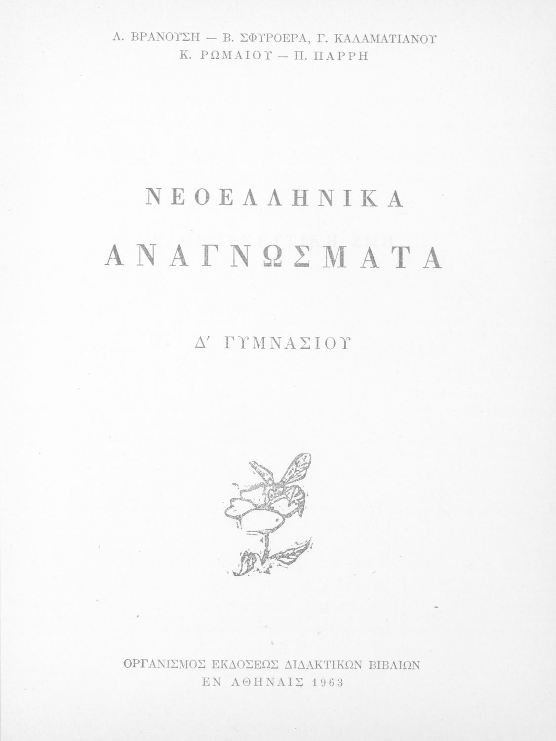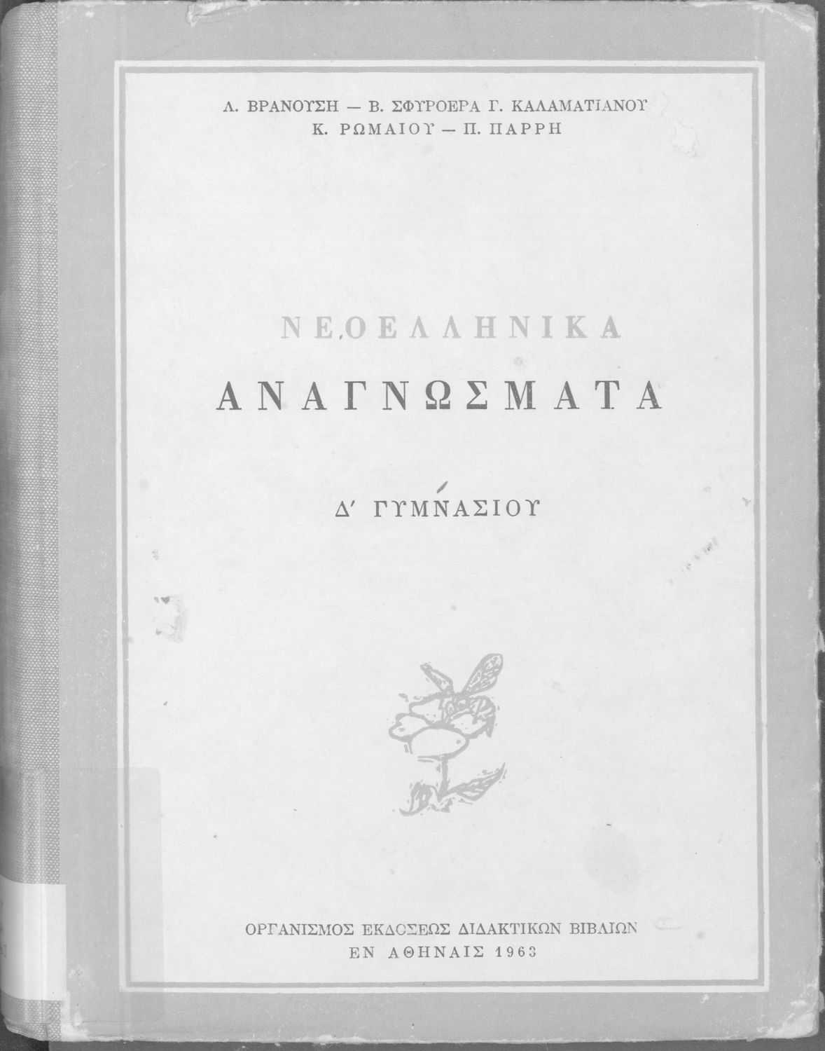 Σχολικό εγχειρίδιο Νέων Ελληνικών για τη Δ΄ Γυμνασίου. Περιέχει πεζά και ποιήματα Ελλήνων λογοτεχνών καθώς και βιογραφίες των συγγραφέων.