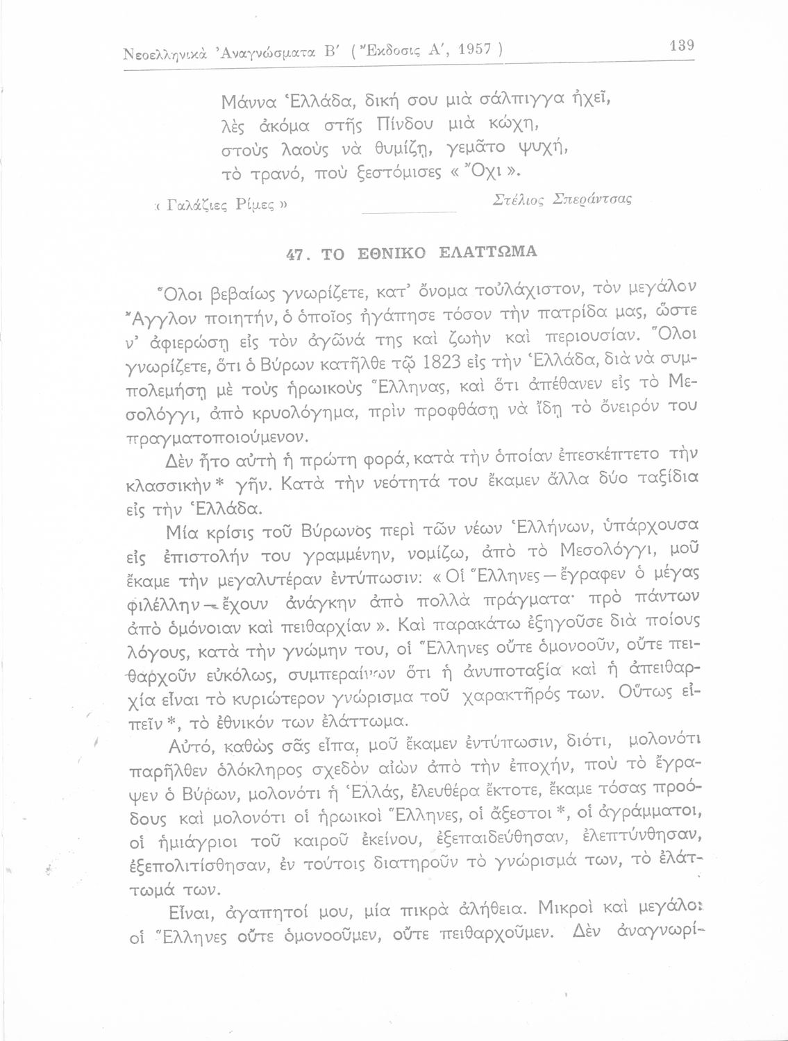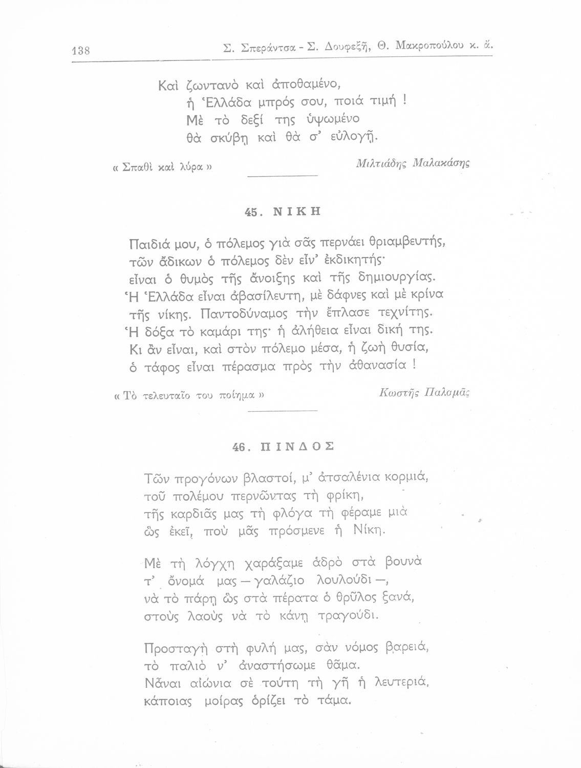 Σχολικό εγχειρίδιο Νέων Ελληνικών Β΄ Εξαταξίου Γυμνασίου που περιλαμβάνει που περιλαμβάνει ποιήματα και πεζά Ελλήνων συγγραφέων εμπνευσμένα από την αρχαία και σύγχρονη ελληνική ιστορία, την ελληνική φύση και ...