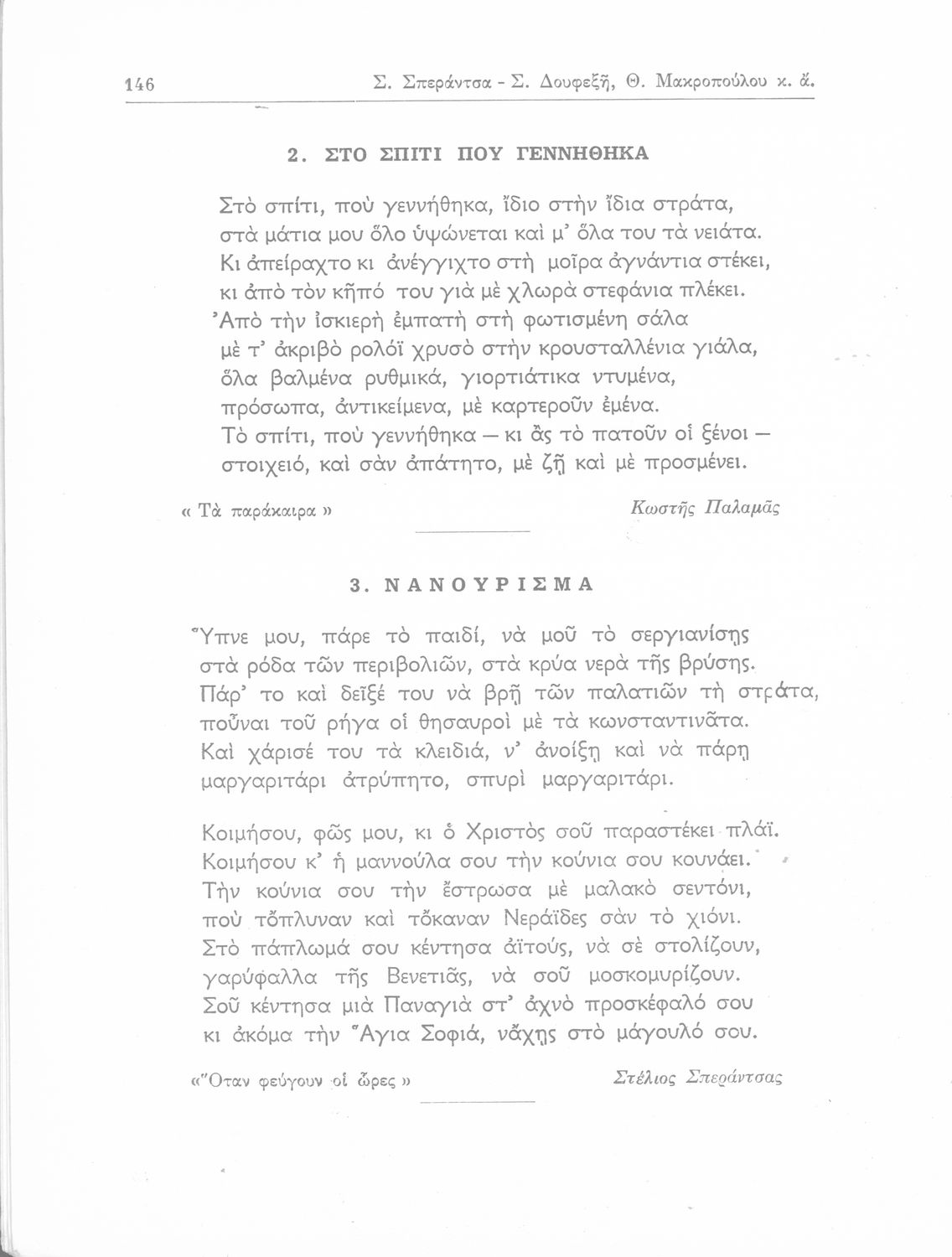 Σχολικό εγχειρίδιο Νέων Ελληνικών Β' Γυμνασίου που περιέχει ποιήματα και πεζά Ελλήνων συγγραφέων εμπνευσμένα από τη θρησκευτική, εθνική, οικογενειακή και κοινωνική ζωή και την ελληνική φύση. Περιέχει παράρτημα