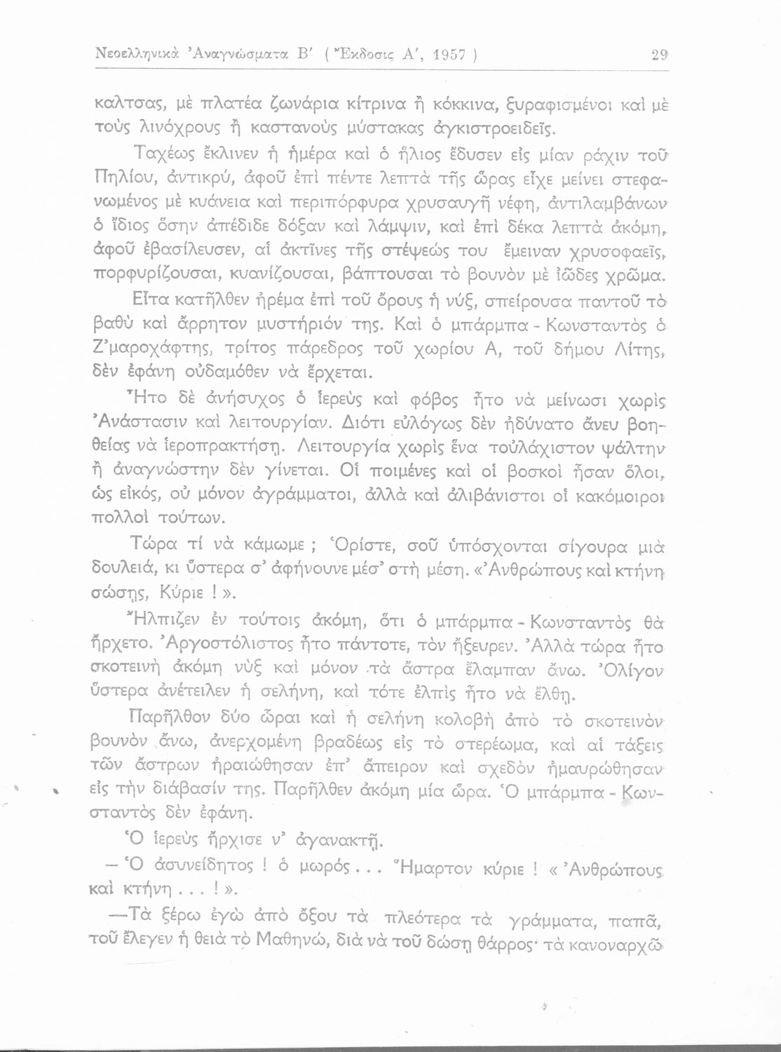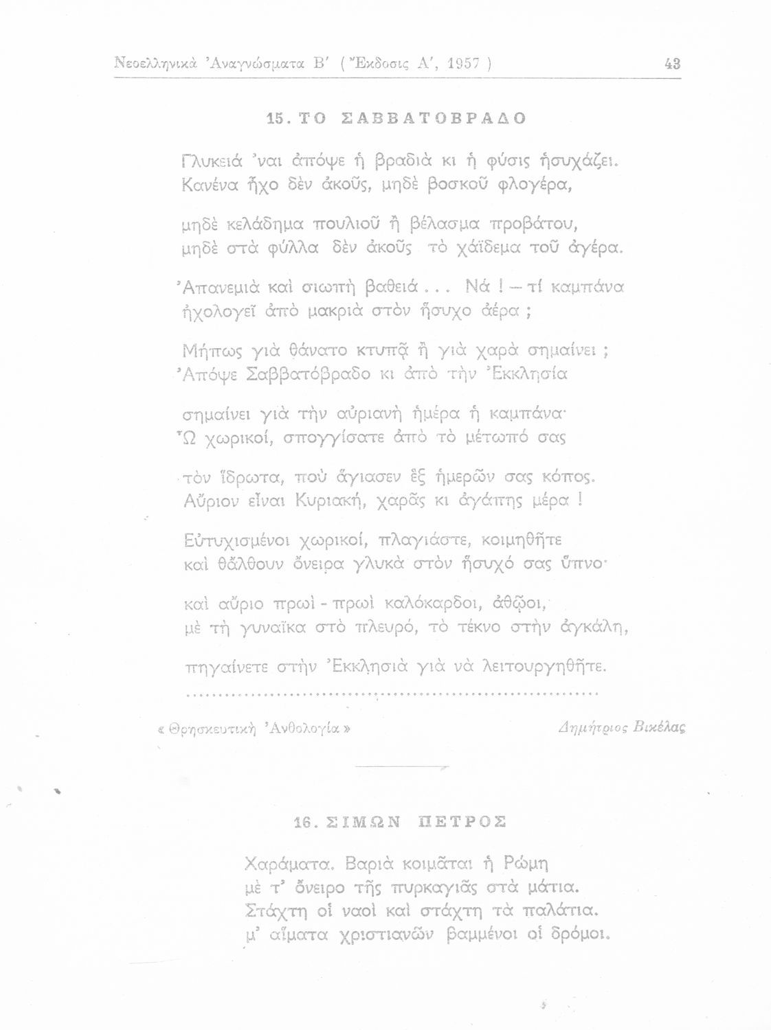 Σχολικό εγχειρίδιο Νέων Ελληνικών Δ΄ Γυμνασίου και Β΄ Αστικού Σχολείου που περιέχει πεζά και ποιήματα Ελλήνων συγγραφέων εμπνευσμένα από τη θρησκευτική και κοινωνική ζωή, την ελληνική μυθολογία, την αρχαία και