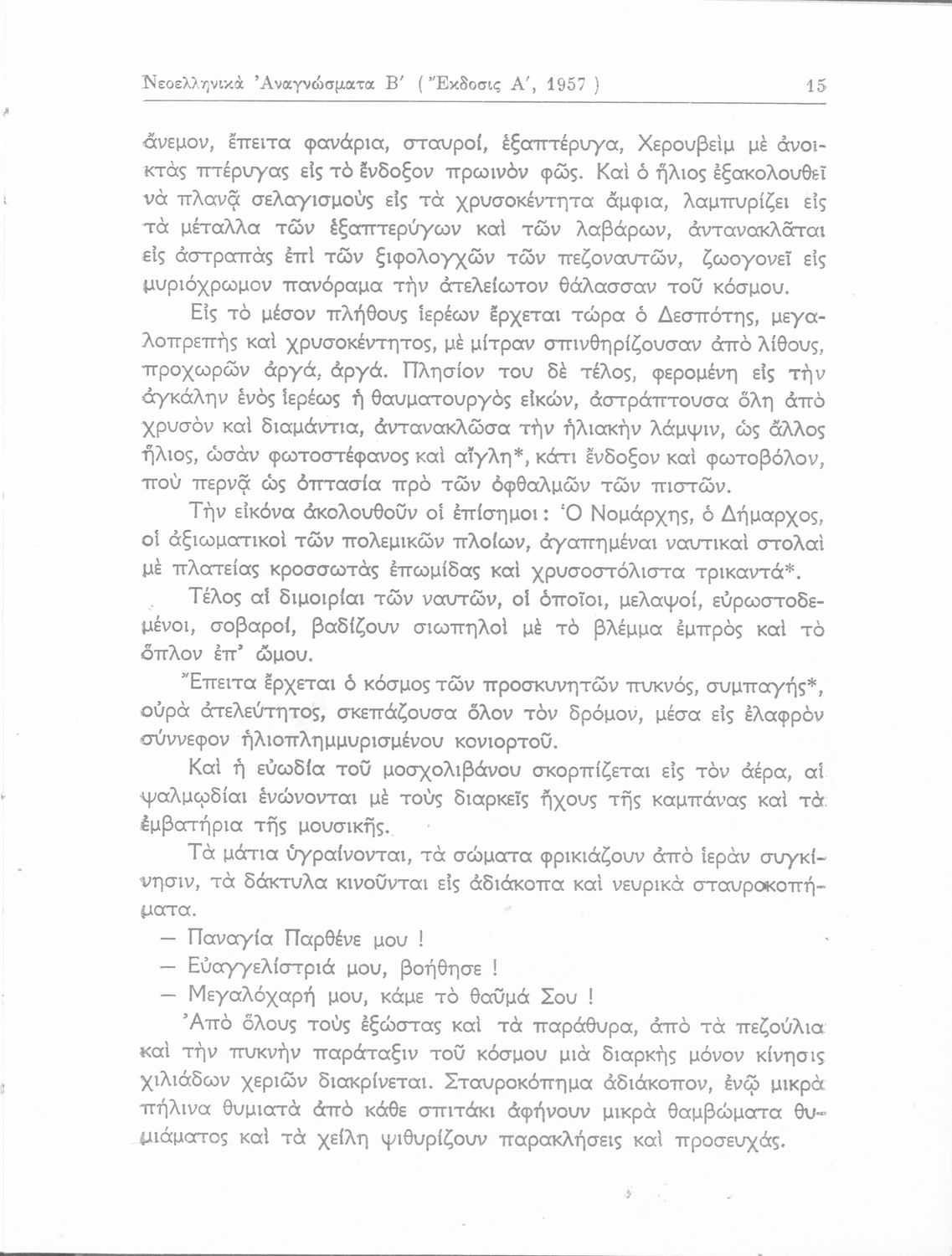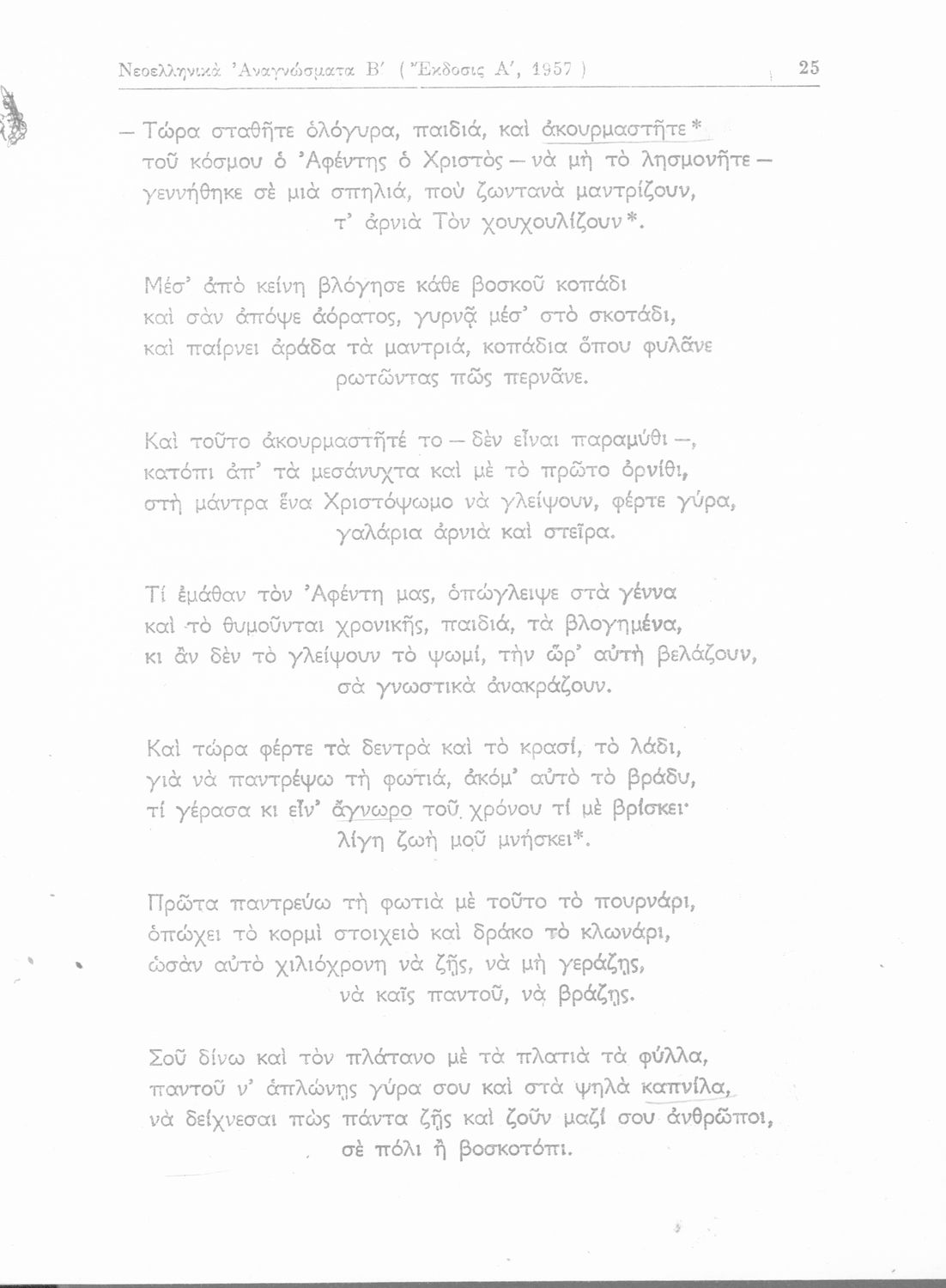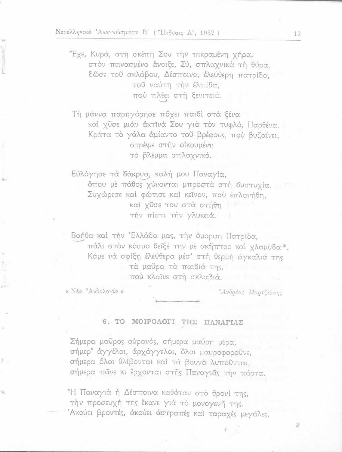 Σχολικό εγχειρίδιο Νέων Ελληνικών Δ΄ Γυμνασίου και Β΄ Αστικού Σχολείου που περιέχει πεζά και ποιήματα Ελλήνων συγγραφέων εμπνευσμένα από τη θρησκευτική και κοινωνική ζωή, την ελληνική μυθολογία, την αρχαία και