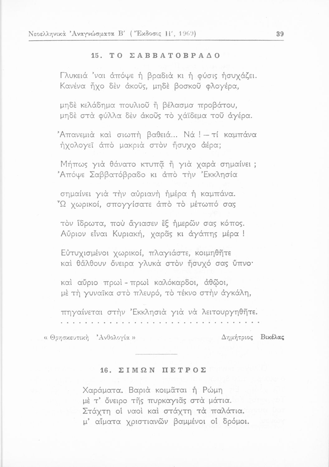 Σχολικό εγχειρίδιο Νέων Ελληνικών Β' Γυμνασίου που περιέχει ποιήματα και πεζά Ελλήνων συγγραφέων εμπνευσμένα από τη θρησκευτική, εθνική, οικογενειακή και κοινωνική ζωή και την ελληνική φύση. Περιέχει παράρτημα