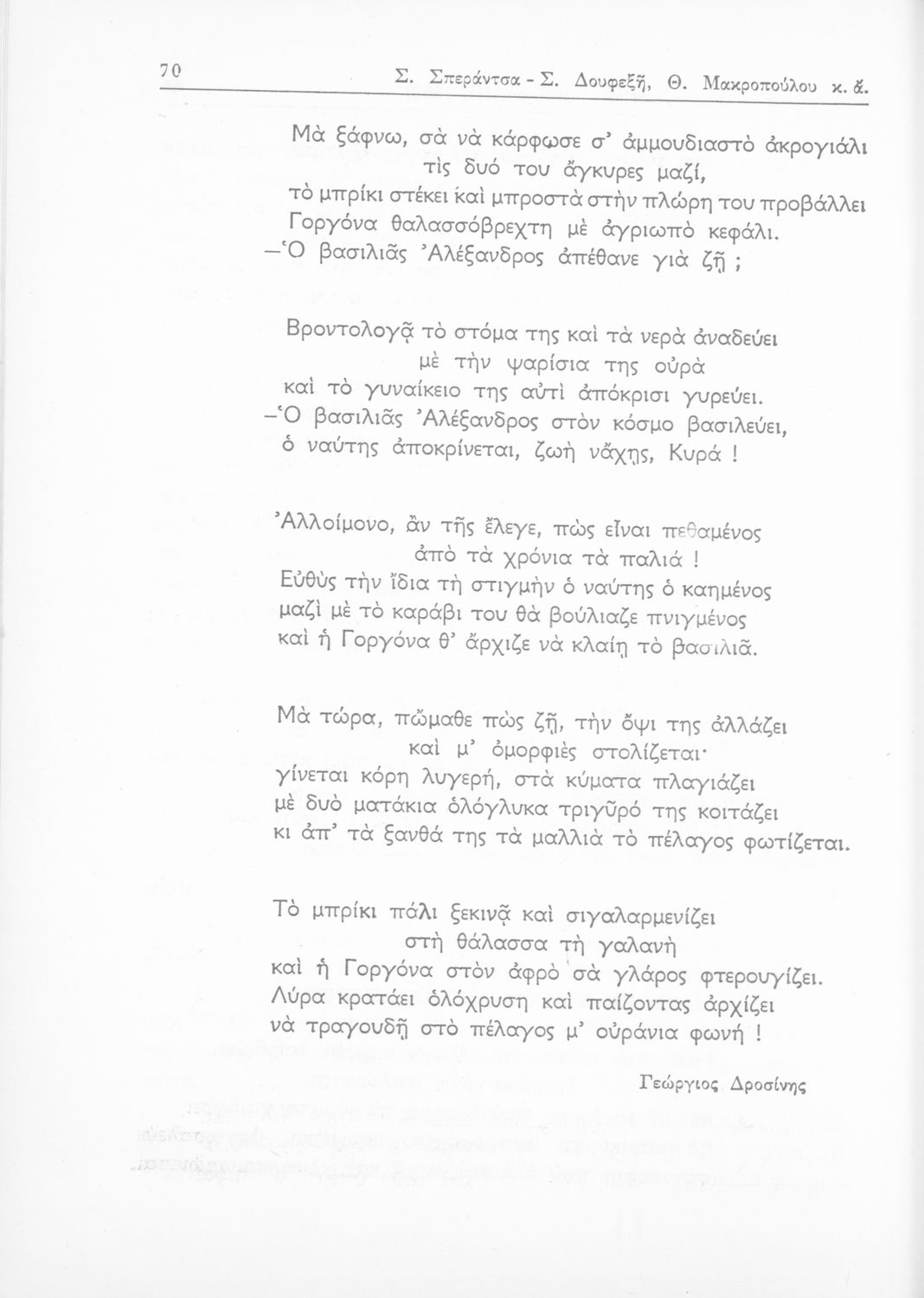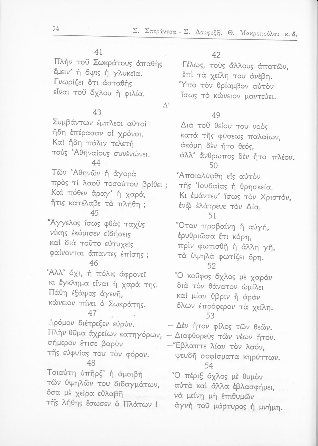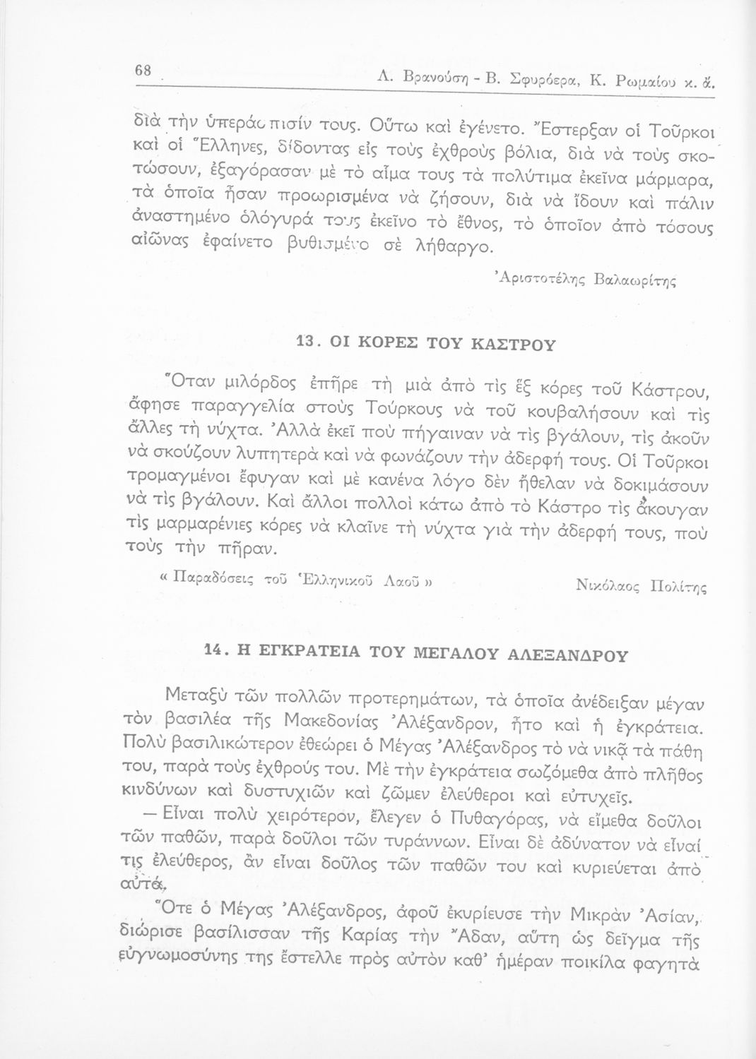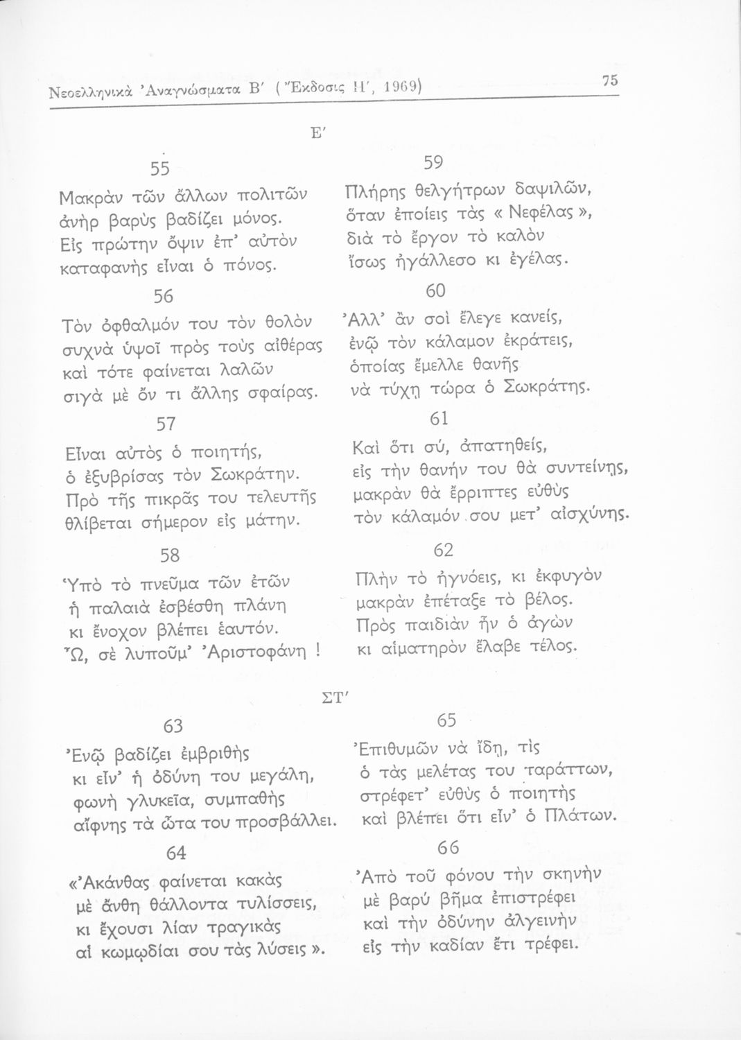 Σχολικό εγχειρίδιο Νέων Ελληνικών Β' Γυμνασίου που περιέχει ποιήματα και πεζά Ελλήνων συγγραφέων εμπνευσμένα από τη θρησκευτική, εθνική, οικογενειακή και κοινωνική ζωή και την ελληνική φύση. Περιέχει παράρτημα με βιογραφίες των συγγραφέων και λεξιλόγιο. Φέρει το σύμβολο της δικτατορίας.