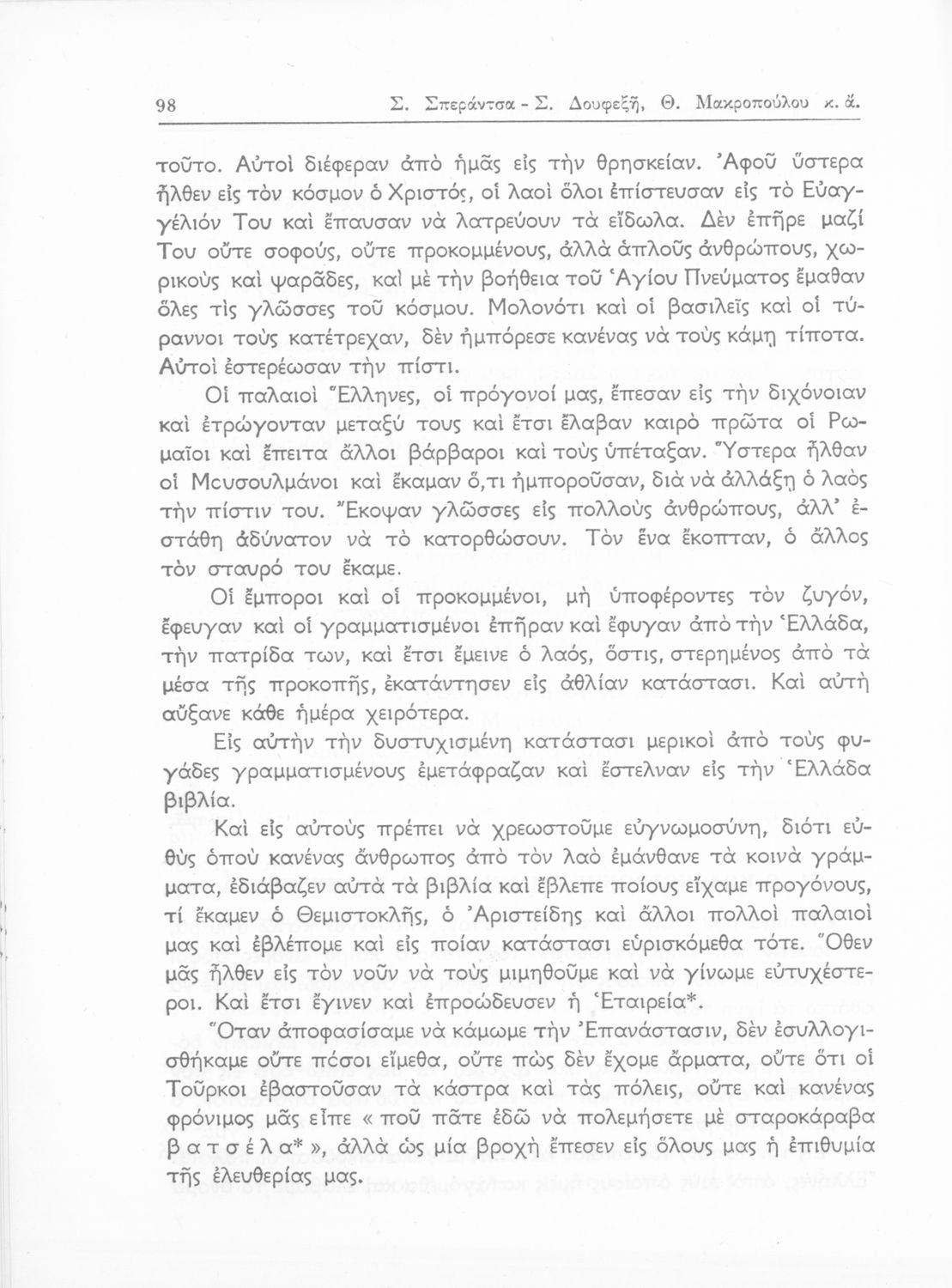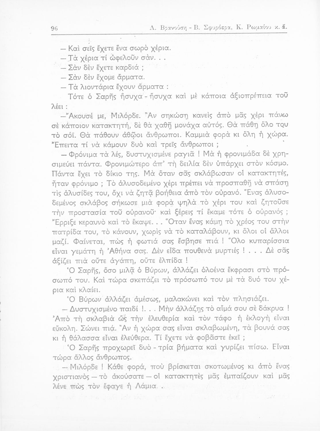 LDR 01424 2200217 4500 035 ## _a01-18404 040 ## _aΙνστιτούτο Εκπαιδευτικής Πολιτικής 041 ## _ael 100 ## _aΣ. Σπεράντσας _aΣ. Δουφεξής _aΛ. Βρανούσης _aΒ. Σφυρόερας _aΘ. Μακρόπουλος _aΚ. Ρωμαίος 110 ## _a18404 245 0# _aΝεοελληνικά αναγνώσματα Β΄ Γυμνασίου 250 ## _a9η Έκδοση 260 ## _aΑθήνα _bΟργανισμός Εκδόσεως Διδακτικών Βιβλίων _c1969 300 ## _a308 520 ## _aΣχολικό εγχειρίδιο Νέων Ελληνικών Β' Γυμνασίου που περιέχει ποιήματα και πεζά Ελλήνων συγγραφέων εμπνευσμένα από τη θρησκευτική, εθνική, οικογενειακή και κοινωνική ζωή και την ελληνική φύση. Περιέχει παράρτημα με βιογραφίες των συγγραφέων και λεξιλόγιο. Φέρει το σύμβολο της δικτατορίας. 521 ## _aΒ' Γυμνασίου 522 ## _aΕλλάδα 546 ## _aΚαθαρεύουσα 563 ## _aΜαλακό Εξώφυλλο 583 ## _a1823/22-5-1969 _c1969 650 #4 _aΚαρκαβίτσας _aΠαλαμάς _aΠαπαδιαμάντης _aΣολωμός