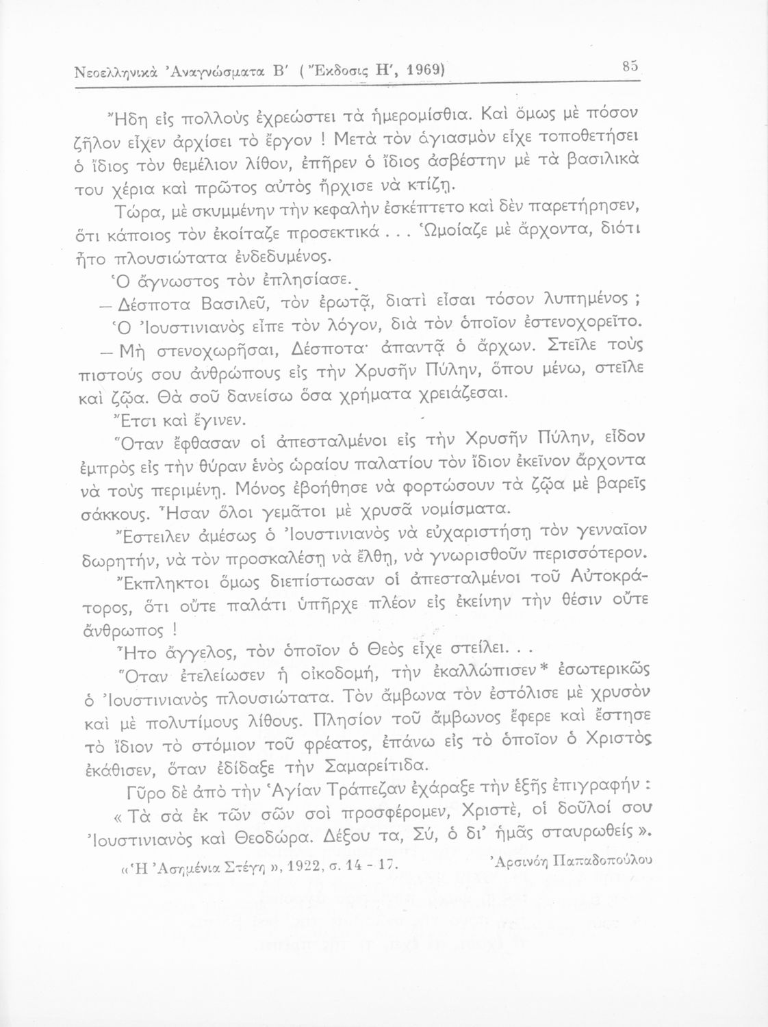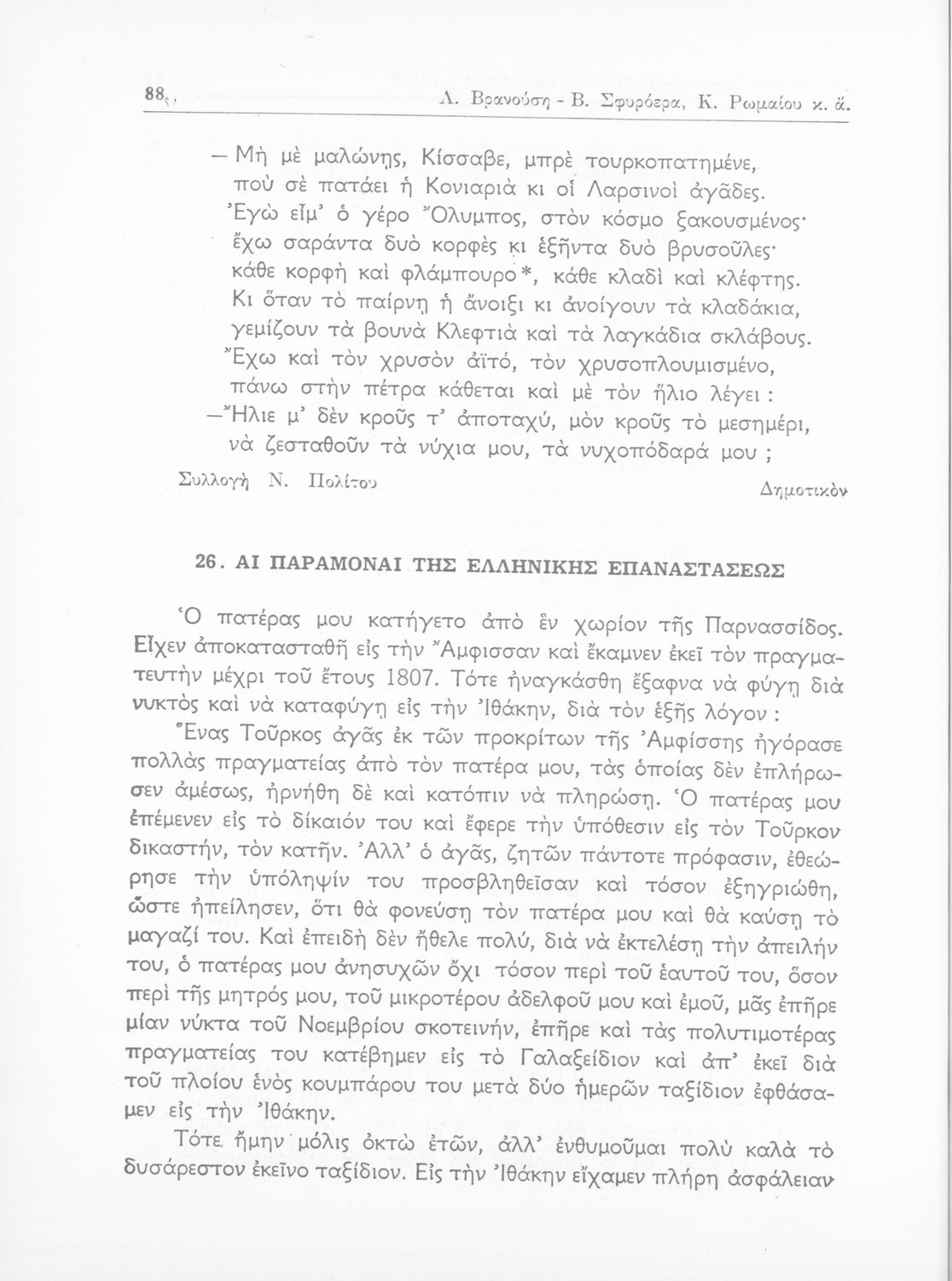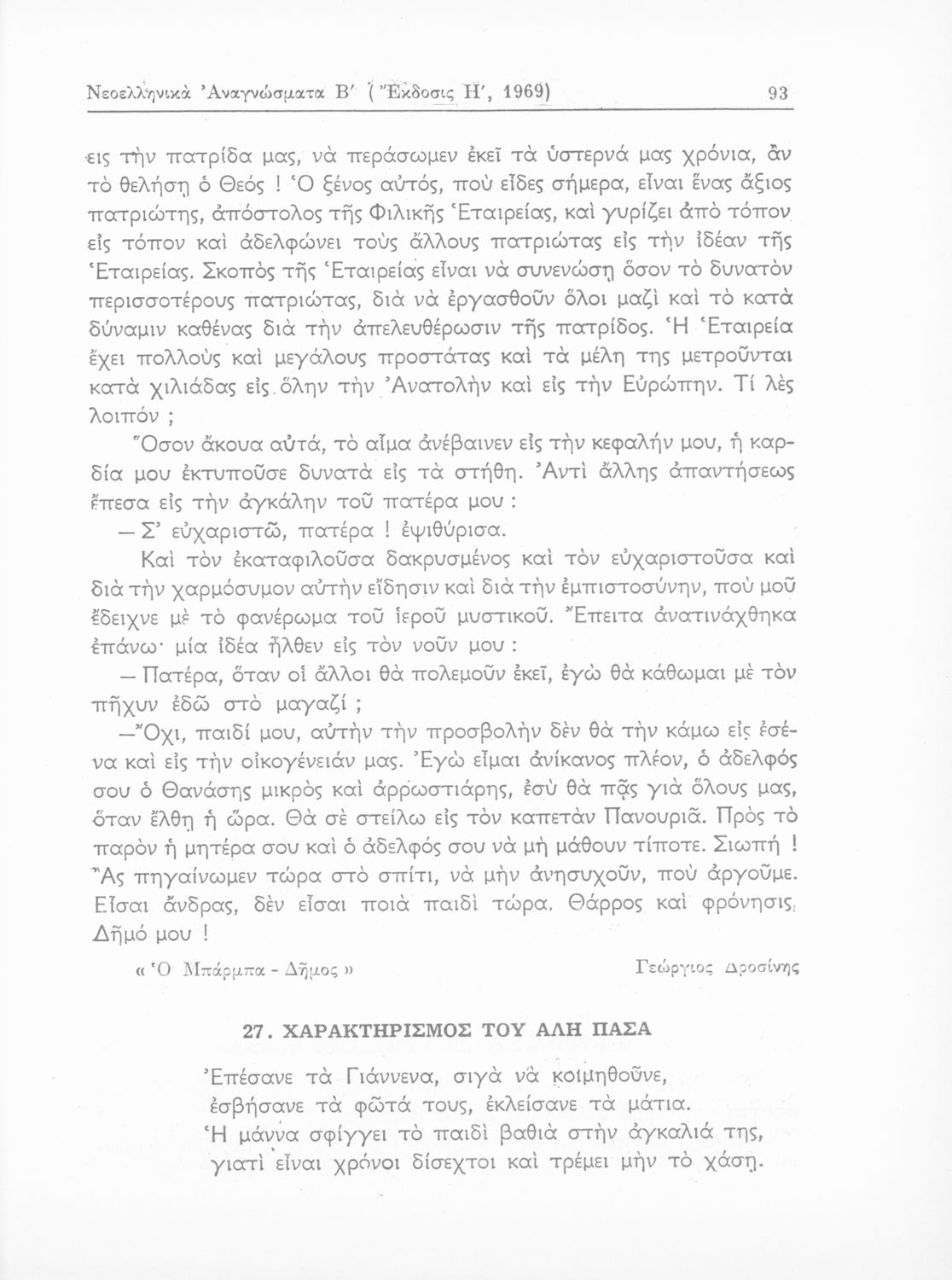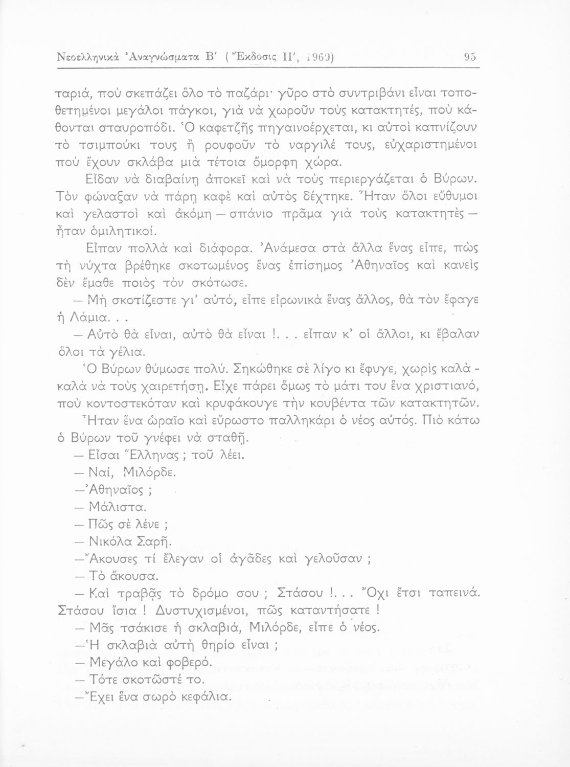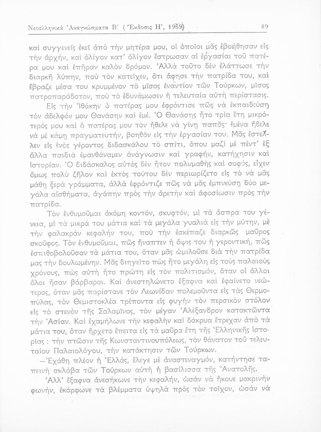 Σχολικό εγχειρίδιο Νέων Ελληνικών Β' Γυμνασίου που περιέχει ποιήματα και πεζά Ελλήνων συγγραφέων εμπνευσμένα από τη θρησκευτική, εθνική, οικογενειακή και κοινωνική ζωή και την ελληνική φύση. Περιέχει παράρτημα με βιογραφίες των συγγραφέων και λεξιλόγιο. Φέρει το σύμβολο της δικτατορίας.