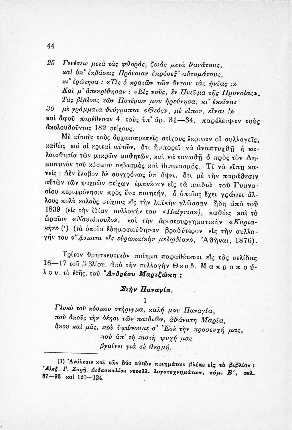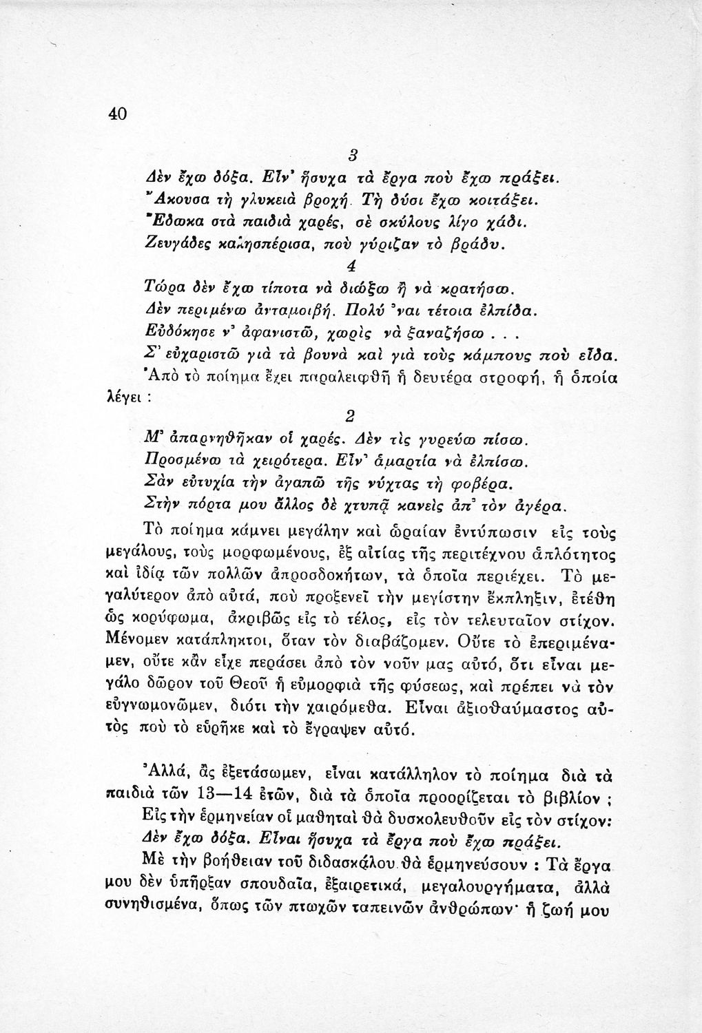 Μελέτη του Αλέξανδρου Σαρή για τα Νεοελληνικά αναγνώσματα της Β΄ Γυμνασίου. Αναφέρεται στα κείμενα του Παπαδιαμάντη, Παλαμά και Νιρβάνα.