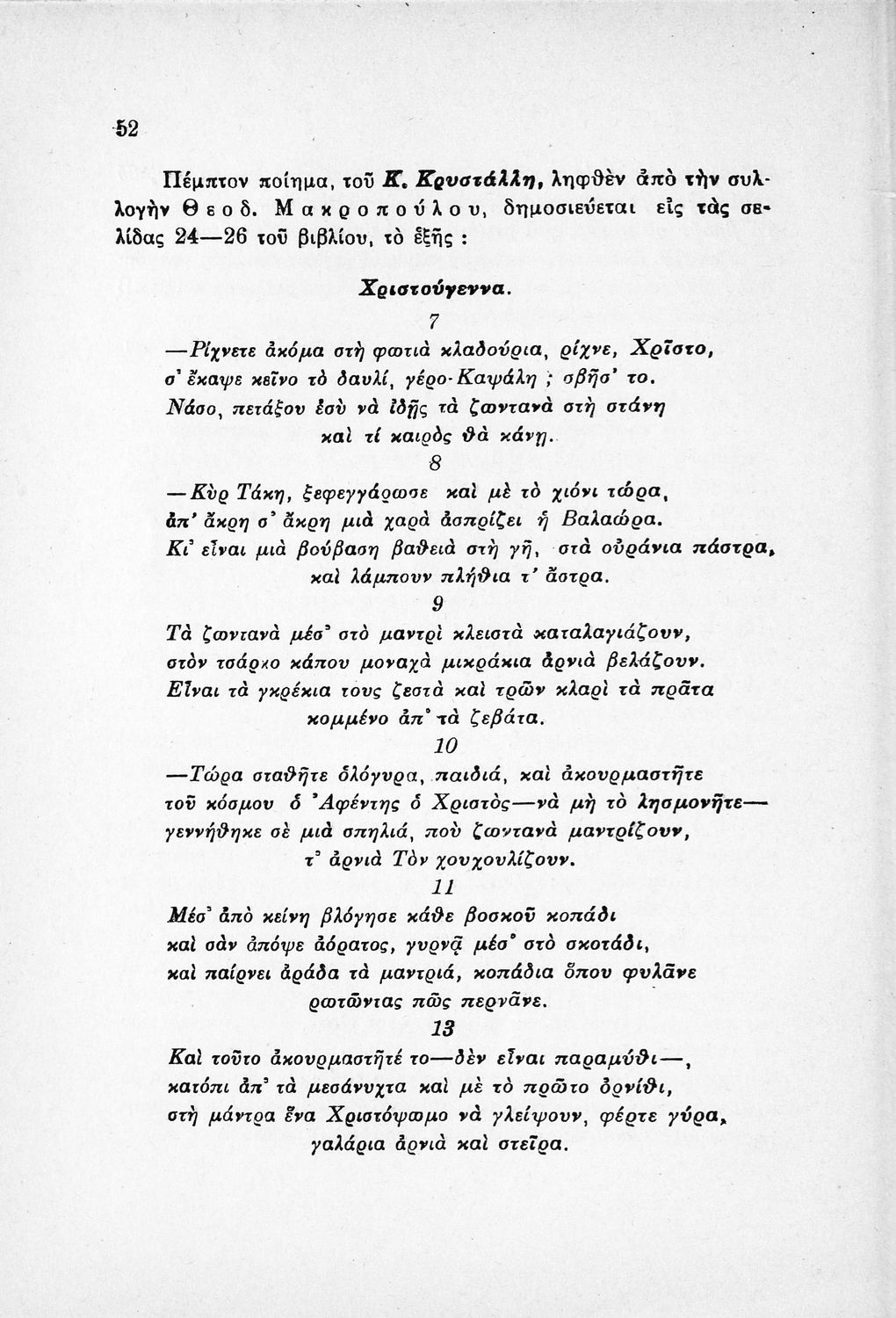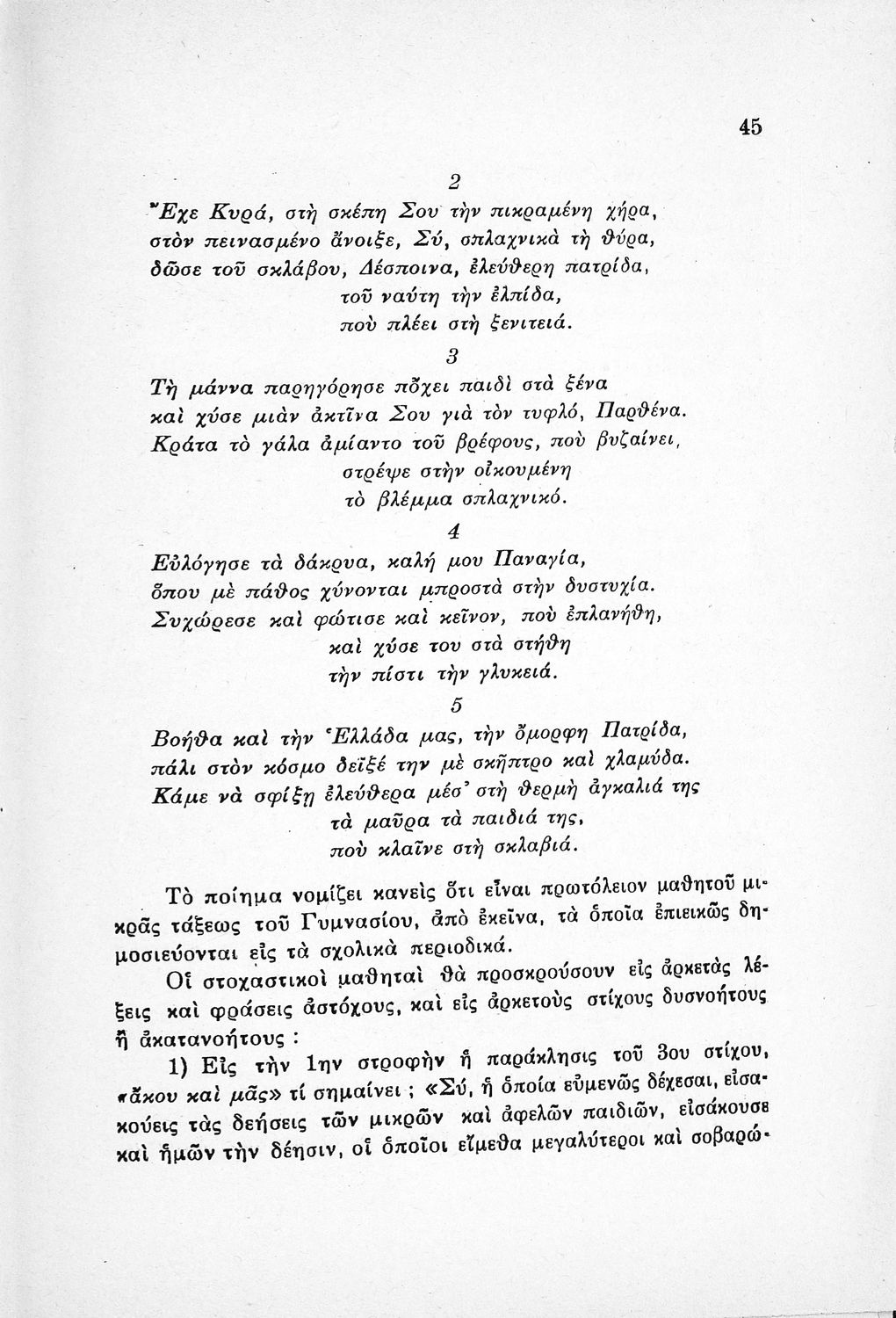Σχολικό εγχειρίδιο Νέων Ελληνικών Β' Ελληνικού Σχολείου που περιλαμβάνει ποιήματα και πεζά Ελλήνων συγγραφέων και δημοτικά τραγούδια εμπνευσμένα από την σύγχρονη ελληνική ιστορία, την ελληνική φύση και τη ζωή ...