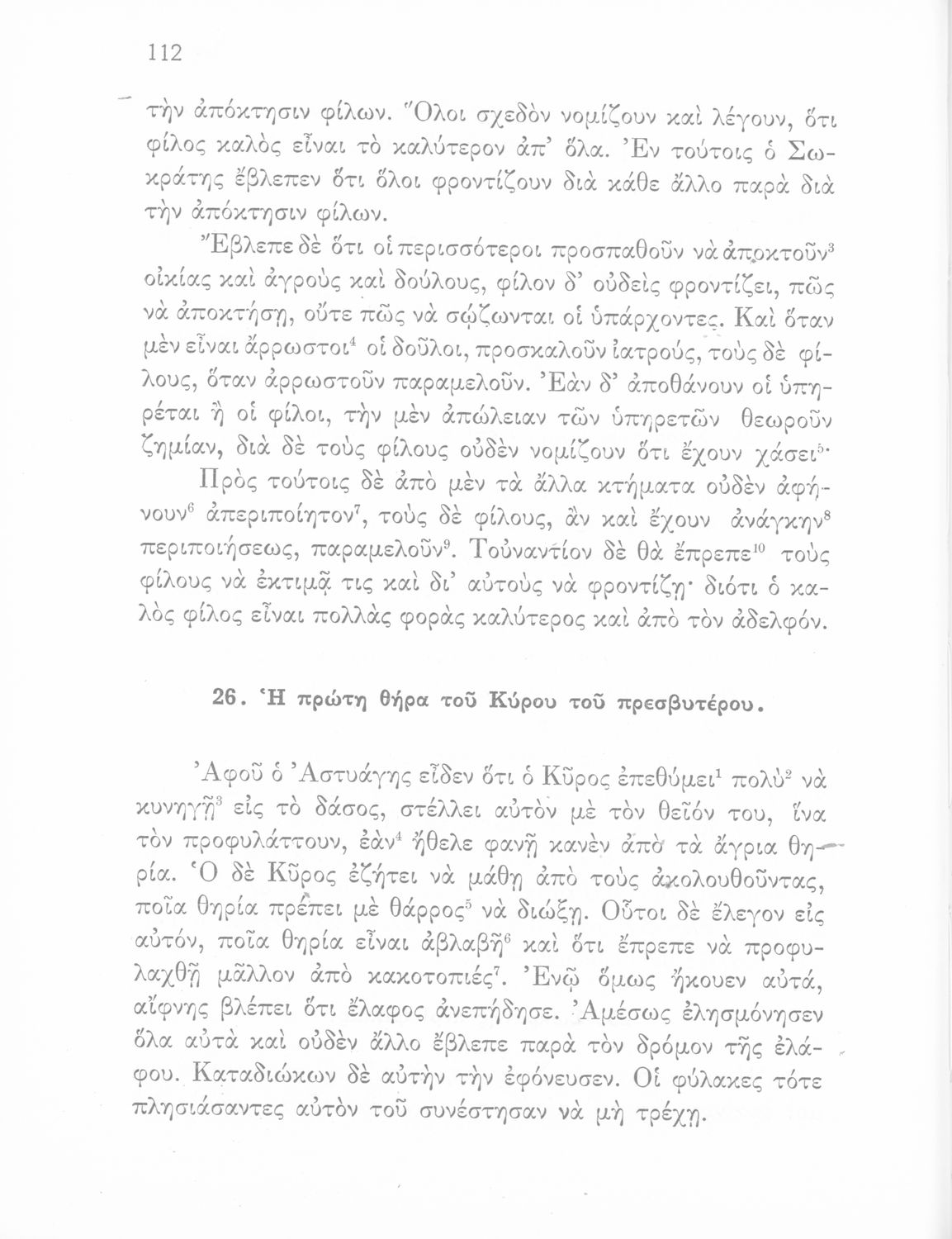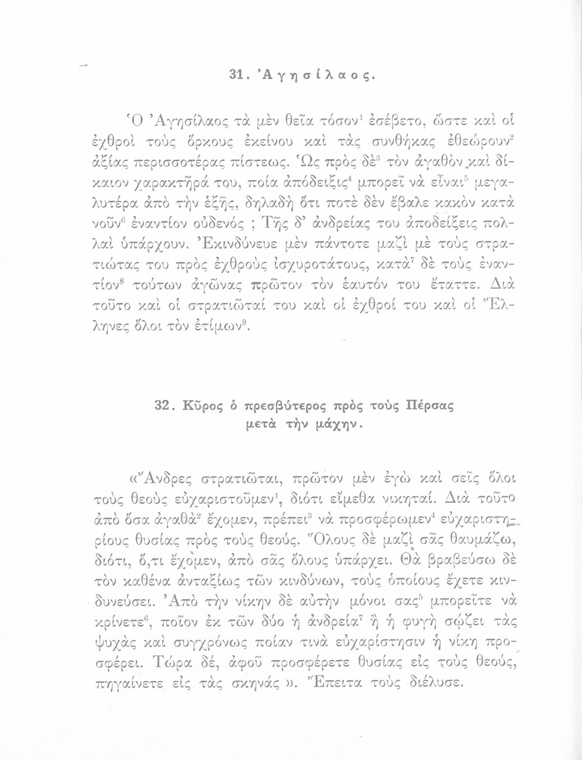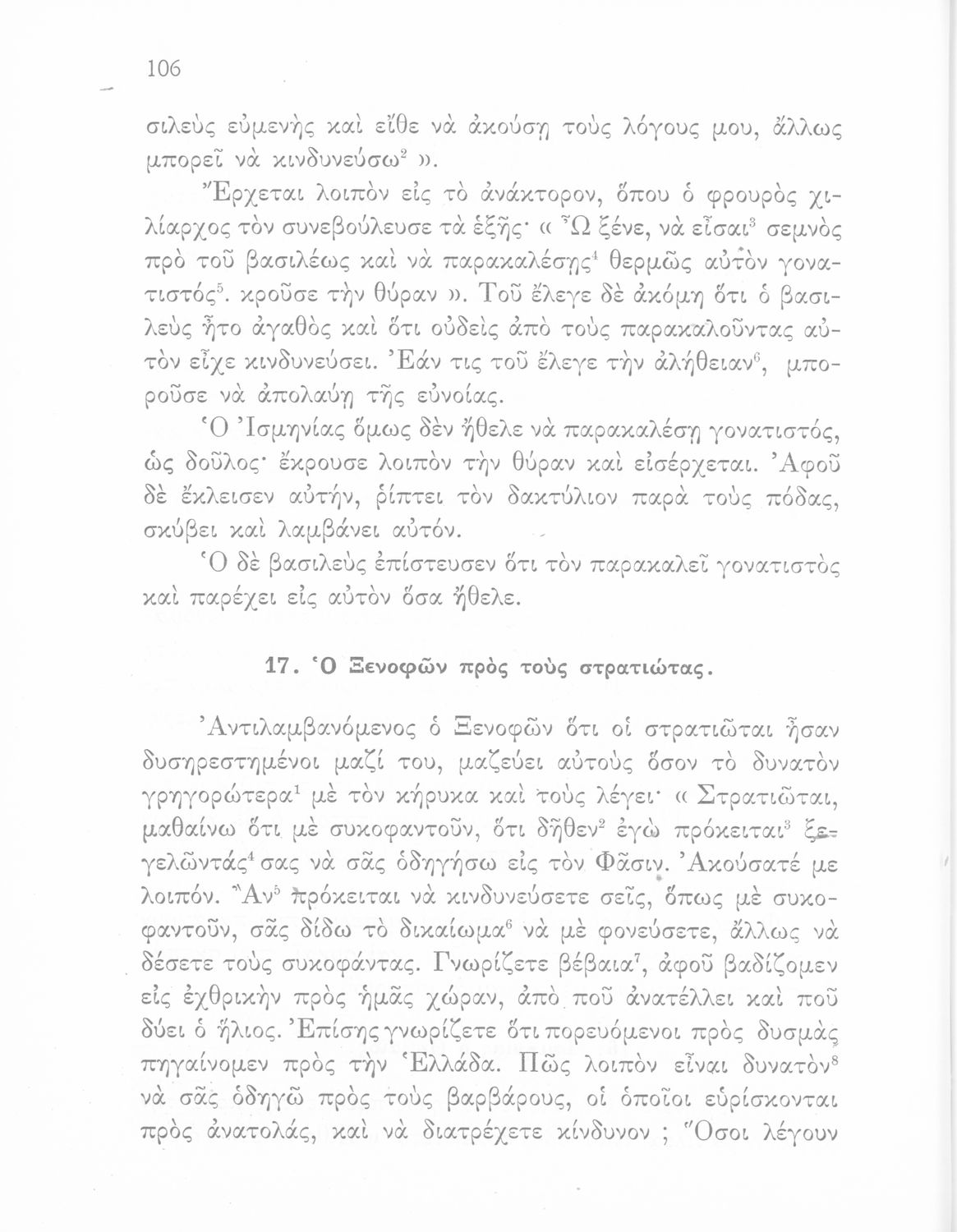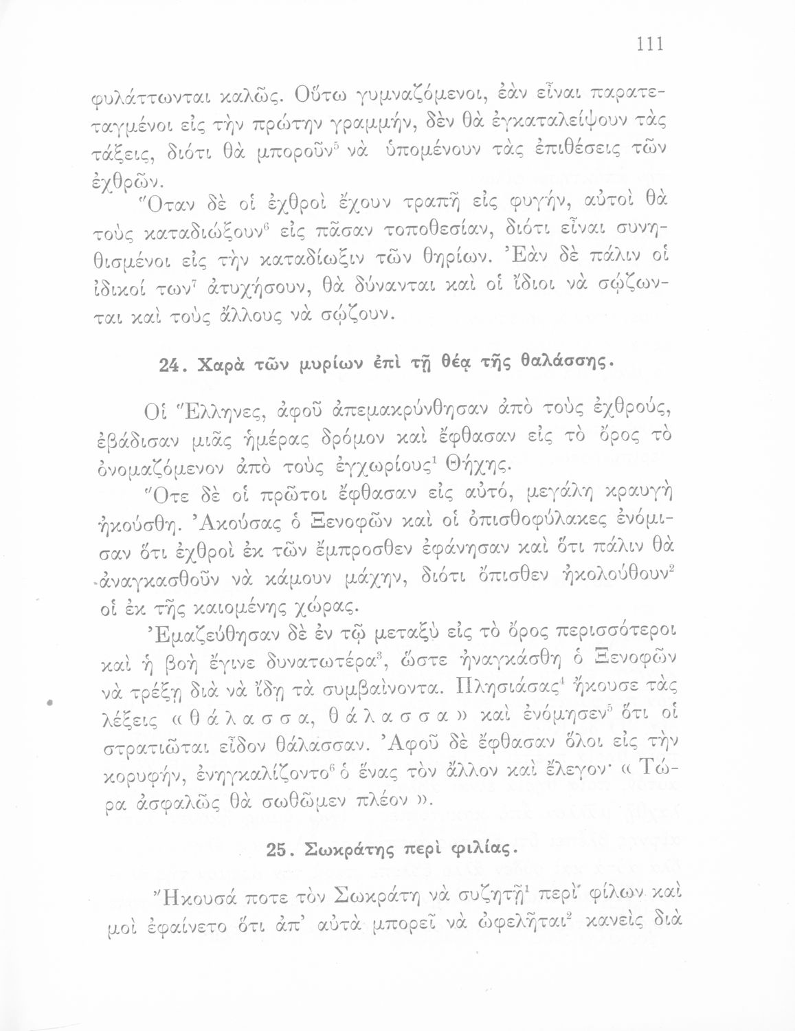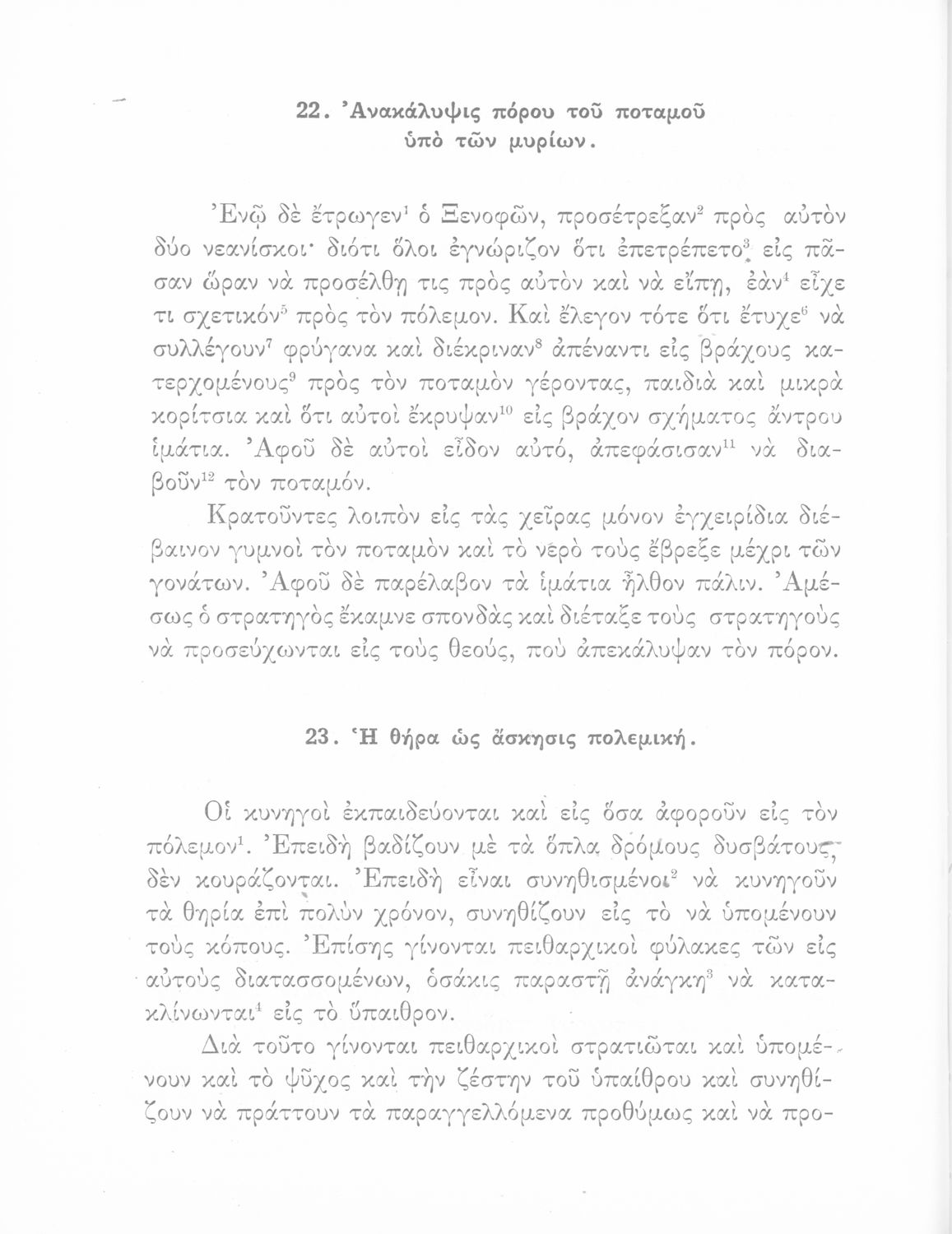 Σχολικό Εγχειρίδιο Αρχαίων Ελληνικών που περιλαμβάνει κείμενα προσαρμοσμένα στη διδασκαλία των γραμματικών και συντακτικών φαινομένων, και ερμηνευτικές και λεξιλογικές σημειώσεις.