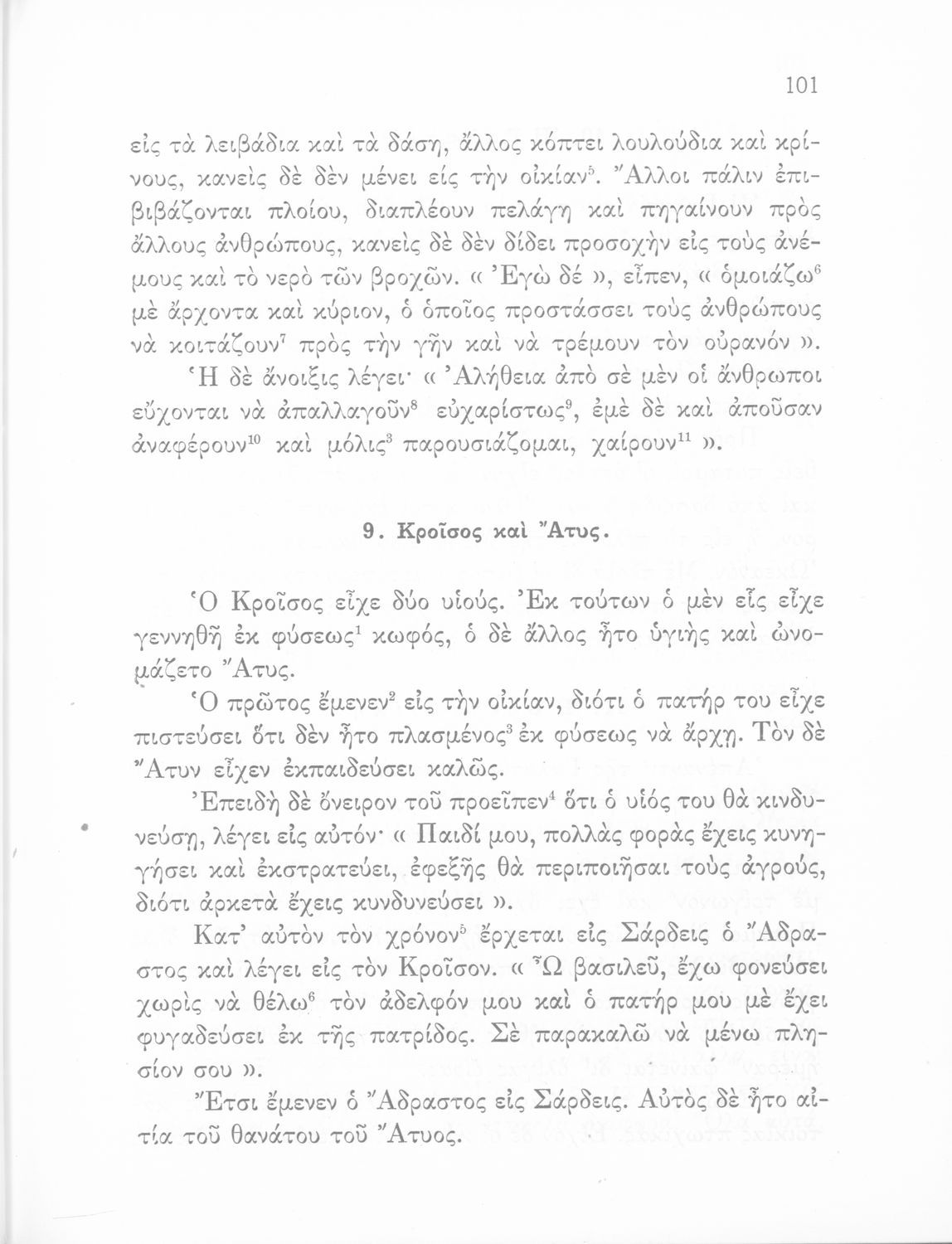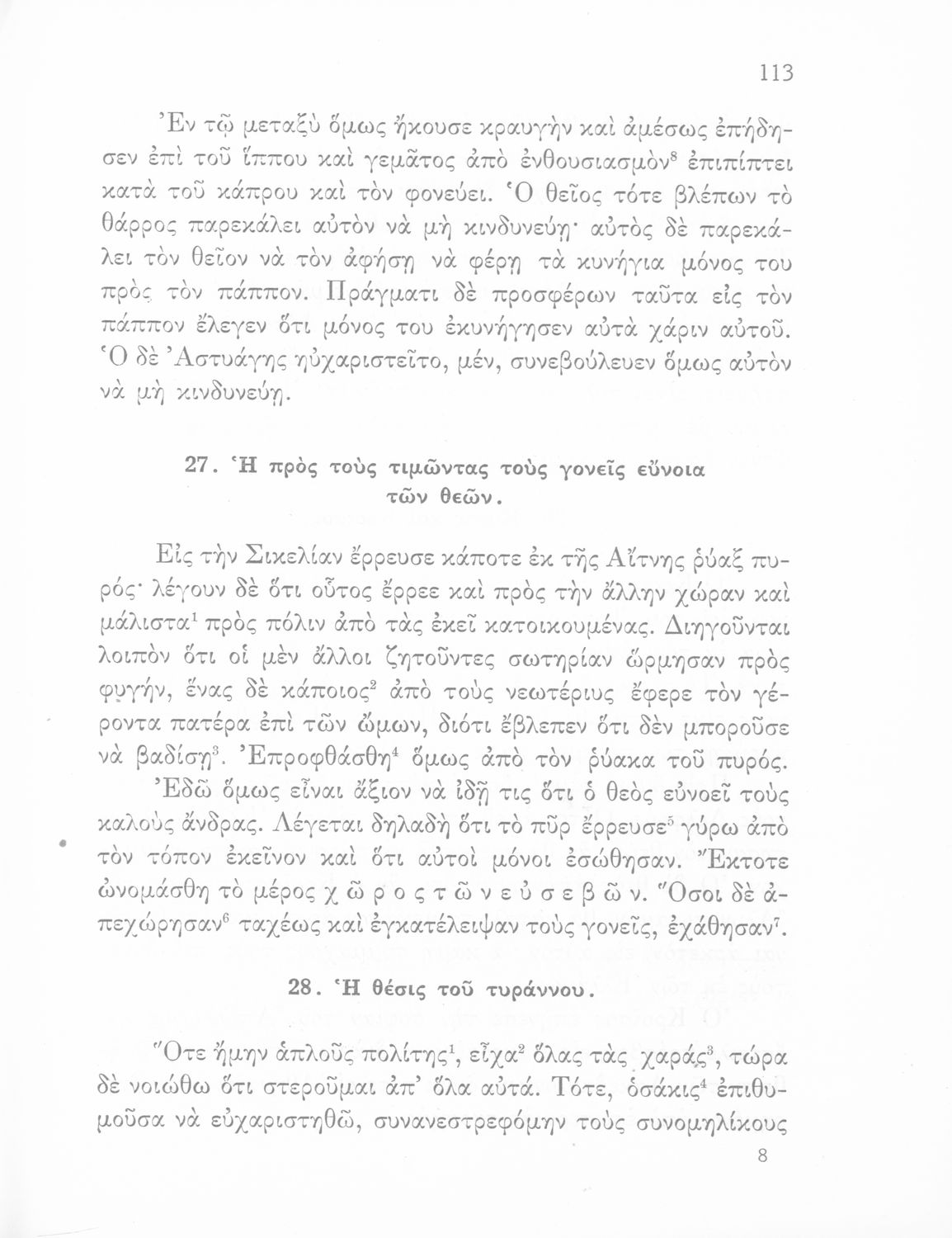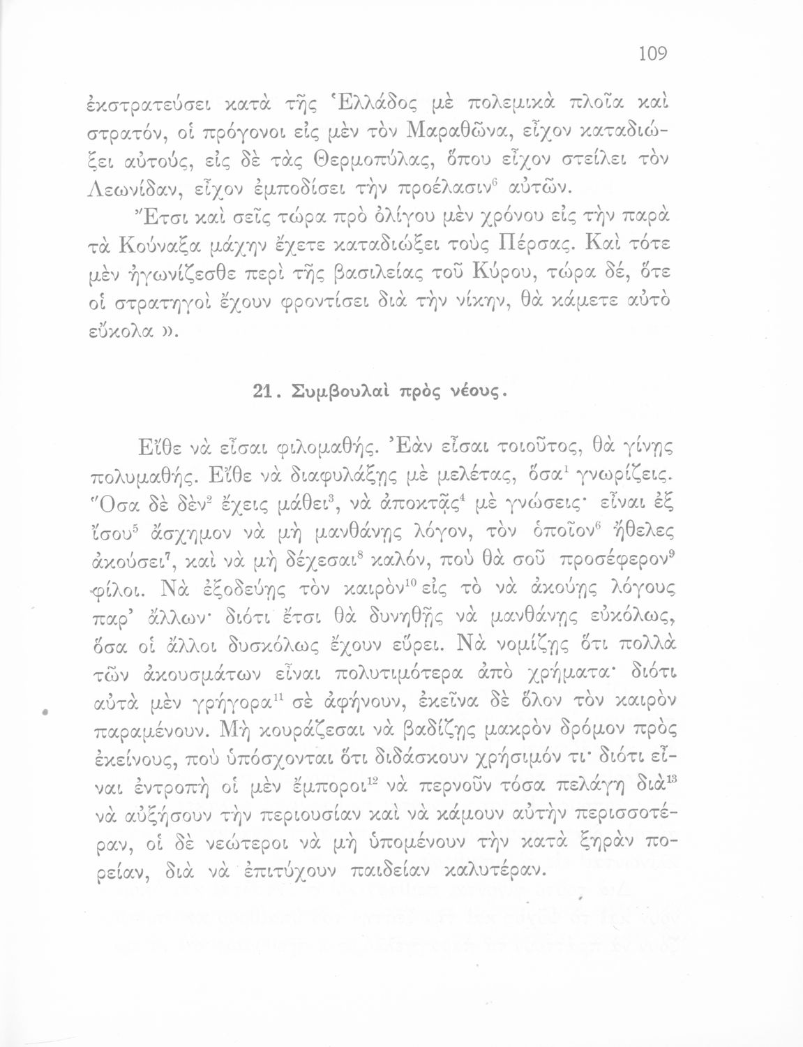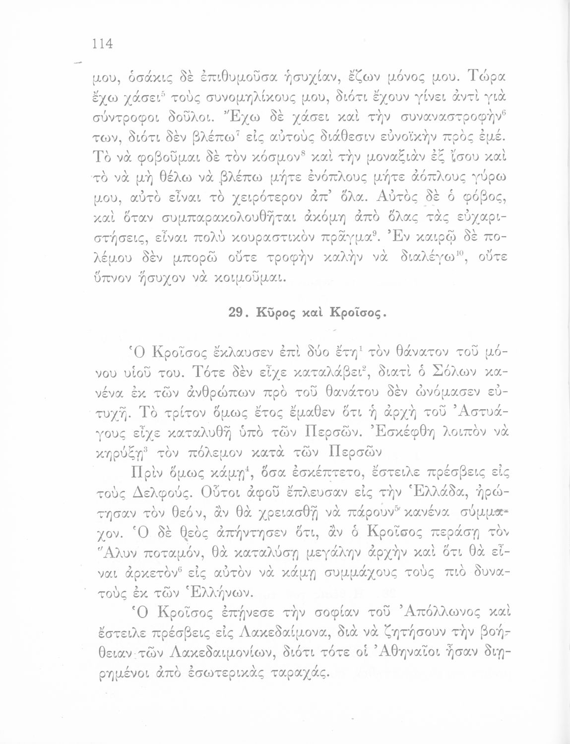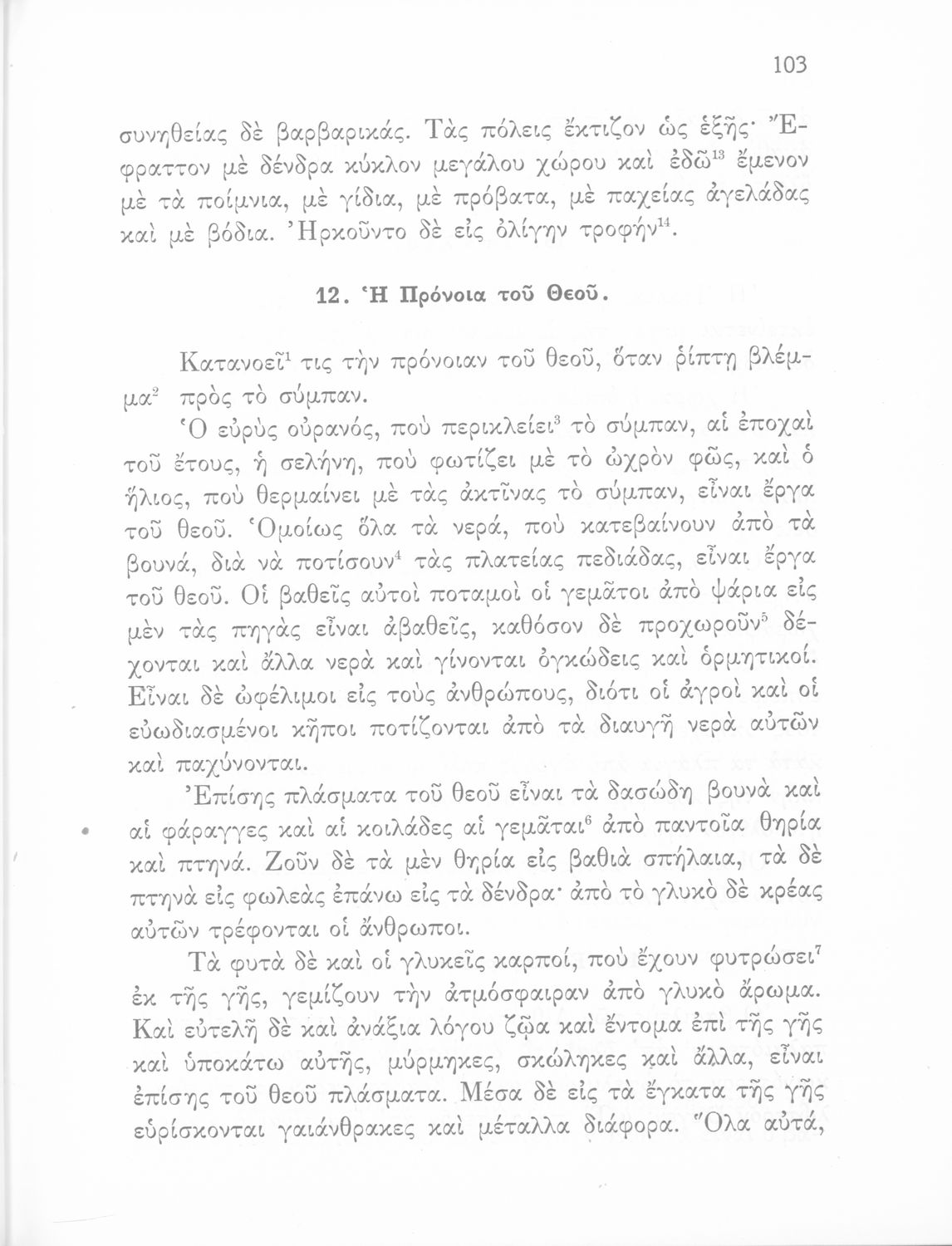 Σχολικό Εγχειρίδιο Αρχαίων Ελληνικών που περιλαμβάνει κείμενα προσαρμοσμένα στη διδασκαλία των γραμματικών και συντακτικών φαινομένων, και ερμηνευτικές και λεξιλογικές σημειώσεις.