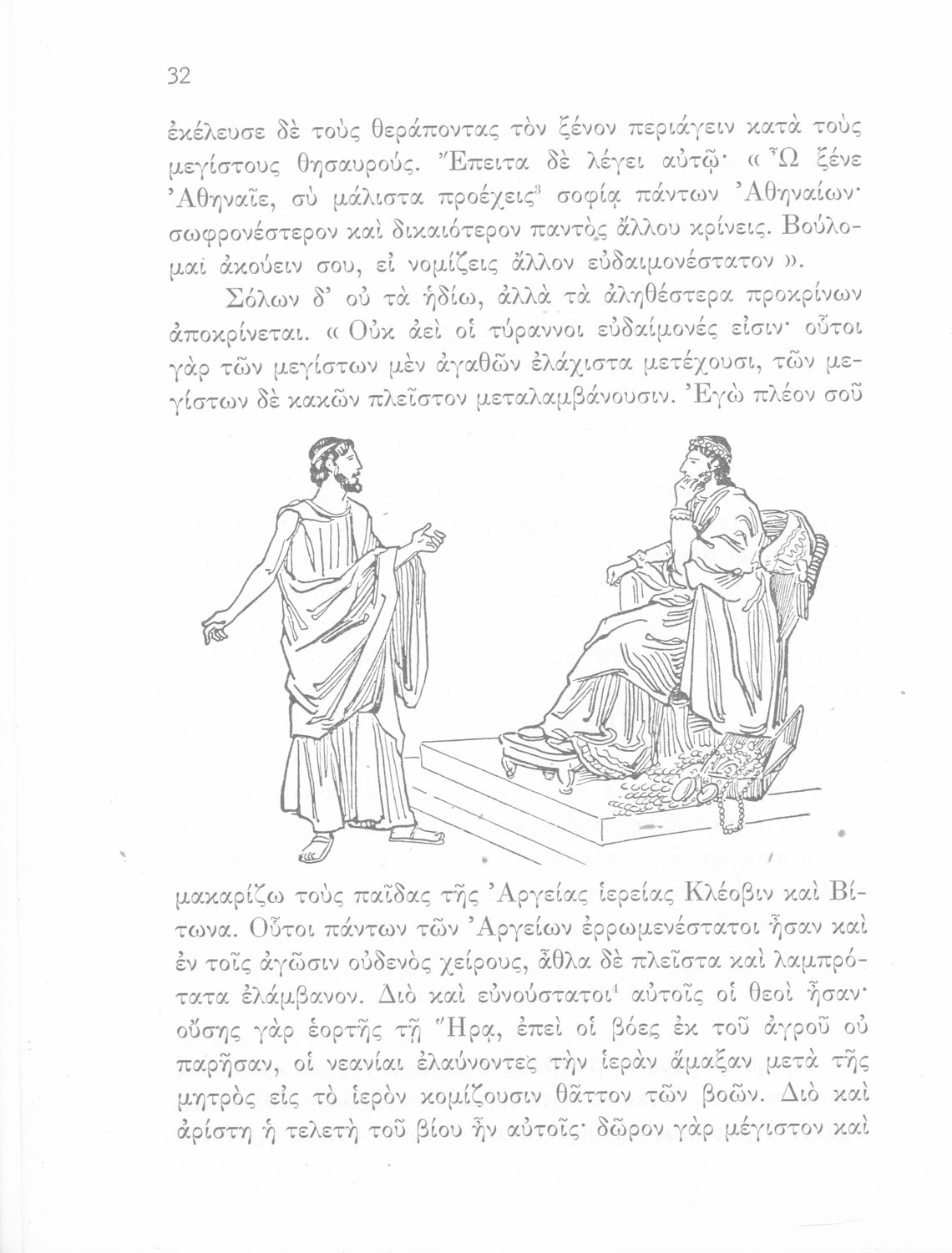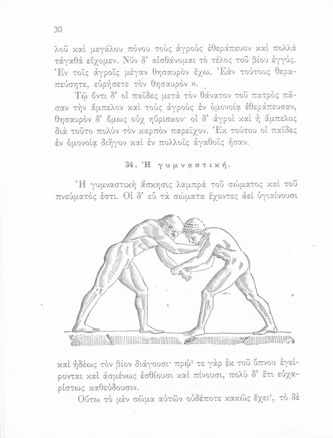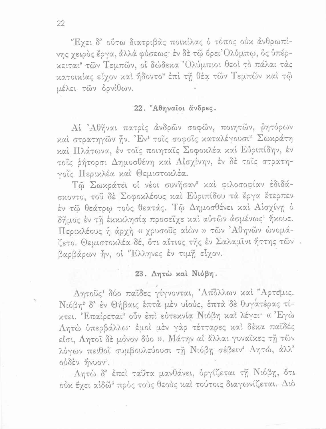 Σχολικό εγχειρίδιο Αρχαίων Ελληνικών Γυμνασίου που περιέχει κείμενα βασισμένα στην αρχαία ελληνική ιστορία και μυθολογία και γραμματικές, συντακτικές και ετυμολογικές παρατηρήσεις.