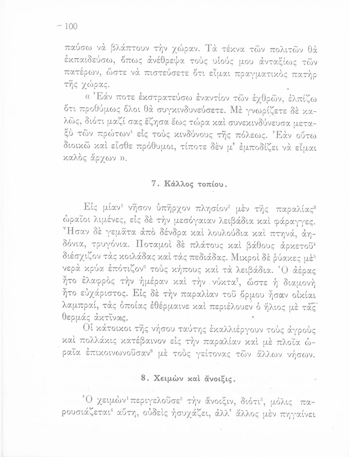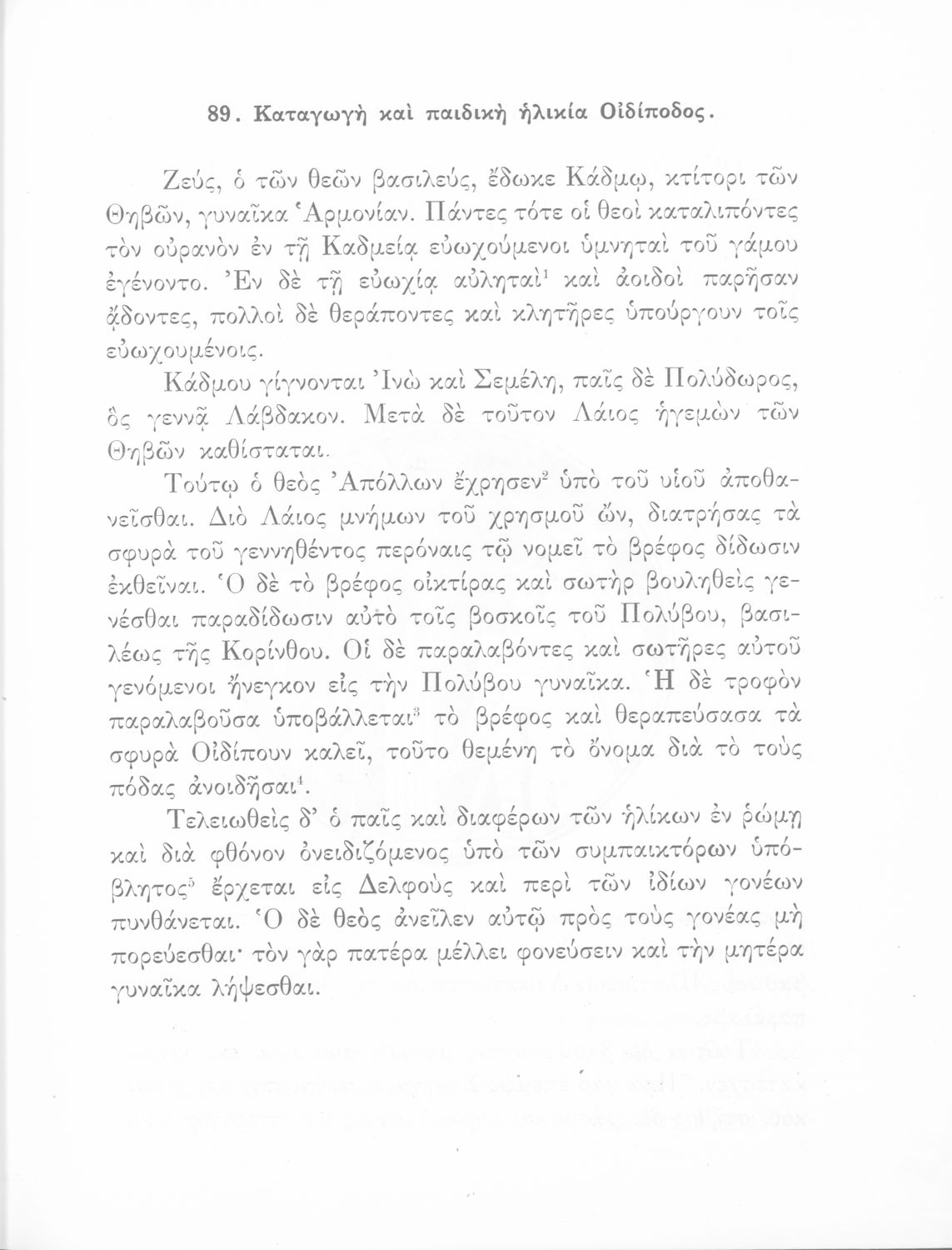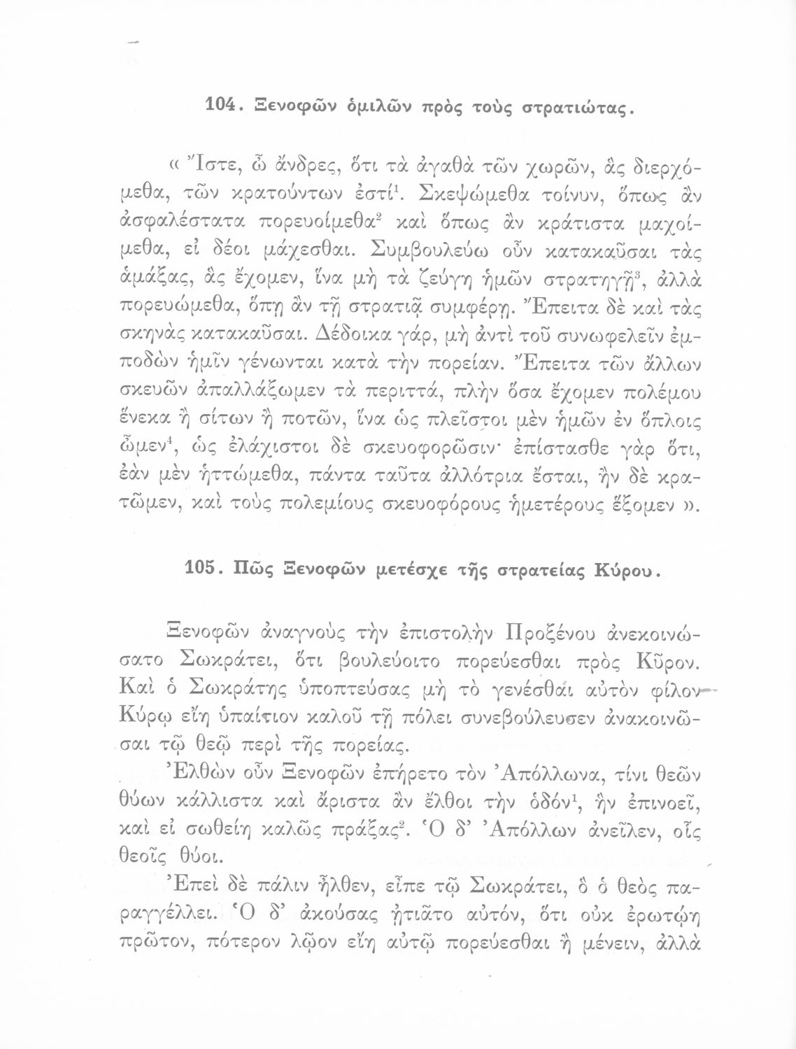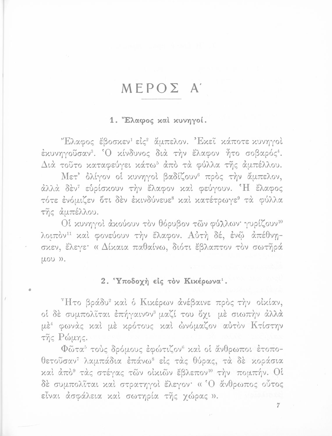 Σχολικό Εγχειρίδιο Αρχαίων Ελληνικών που περιλαμβάνει κείμενα προσαρμοσμένα στη διδασκαλία των γραμματικών και συντακτικών φαινομένων, και ερμηνευτικές και λεξιλογικές σημειώσεις.