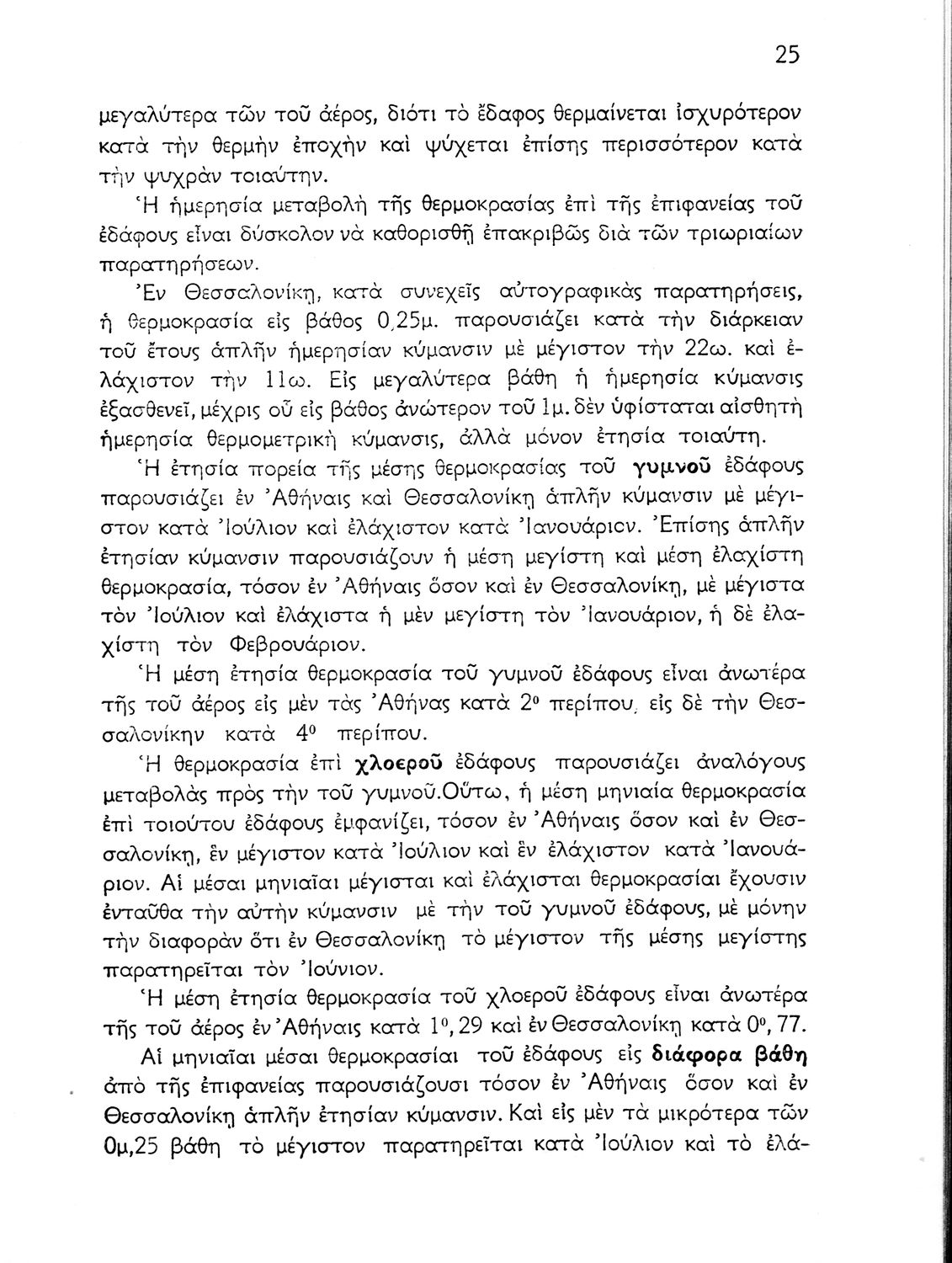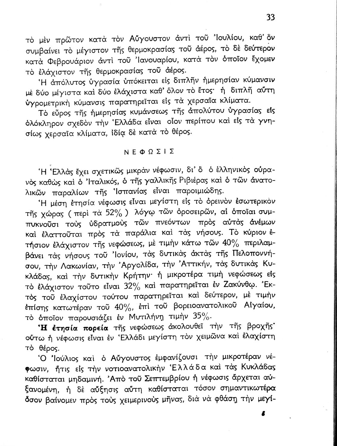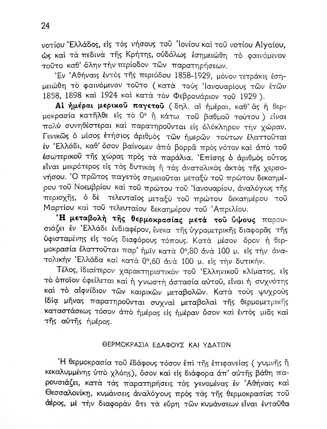 Σχολικό εγχειρίδιο Γεωγραφίας που πραγματεύεται το κλίμα της Ελλάδας ανά γεωγραφική περιοχή και περιέχει κλιματολογικούς χάρτες. Ο συγγραφέας υπήρξε τακτικός καθηγητής του Πανεπιστημίου Αθηνών.