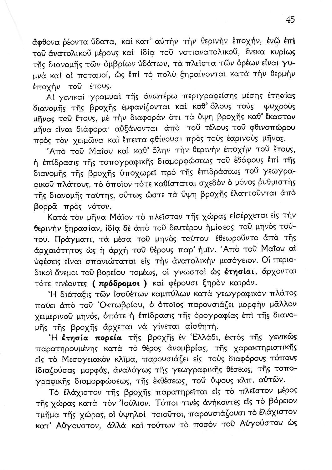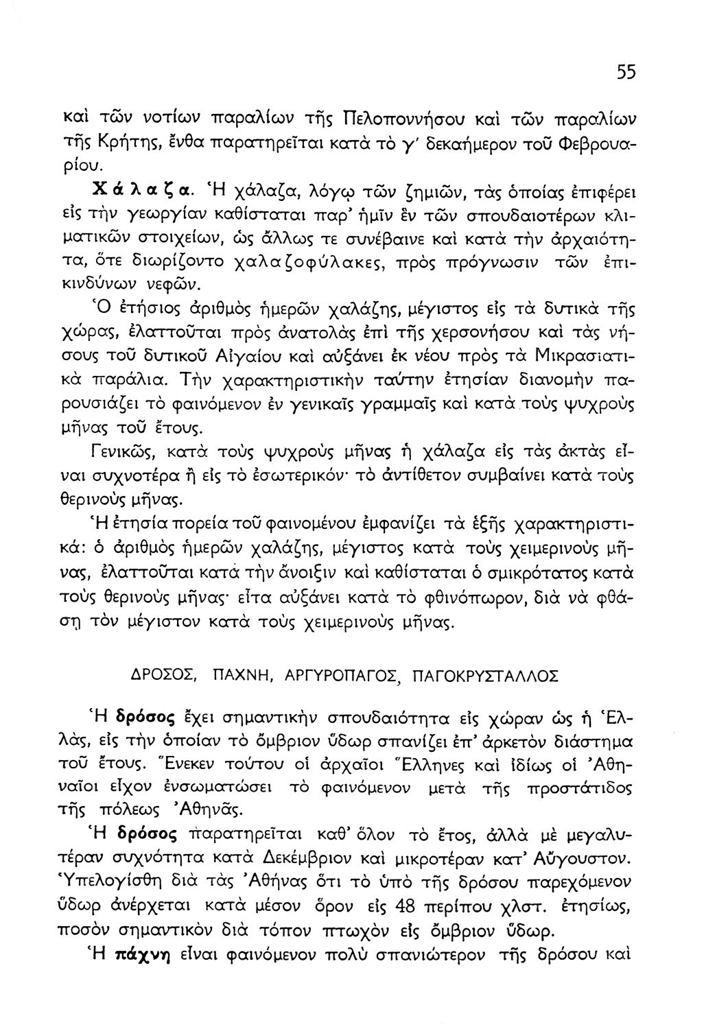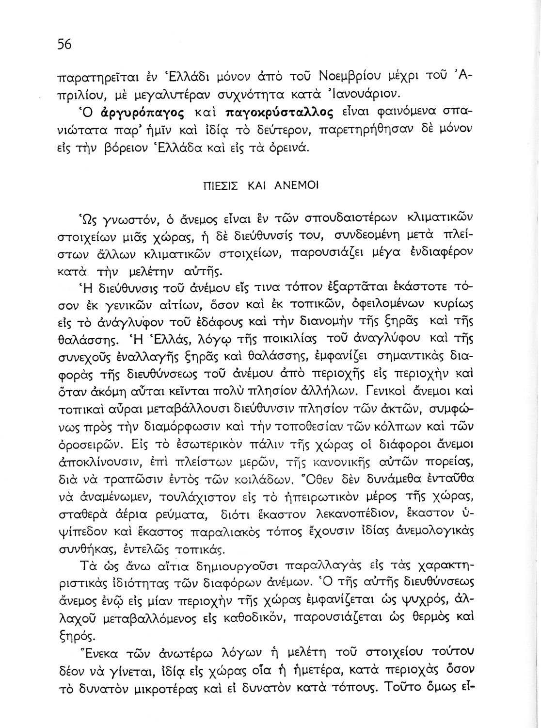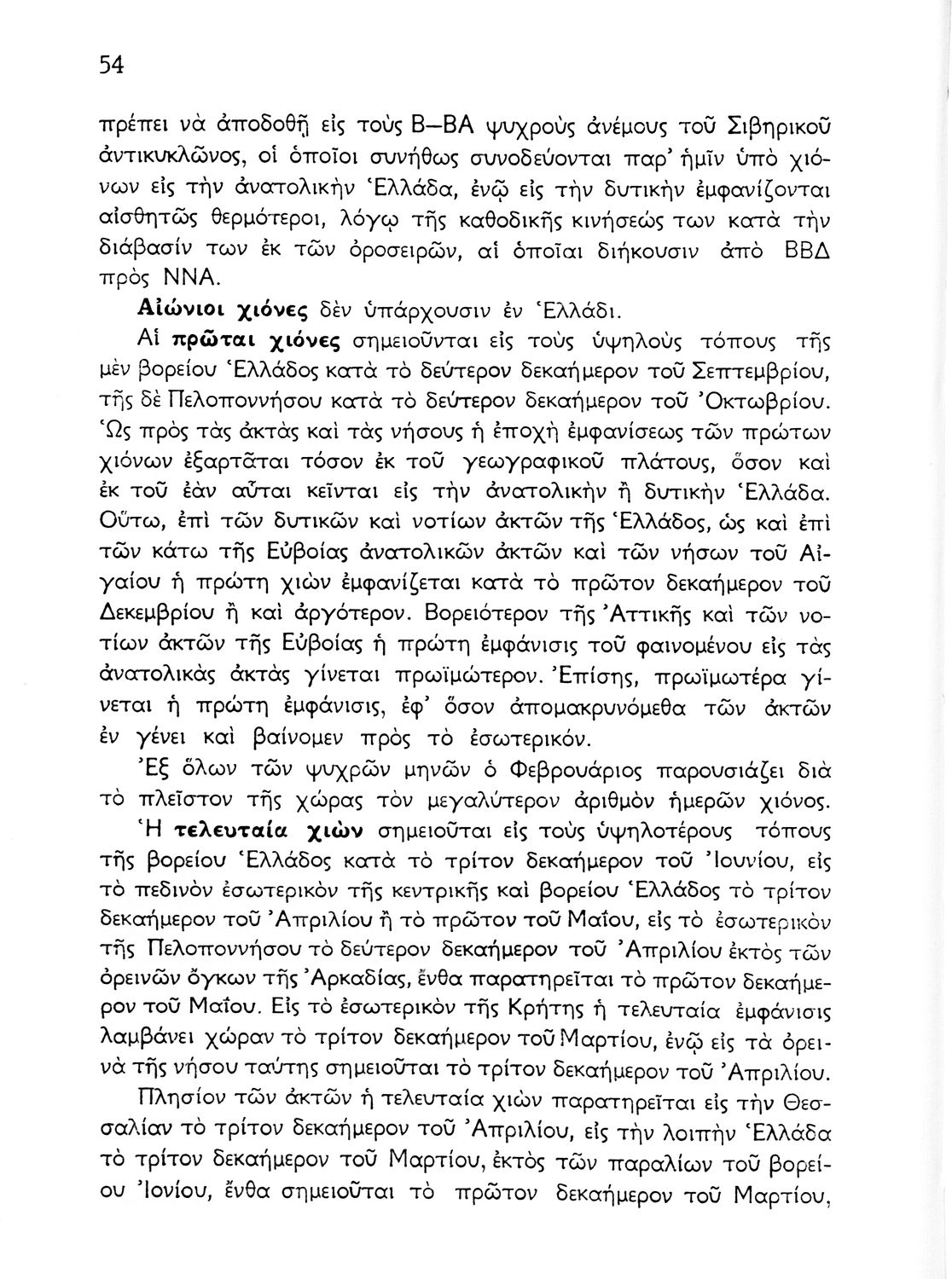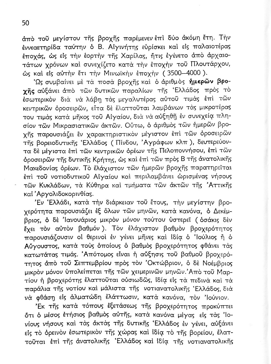 Σχολικό εγχειρίδιο Γεωγραφίας που πραγματεύεται το κλίμα της Ελλάδας ανά γεωγραφική περιοχή και περιέχει κλιματολογικούς χάρτες. Ο συγγραφέας υπήρξε τακτικός καθηγητής του Πανεπιστημίου Αθηνών.