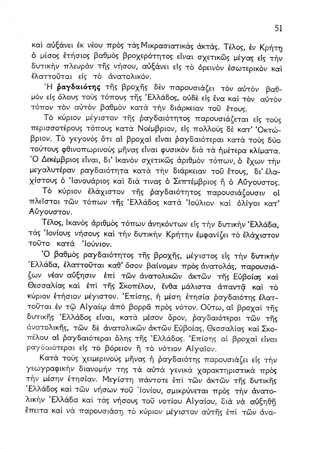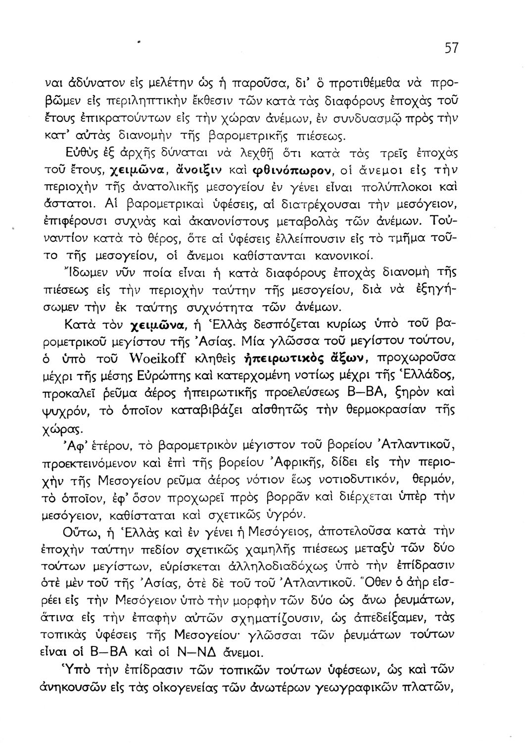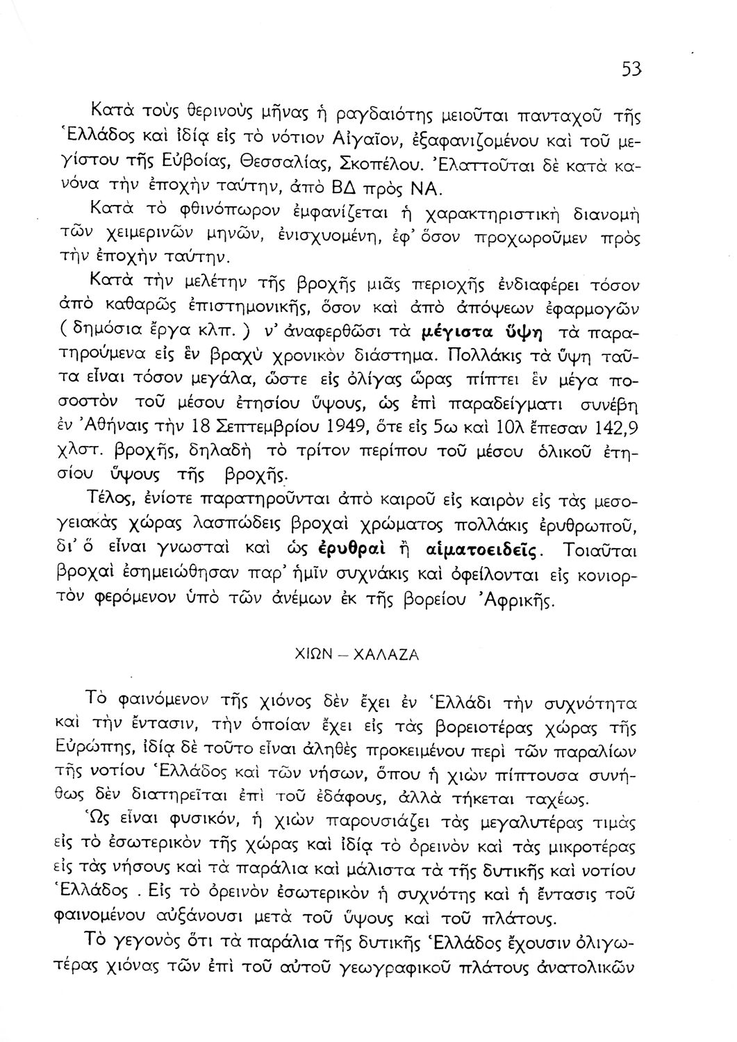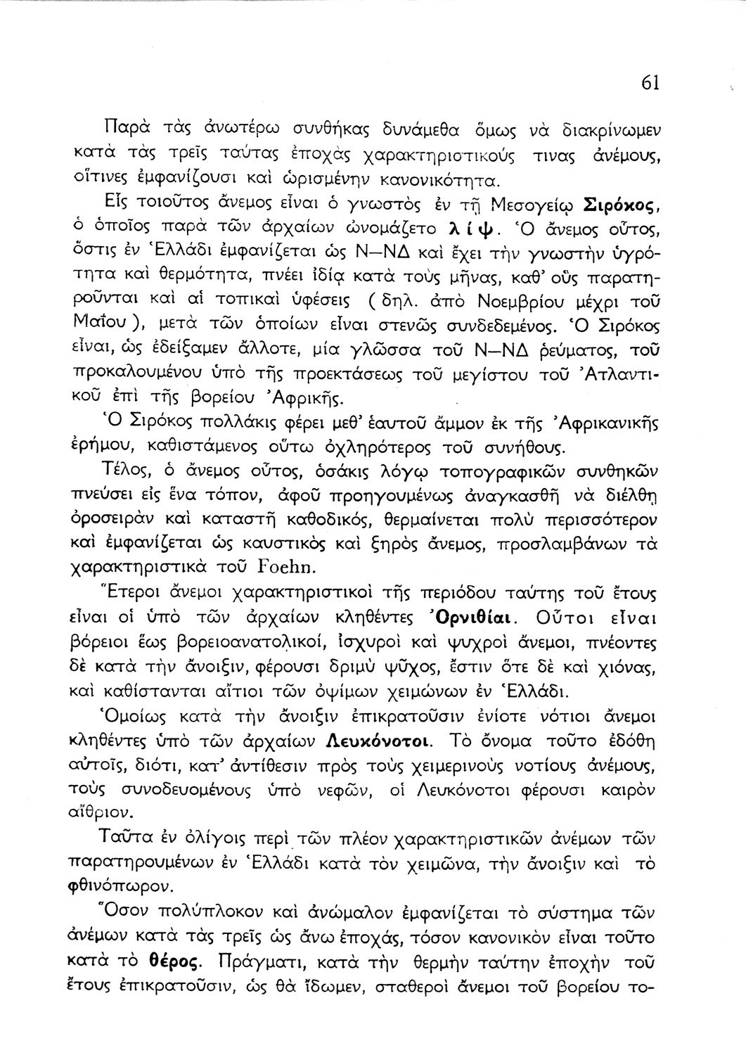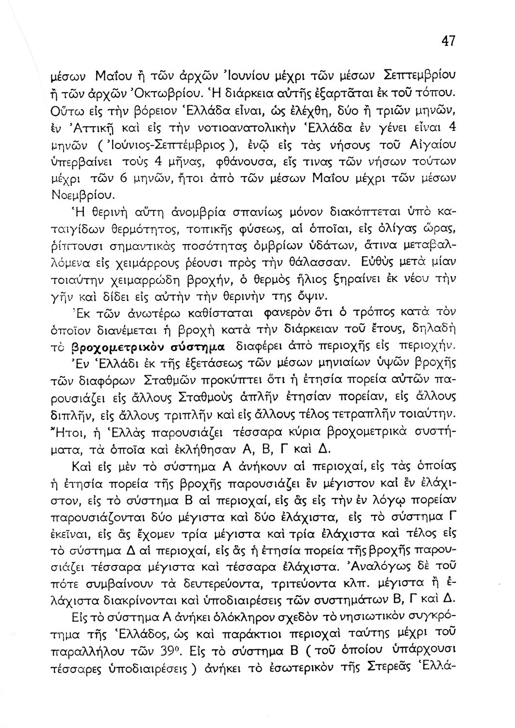 Σχολικό εγχειρίδιο Γεωγραφίας που πραγματεύεται το κλίμα της Ελλάδας ανά γεωγραφική περιοχή και περιέχει κλιματολογικούς χάρτες. Ο συγγραφέας υπήρξε τακτικός καθηγητής του Πανεπιστημίου Αθηνών.