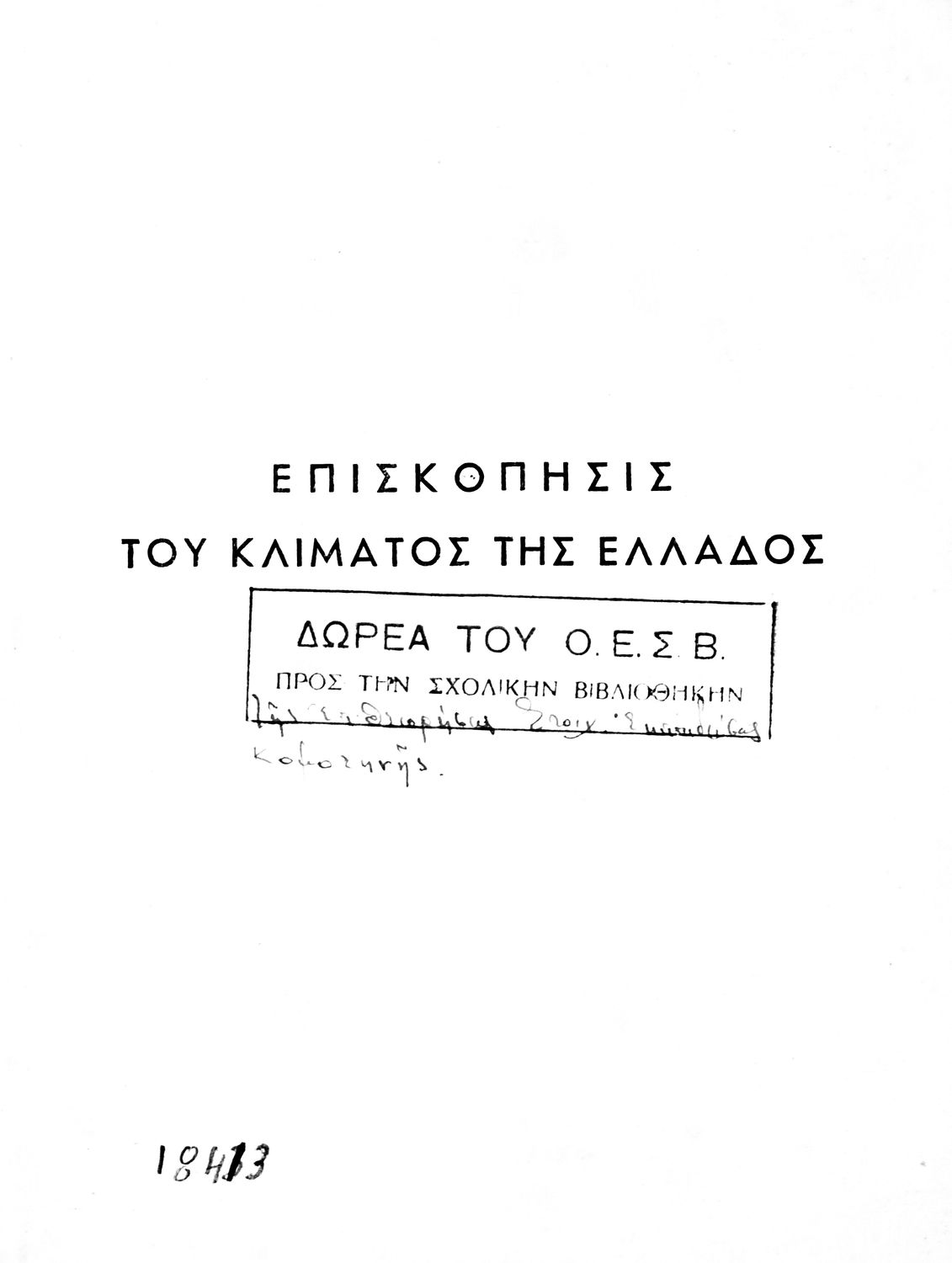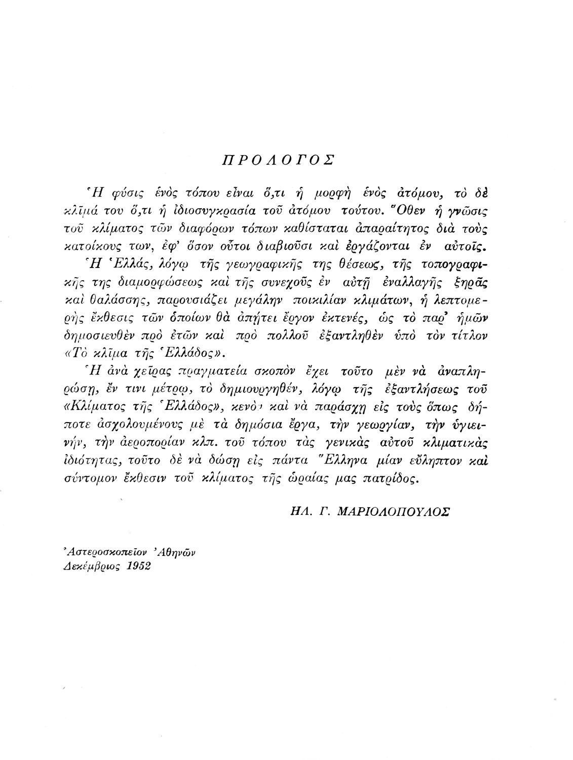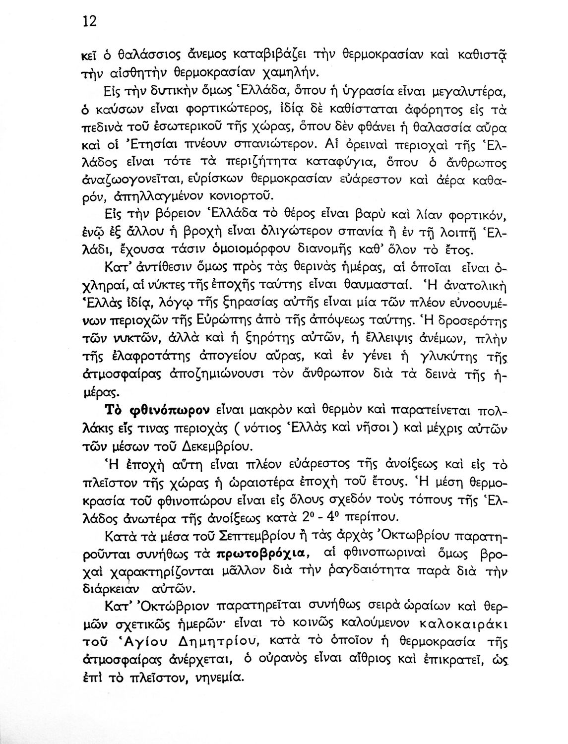 Σχολικό εγχειρίδιο Γεωγραφίας που πραγματεύεται το κλίμα της Ελλάδας ανά γεωγραφική περιοχή και περιέχει κλιματολογικούς χάρτες. Ο συγγραφέας υπήρξε τακτικός καθηγητής του Πανεπιστημίου Αθηνών.