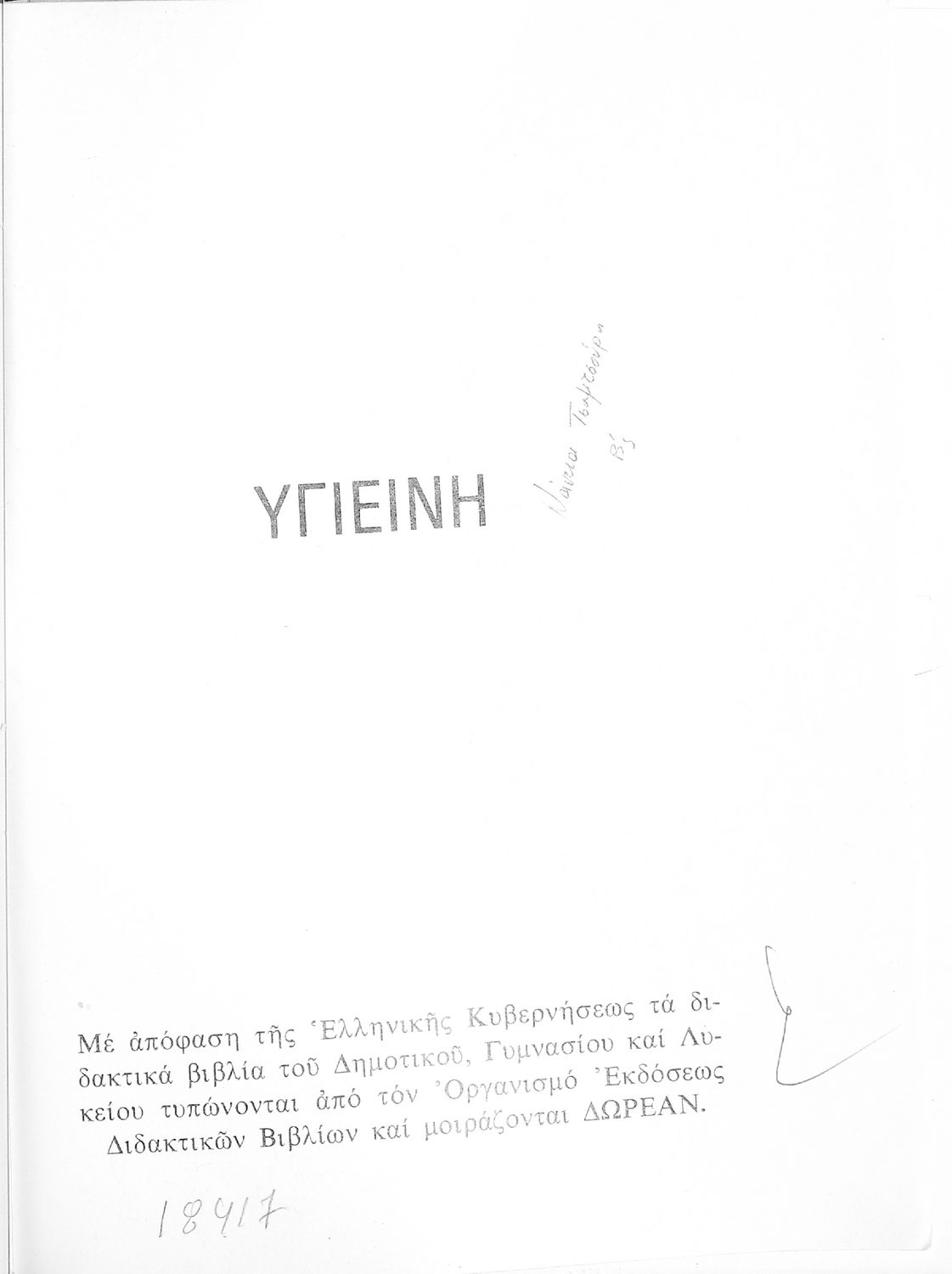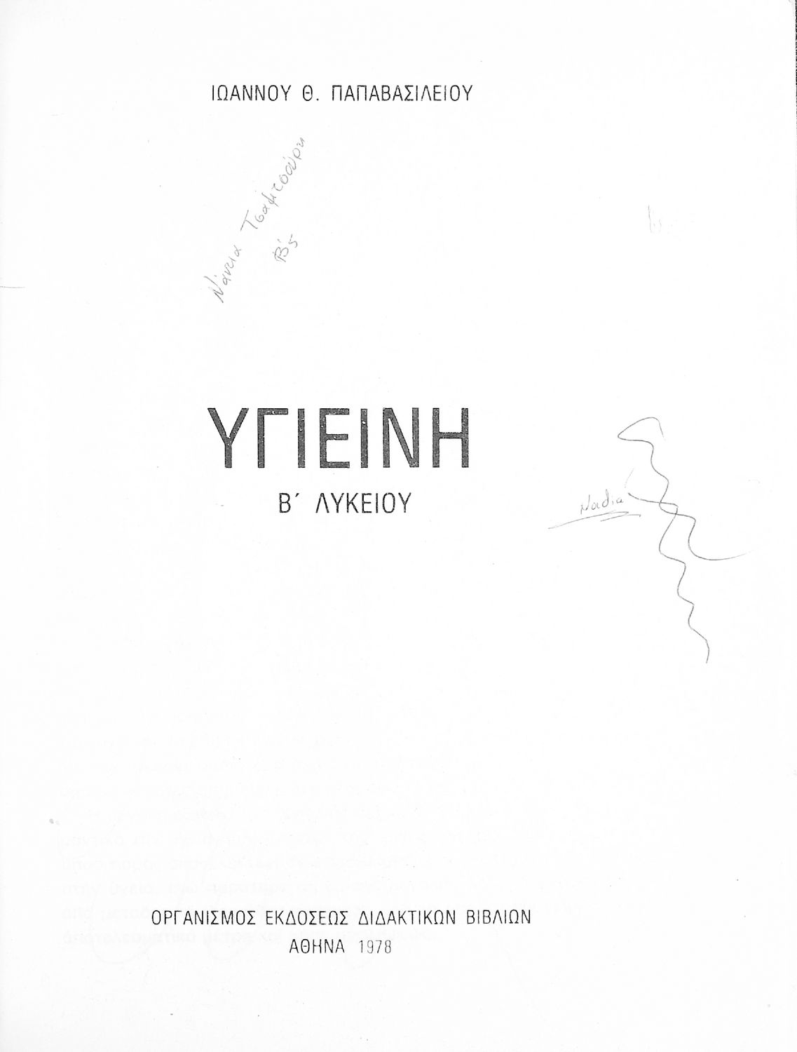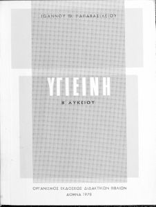 Σχολικό εγχειρίδιο Υγιεινής για τη Β΄ Λυκείου που εστιάζει περιβαντολλογική διάσταση της υγιεινής, τα λοιμώδη νοσήματα, και την κοινωνική υγιεινή.