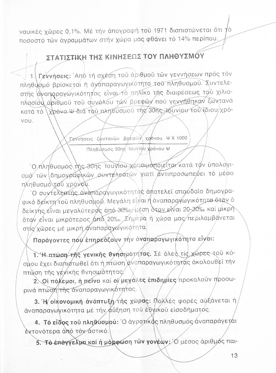 Σχολικό εγχειρίδιο Γεωγραφίας Β΄ Λυκείου που περιέχει στοιχεία ανθρωπογεωγραφίας, πληθυσμιακής κατανομής και οικονομικής κατάστασης με έμφαση στην Ελλάδα.