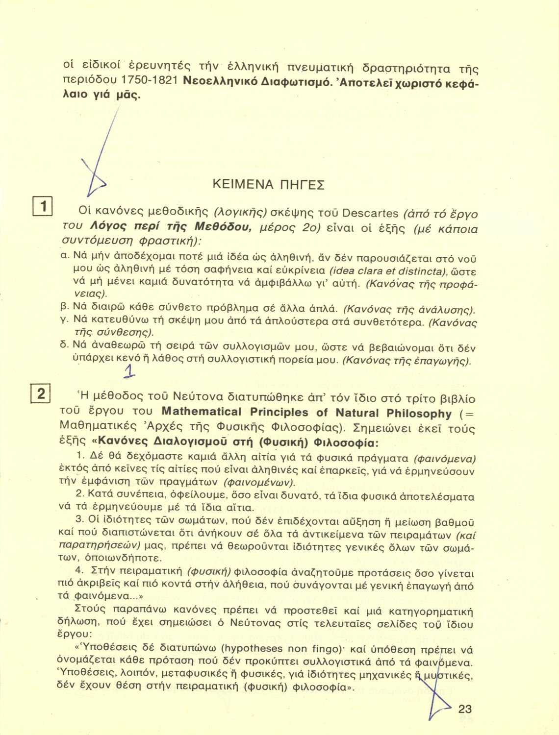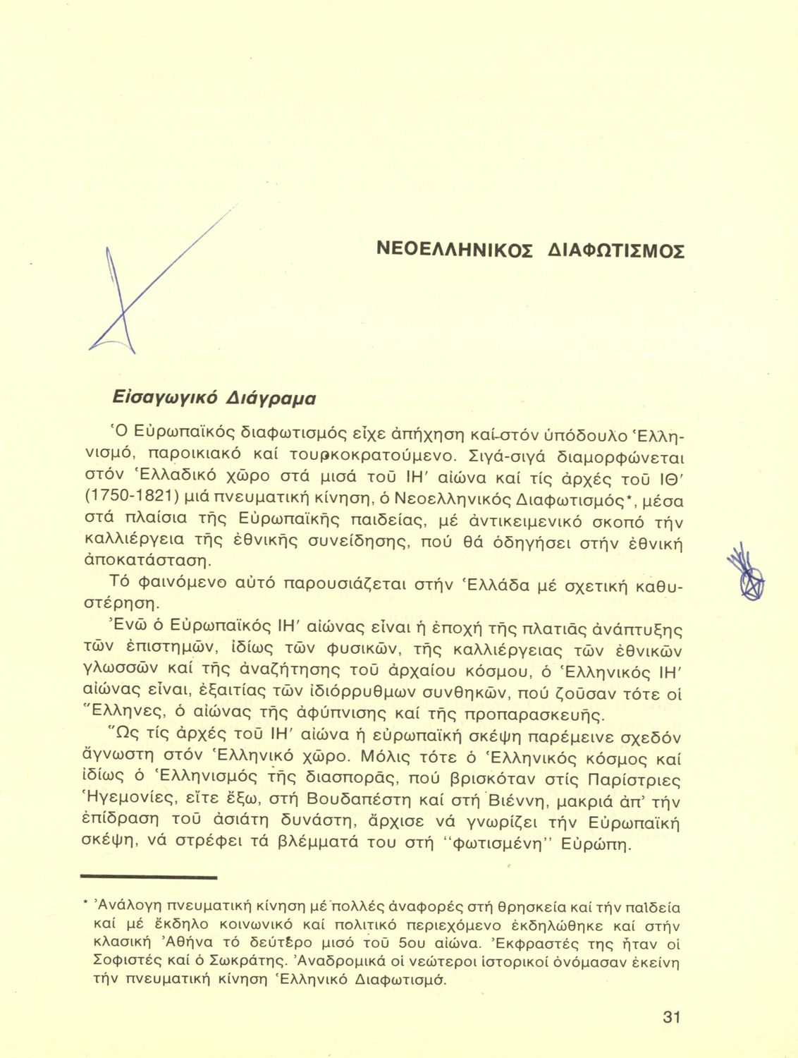 Σχολικό εγχειρίδιο Ιστορίας Γ΄ Λυκείου που πραγματεύεται τον ευρωπαϊκό διαφωτισμό, νεοελληνικό διαφωτισμό και θέματα νεοελληνικής ιστορίας (1750-1850) από πηγές.