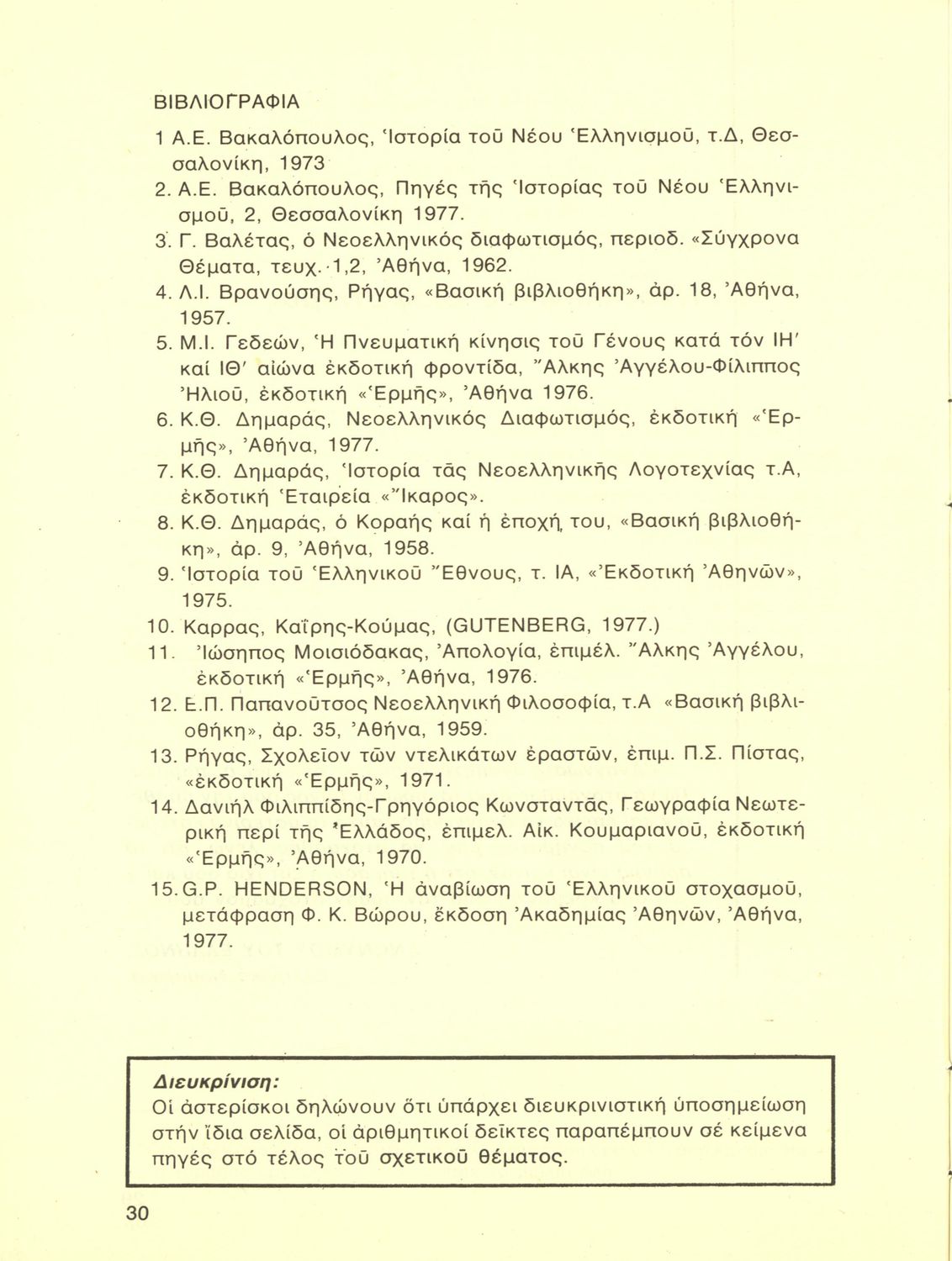 Βαθμίδα εκπαίδευσης: Δευτεροβάθμια Τάξη: Γ' Λυκείου Μάθημα: Ιστορία Γλώσσα: Δημοτική Παρουσίαση περιεχομένου: Σχολικό εγχειρίδιο Ιστορίας Γ΄ Λυκείου που πραγματεύεται τον ευρωπαϊκό διαφωτισμό, νεοελληνικό διαφωτισμό και θέματα νεοελληνικής ιστορίας (1750-1850) από πηγές. |