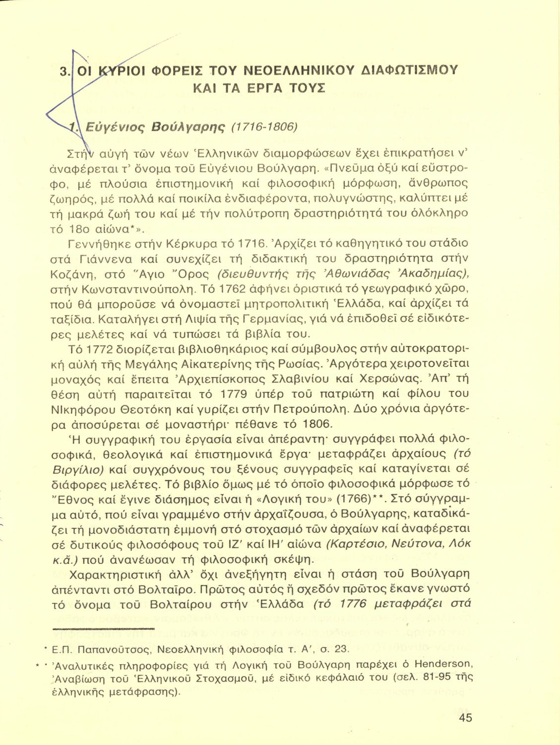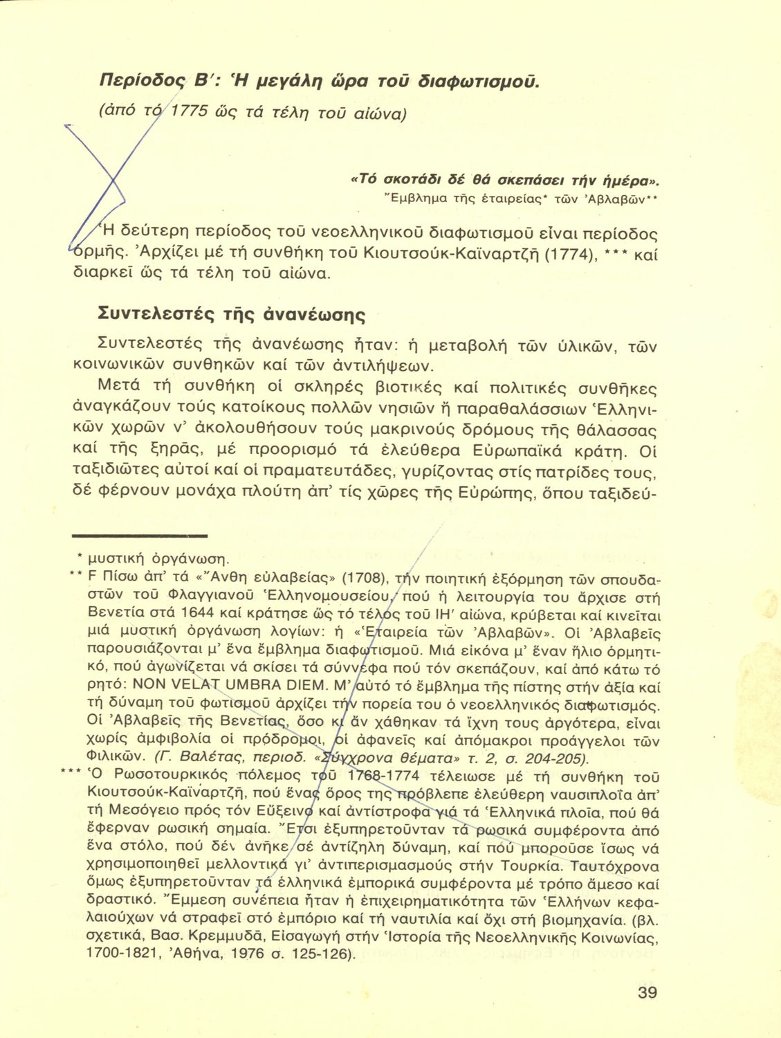 Σχολικό εγχειρίδιο Ιστορίας Γ΄ Λυκείου που πραγματεύεται τον ευρωπαϊκό διαφωτισμό, νεοελληνικό διαφωτισμό και θέματα νεοελληνικής ιστορίας (1750-1850) από πηγές.