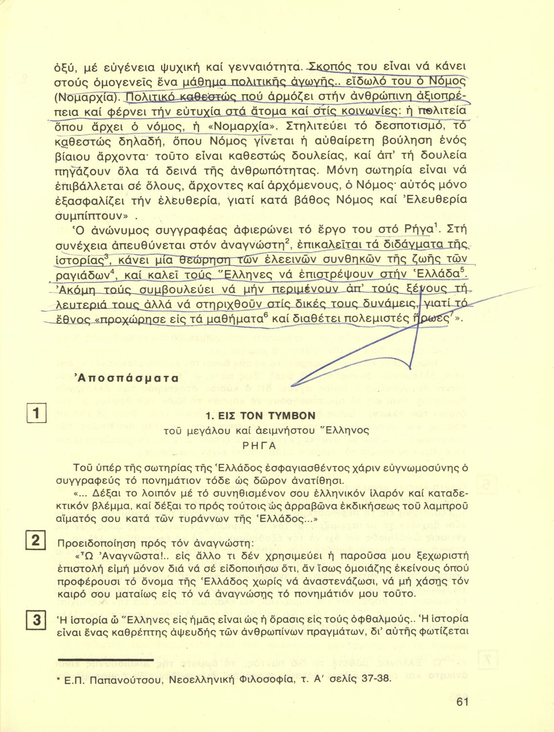 Βαθμίδα εκπαίδευσης: Δευτεροβάθμια Τάξη: Γ' Λυκείου Μάθημα: Ιστορία Γλώσσα: Δημοτική Παρουσίαση περιεχομένου: Σχολικό εγχειρίδιο Ιστορίας Γ΄ Λυκείου που πραγματεύεται τον ευρωπαϊκό διαφωτισμό, νεοελληνικό διαφωτισμό και θέματα νεοελληνικής ιστορίας (1750-1850) από πηγές. |