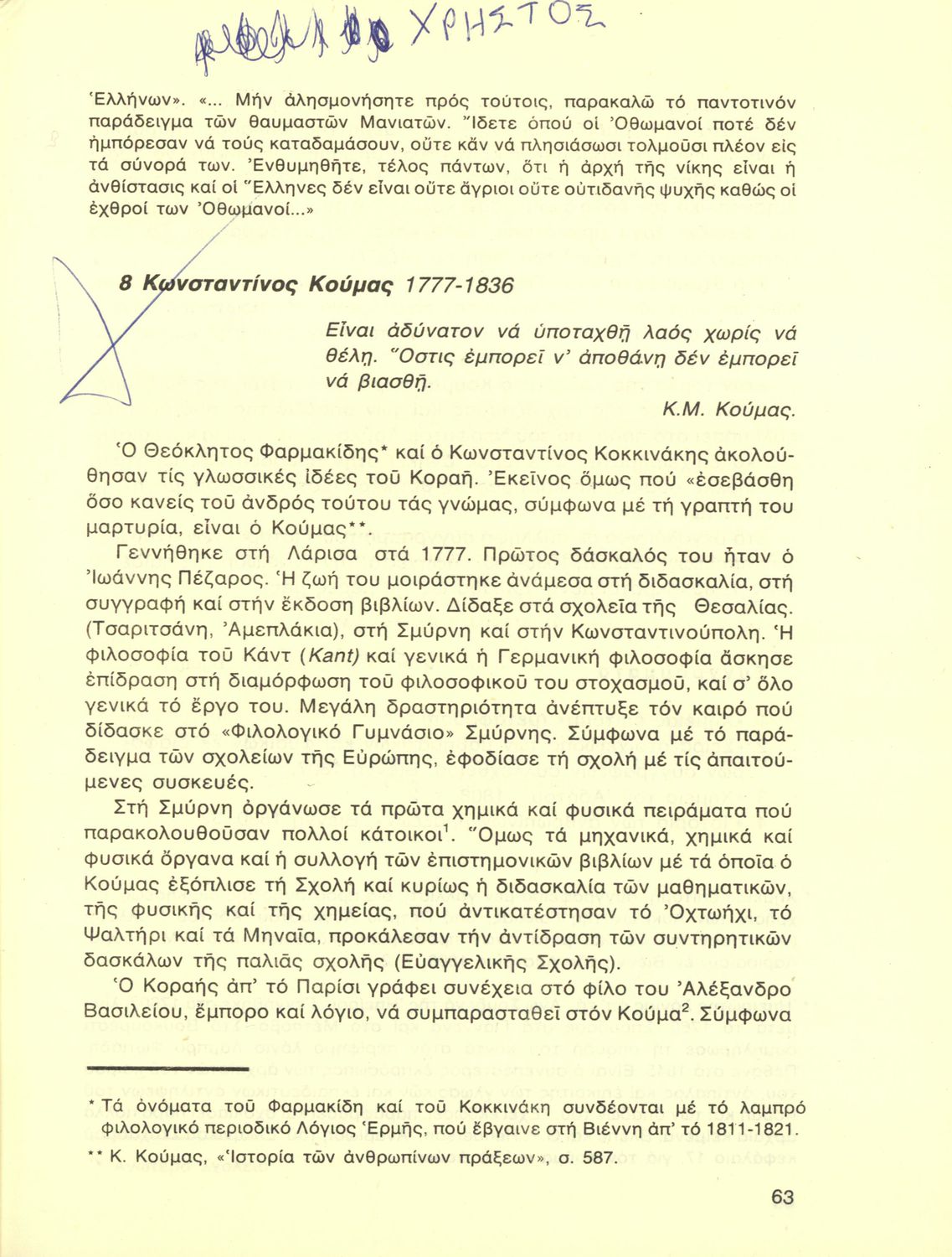 Σχολικό εγχειρίδιο Ιστορίας Γ΄ Λυκείου που πραγματεύεται τον ευρωπαϊκό διαφωτισμό, νεοελληνικό διαφωτισμό και θέματα νεοελληνικής ιστορίας (1750-1850) από πηγές.