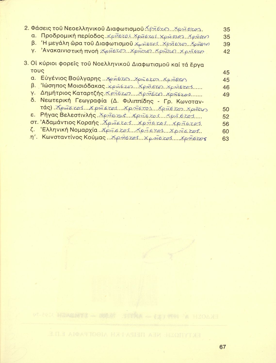 LDR 01256 2200205 4500 035 ## _a01-18419 040 ## _aΙνστιτούτο Εκπαιδευτικής Πολιτικής 041 ## _ael 100 ## _aΦ. Κ. Βώρος _aΞένη Οικονομοπούλου _aΒασίλειος Δ. Ασημομύτης _aΝικ. Π. Δημακόπουλος _aΘ. Κατσουλάκος 110 ## _a18419 245 0# _aΙστορία ύλη επιλογής Γ΄ Γενικού Λυκείου τεύχος α΄ 250 ## _a1η Έκδοση 260 ## _aΑθήνα _bΟργανισμός Εκδόσεως Διδακτικών Βιβλίων _c1979 300 ## _a67 _bΕξώφυλλο (έγχρωμο) _c20 520 ## _aΣχολικό εγχειρίδιο Ιστορίας Γ΄ Λυκείου που πραγματεύεται τον ευρωπαϊκό διαφωτισμό, νεοελληνικό διαφωτισμό και θέματα νεοελληνικής ιστορίας (1750-1850) από πηγές. 521 ## _aΓ' Λυκείου 522 ## _aΕλλάδα 546 ## _aΔημοτική 583 ## _a3295-1979 _c1979 650 #4 _aΒελεστινλής _aΒούλγαρης _aΚαταρτζής _aΛοκ _aΜοισιόδακας _aΝτεκάρτ _aΝτιντερό