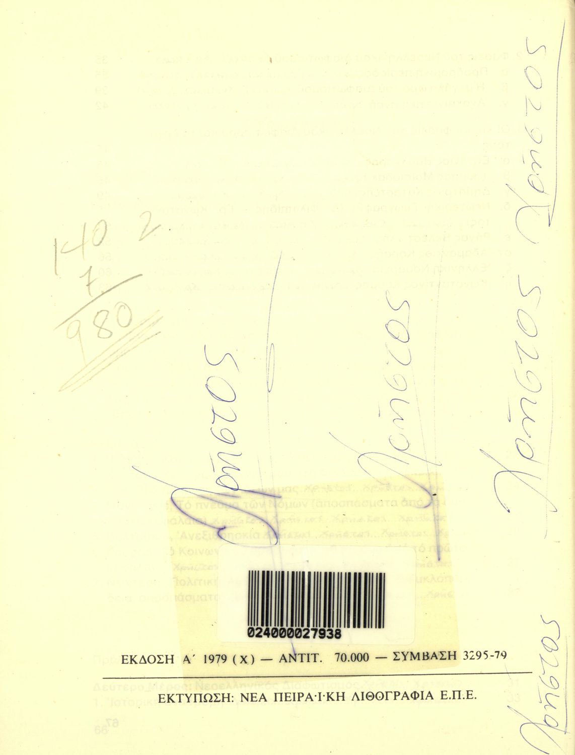Εκδότης: Οργανισμός Εκδόσεως Διδακτικών Βιβλίων Έτος έκδοσης: 1979 Τόπος έκδοσης: Αθήνα Έκδοση: 1η Υπουργική απόφαση / Σύμβαση: 3295-1979 Έτος έγκρισης: 1979 |