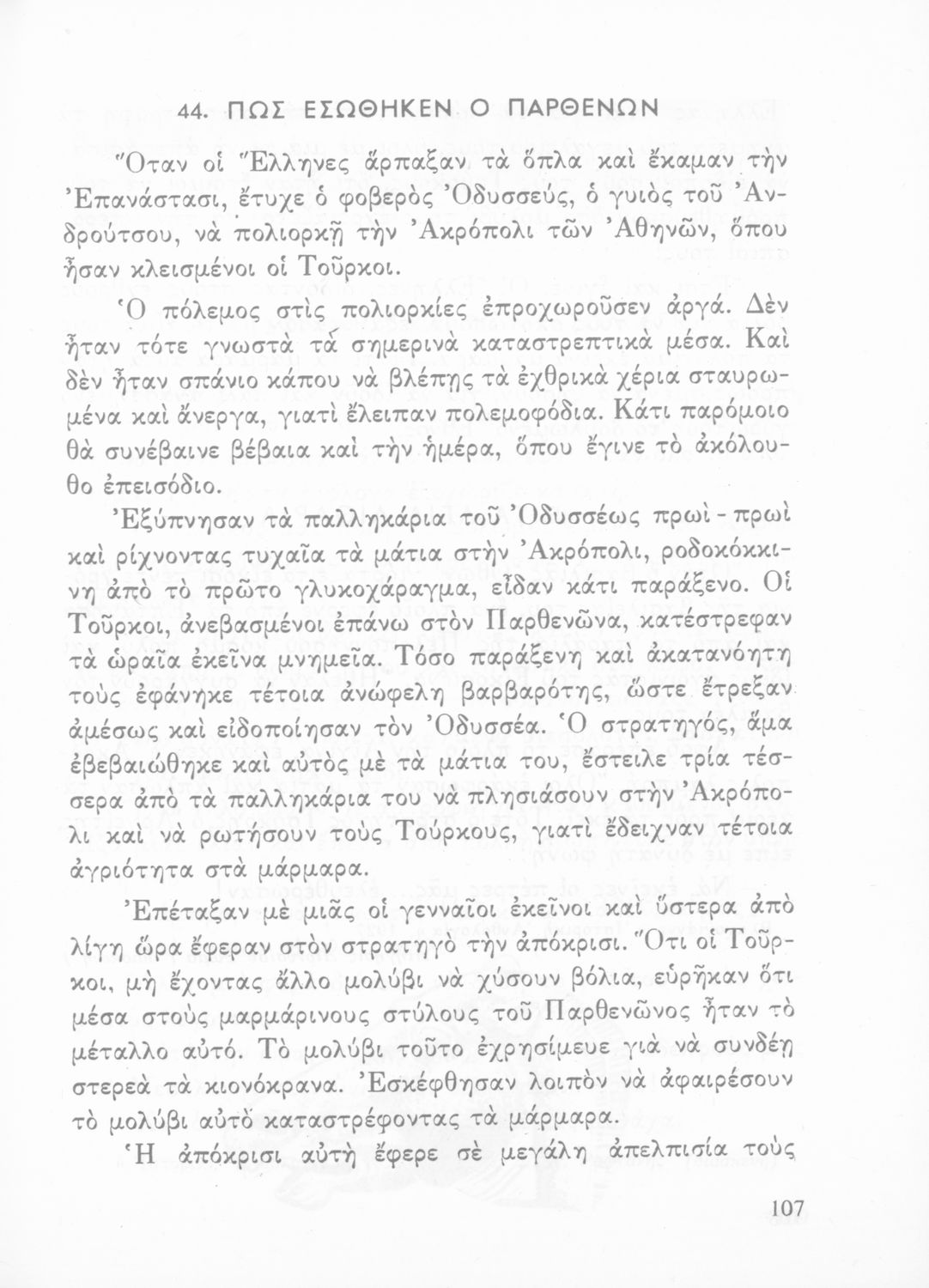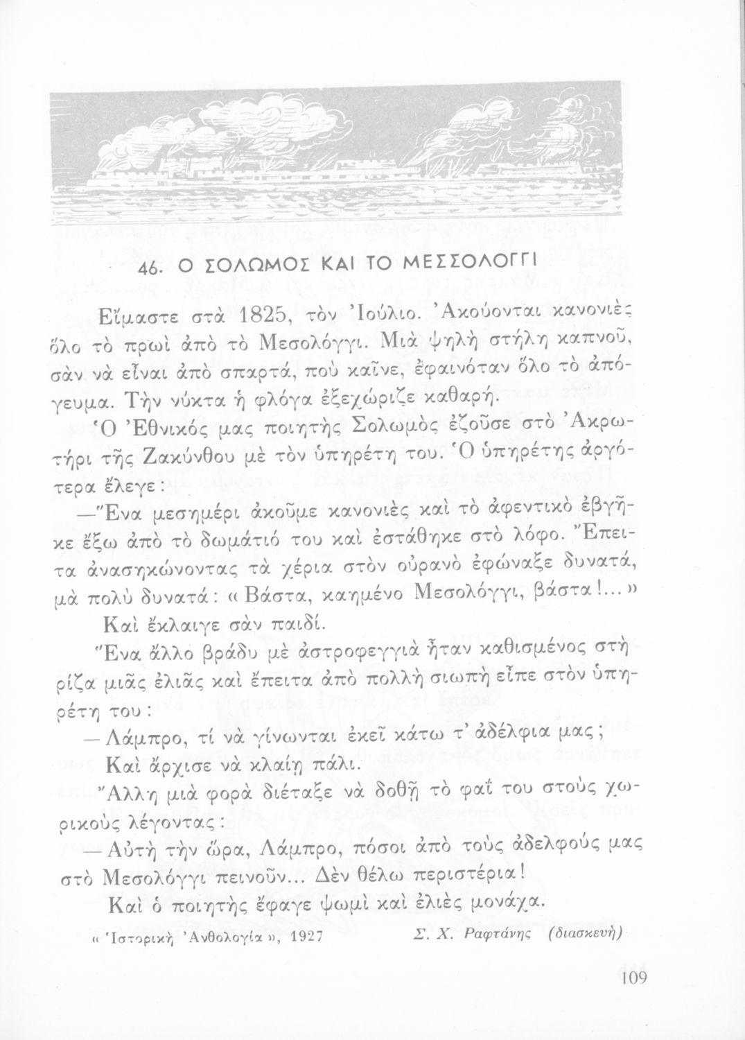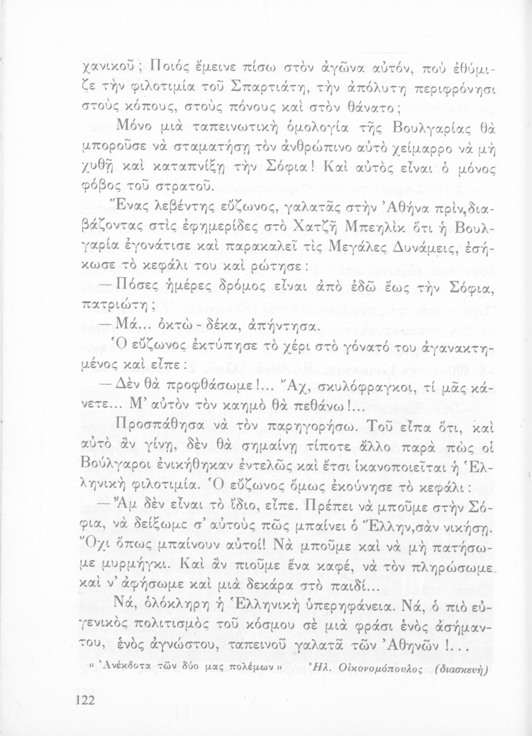 Αναγνωστικό ΣΤ΄ Δημοτικού που περιλαμβάνει θέματα από τις ελληνικές παραδόσεις και μύθους, την ελληνική φύση και θάλασσα και το τρίπτυχο "Πατρίς-θρησκεία-οικογένειαα".