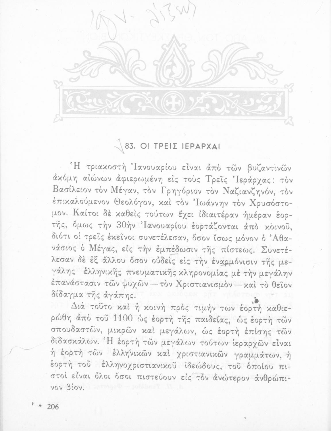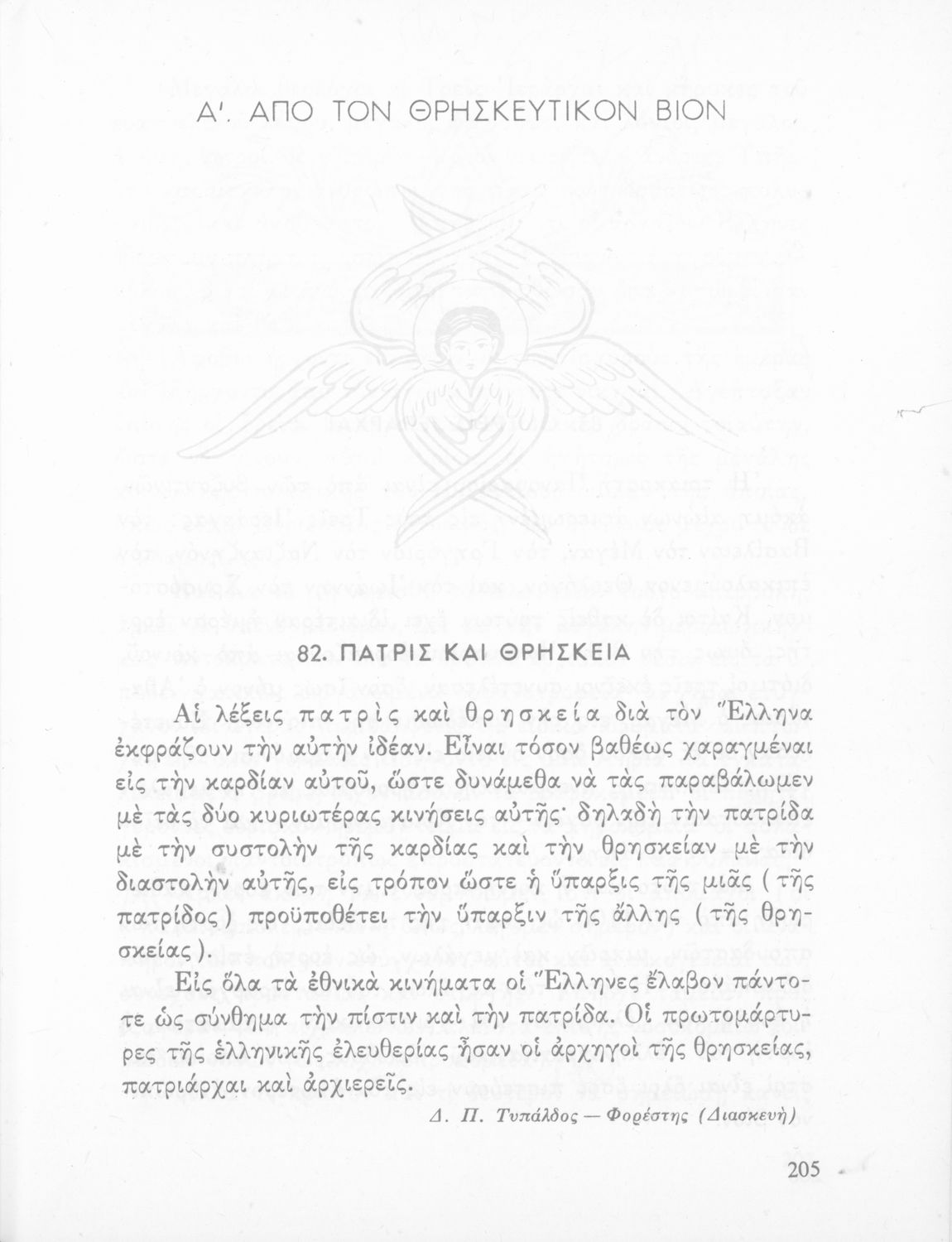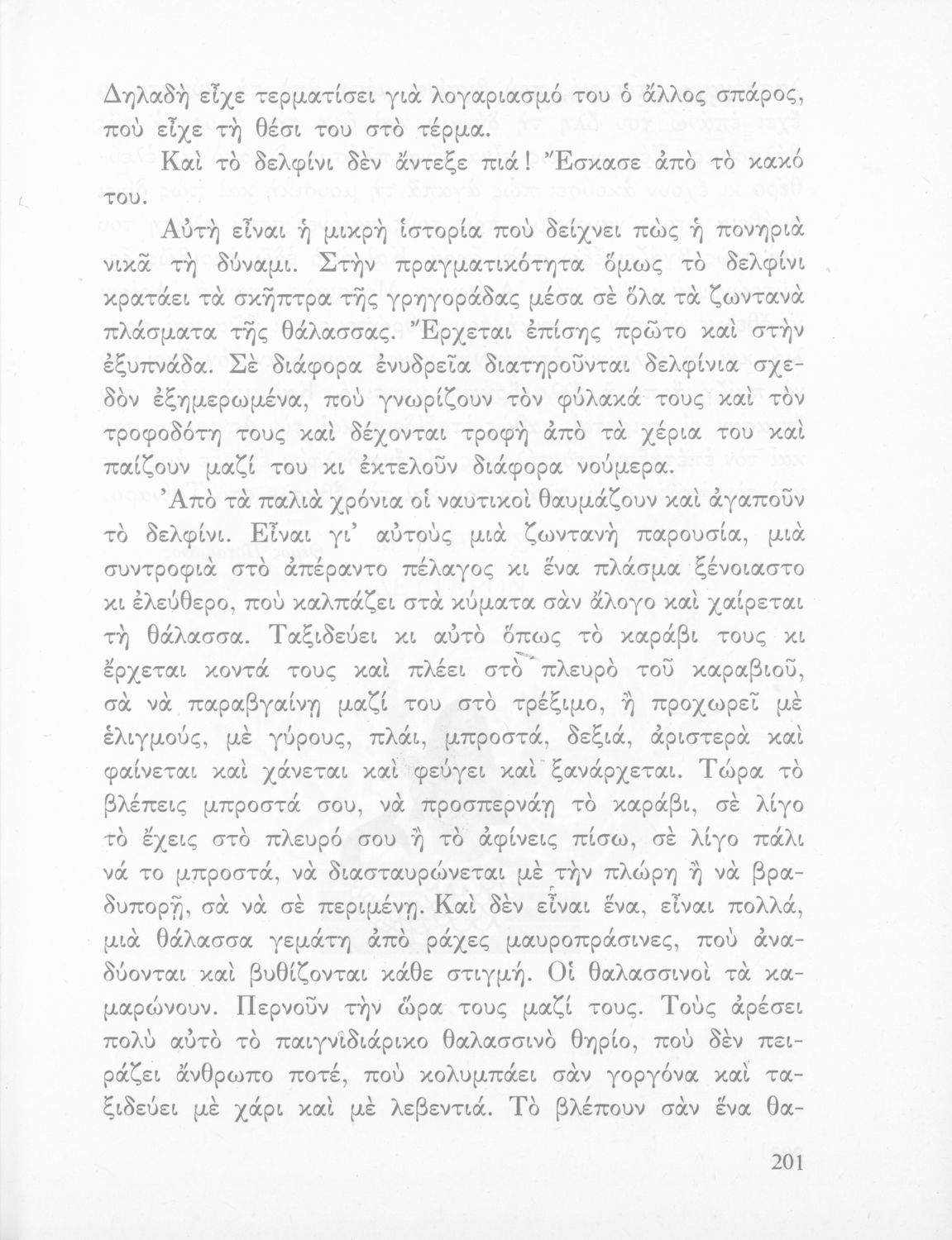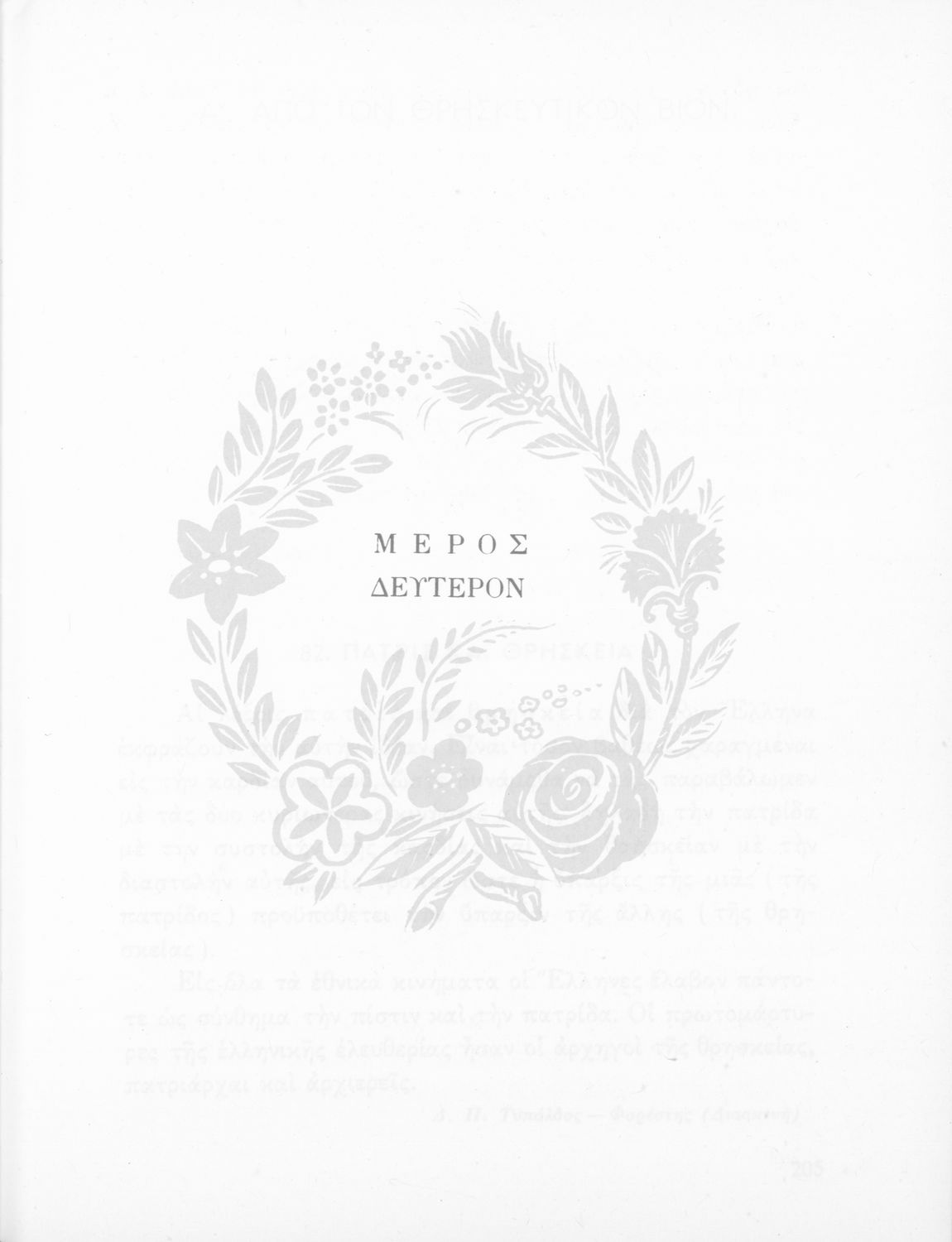Αναγνωστικό ΣΤ΄ Δημοτικού που περιλαμβάνει θέματα από τις ελληνικές παραδόσεις και μύθους, την ελληνική φύση και θάλασσα και το τρίπτυχο "Πατρίς-θρησκεία-οικογένειαα".