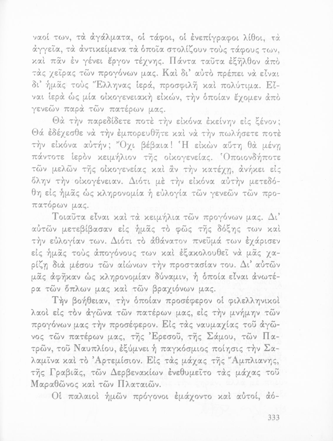 Αναγνωστικό ΣΤ΄ Δημοτικού που περιλαμβάνει θέματα από τις ελληνικές παραδόσεις και μύθους, την ελληνική φύση και θάλασσα και το τρίπτυχο "Πατρίς-θρησκεία-οικογένειαα".
