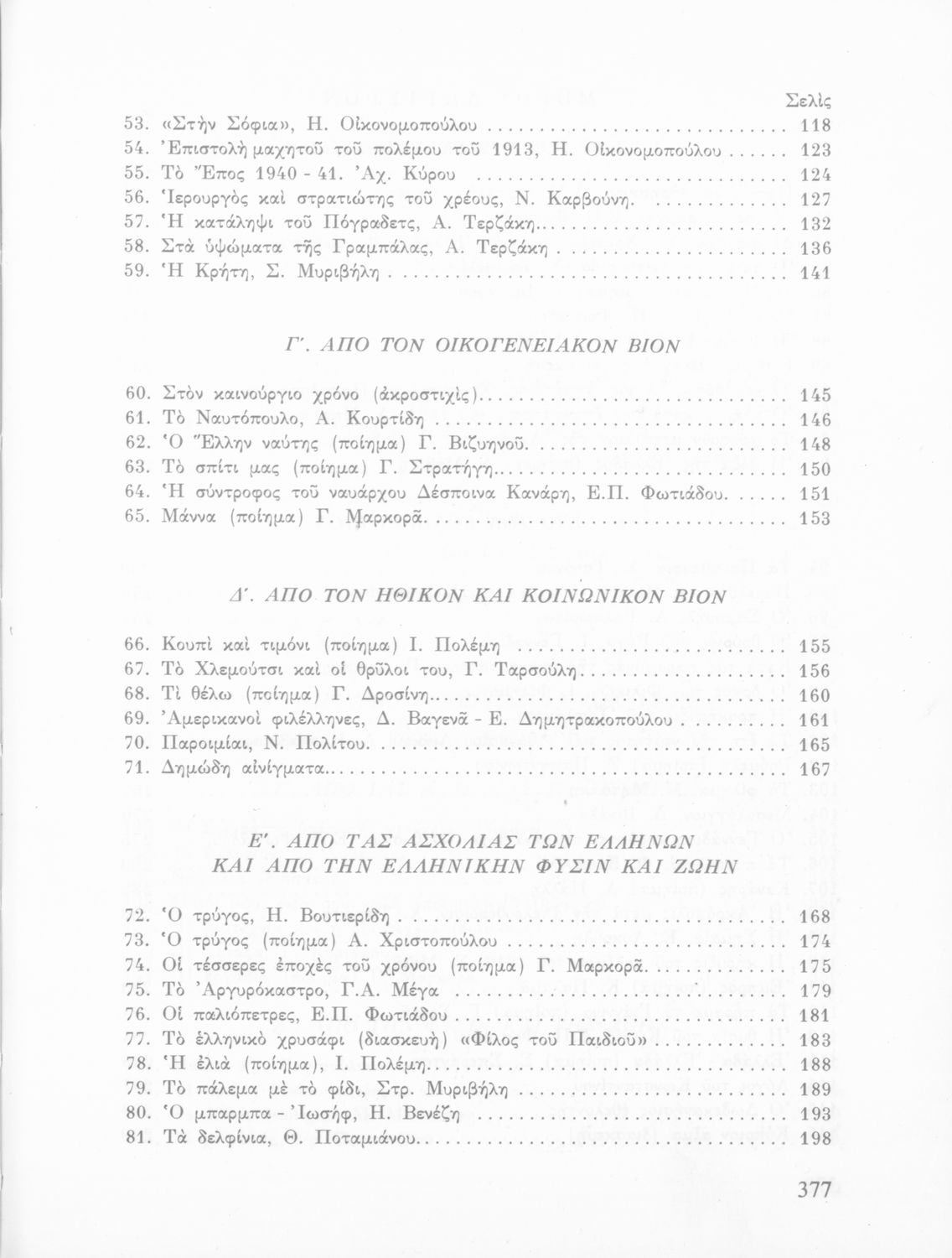 Αναγνωστικό ΣΤ΄ Δημοτικού που περιλαμβάνει θέματα από τις ελληνικές παραδόσεις και μύθους, την ελληνική φύση και θάλασσα και το τρίπτυχο "Πατρίς-θρησκεία-οικογένειαα".