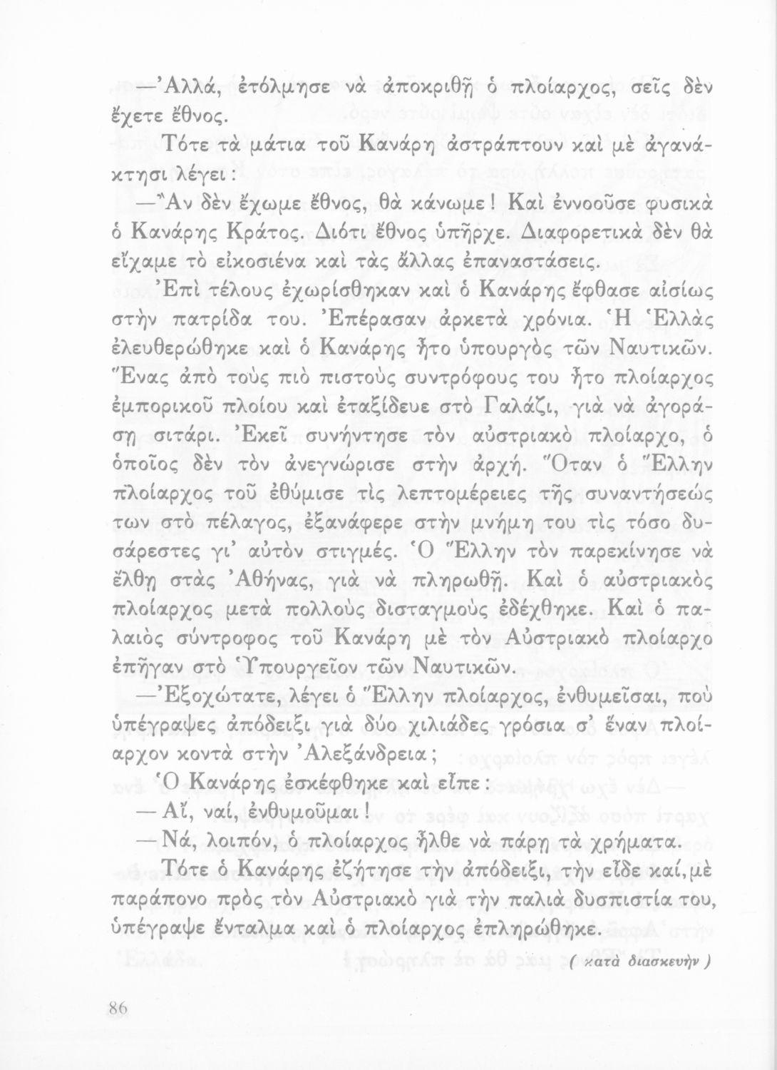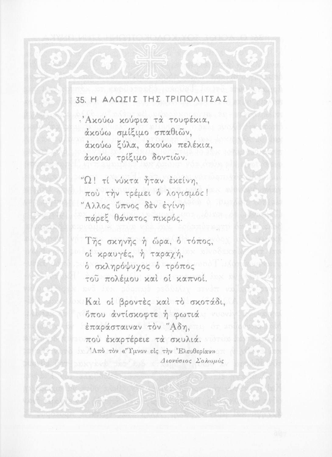 Αναγνωστικό ΣΤ΄ Δημοτικού που περιλαμβάνει θέματα από τις ελληνικές παραδόσεις και μύθους, την ελληνική φύση και θάλασσα και το τρίπτυχο "Πατρίς-θρησκεία-οικογένειαα".