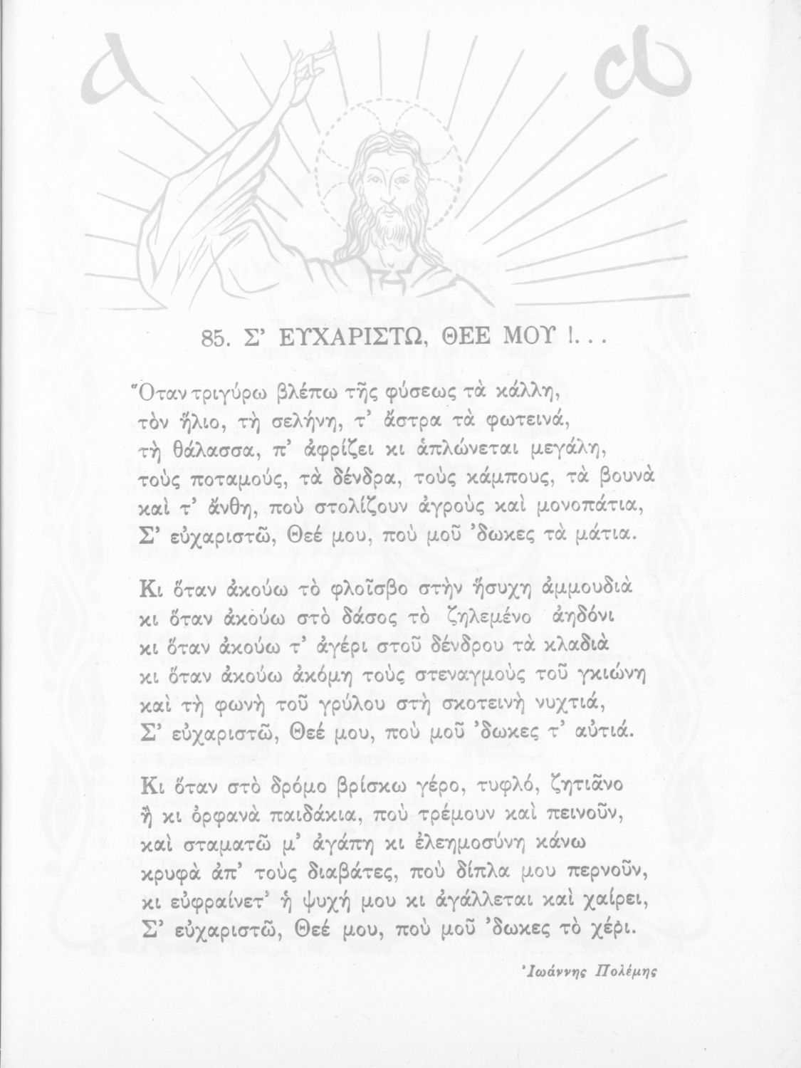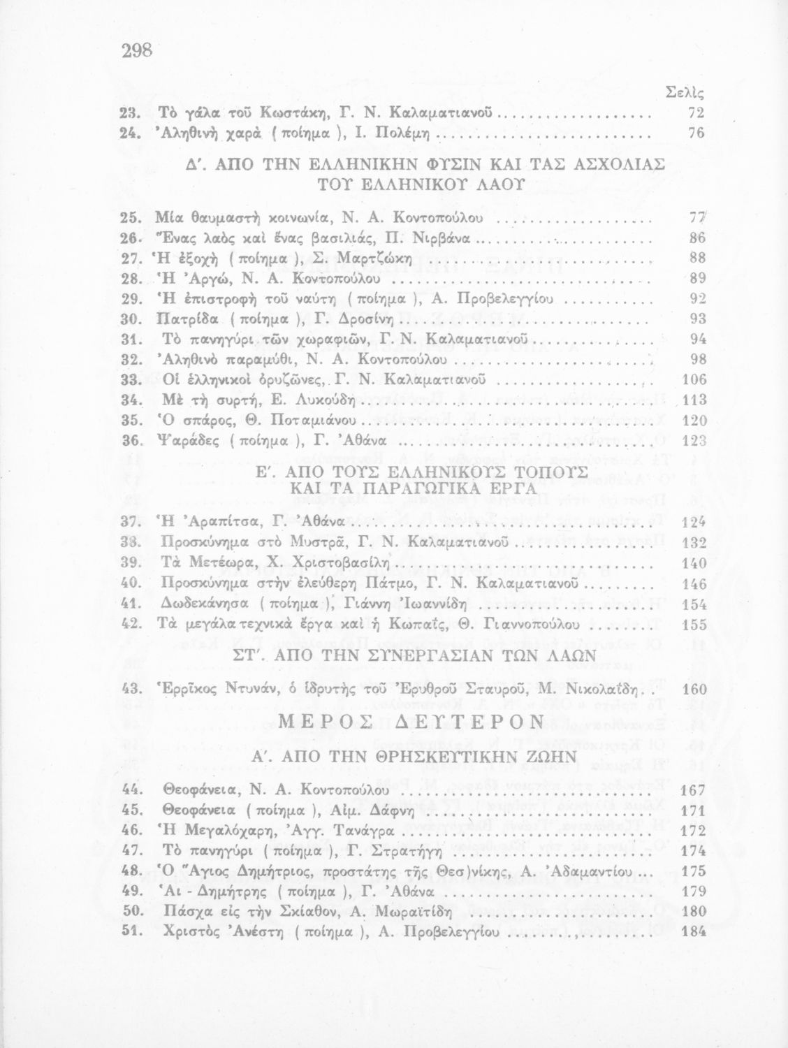 Αναγνωστικό για τους μαθητές της Ε΄ Δημοτικού που περιλαμβάνει ποιήματα και πεζά με θέματα από την οικογενειακή, κοινωνική, πολιτιστική και ιδιωτική ζωή των Ελλήνων, τη φύση, την ιστορία και την θρησκεία τους.