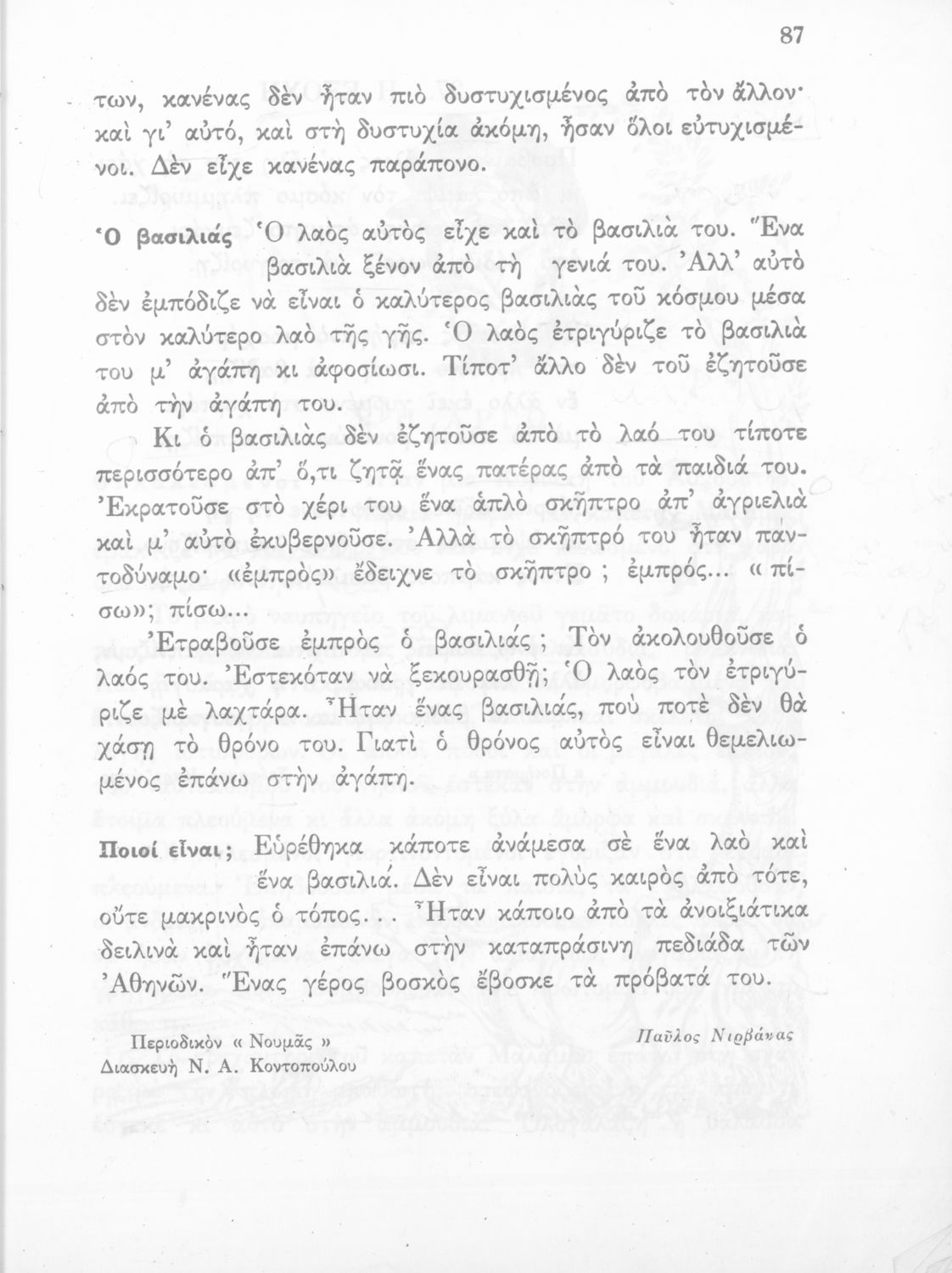 Αναγνωστικό Ε' Δημοτικού που εξιστορεί τη ζωή και το έργο του Μ. Αλεξάνδρου. Προοριζόταν, όπως αναφέρει η έκθεση των κριτών, να εμπνεύσει "φρονήματα υψηλά και γενναία και να υποθάλψη το συναίσθημα της ...