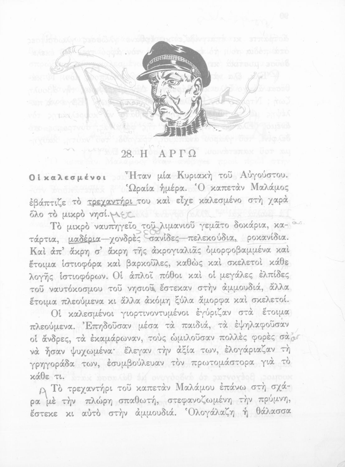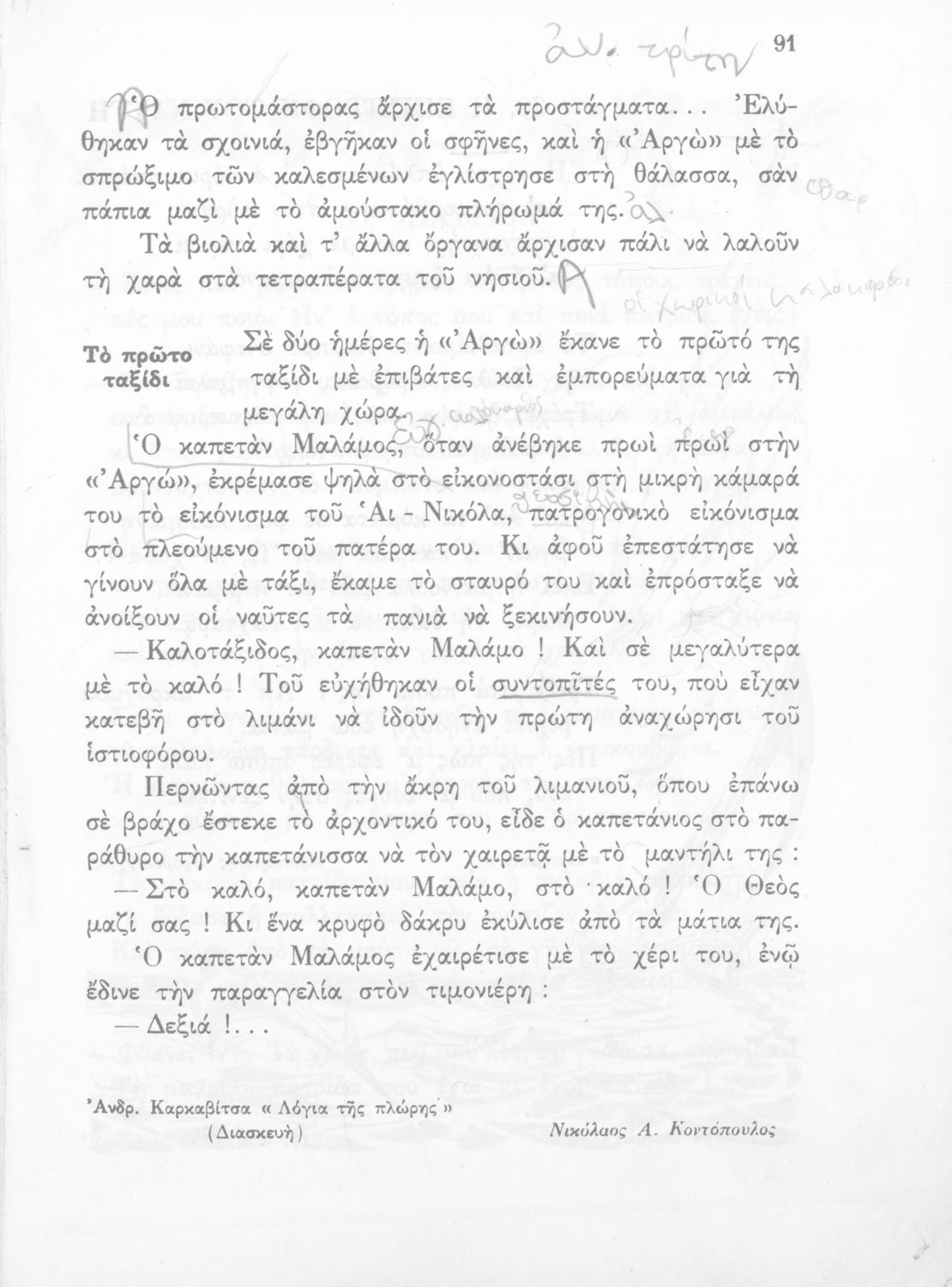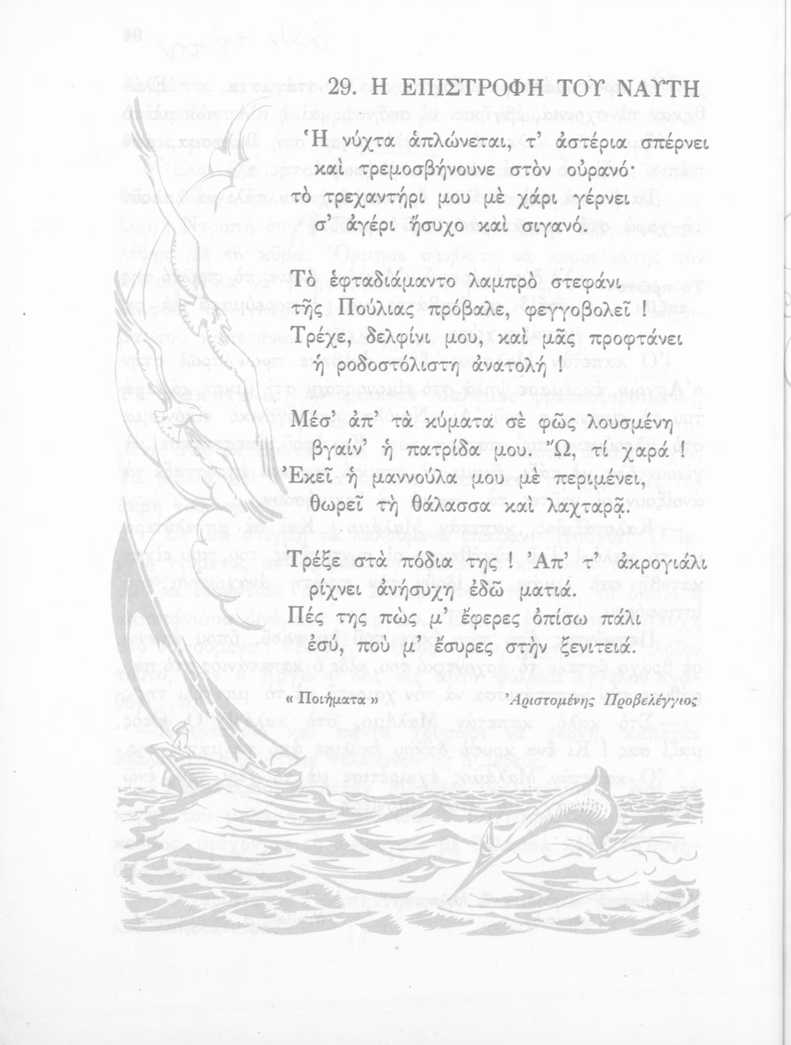 Αναγνωστικό Ε΄ Δημοτικού που περιέχει κείμενα εμπνευσμένα από την εθνική, κοινωνική και οικογενειακή ζωή και την ελληνική φύση, μυθολογία και ιστορία.