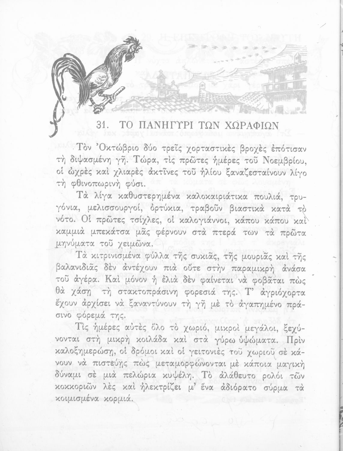 Αναγνωστικό για τους μαθητές της Ε΄ Δημοτικού που περιλαμβάνει ποιήματα και πεζά με θέματα από την οικογενειακή, κοινωνική, πολιτιστική και ιδιωτική ζωή των Ελλήνων, τη φύση, την ιστορία και την θρησκεία τους.