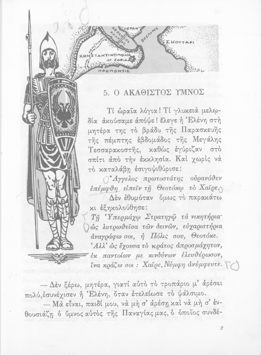 Αναγνωστικό Ε΄ Δημοτικού που περιέχει κείμενα εμπνευσμένα από την εθνική, κοινωνική και οικογενειακή ζωή και την ελληνική φύση, μυθολογία και ιστορία. Φέρει το σύμβολο της δικτατορίας.