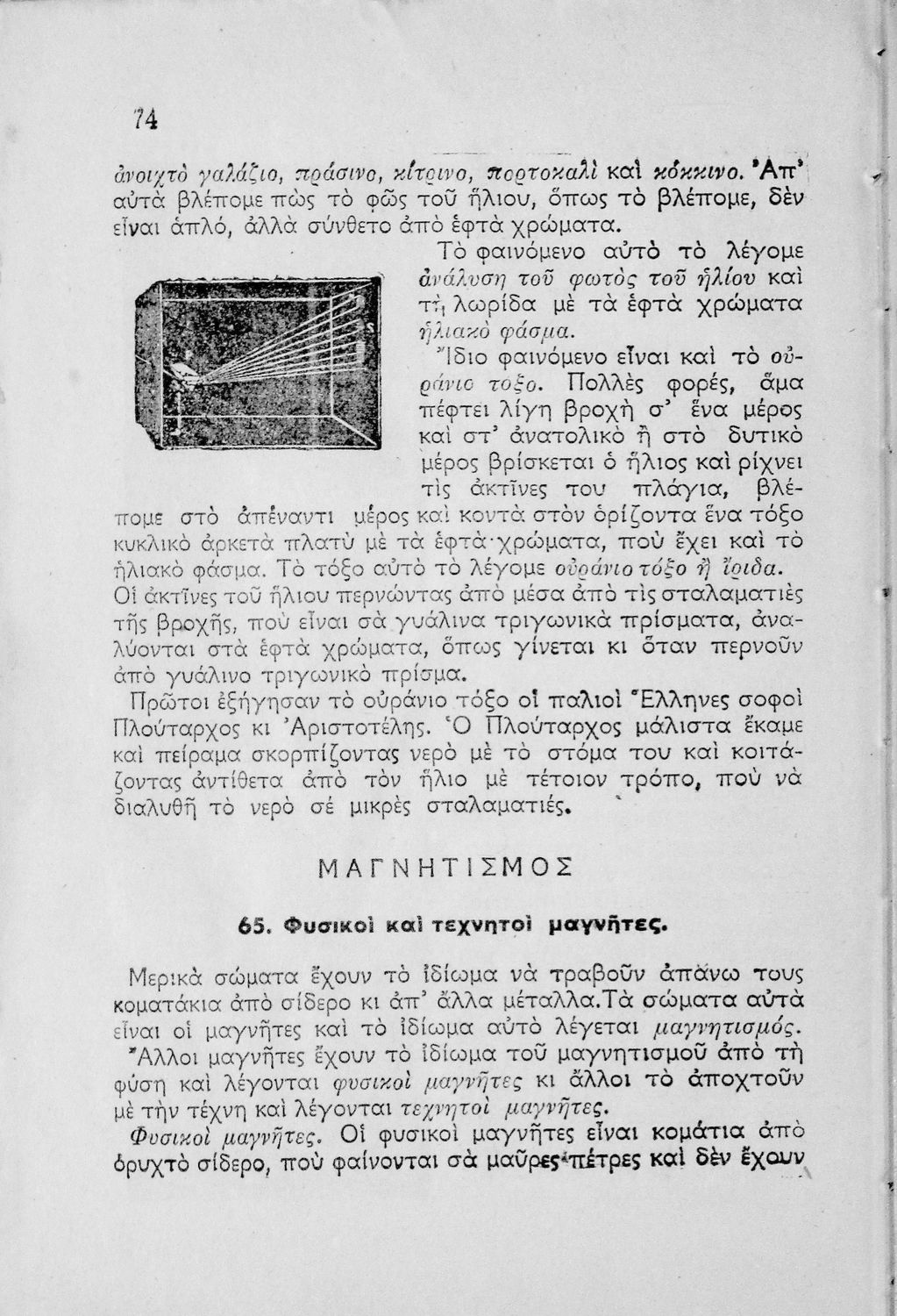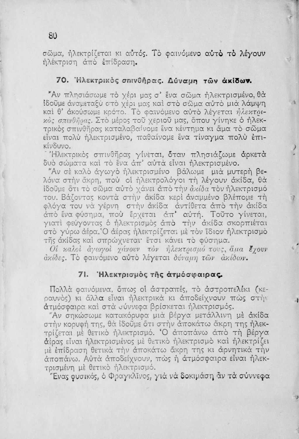 Βαθμίδα εκπαίδευσης: Πρωτοβάθμια Μάθημα: Φυσική Γλώσσα: Απλή καθαρεύουσα Παρουσίαση περιεχομένου: Μαθητικό βοήθημα Φυσικής Δημοτικού που παρέχει βασικές γνώσεις της φυσικής επιστήμης. Αναλύει τις ιδιότητες των σωμάτων, καθώς και της θερμότητας, του ηλεκτρισμού και του μαγνητισμού, την υδροστατική, την βαρύτητα και την αεροστατική. Αναφέρει πολλά από τα όργανα, που χρησιμοποιούνται στη φυσική, καθώς και τις πρακτικές εφαρμογές της επιστήμης στην καθημερινότητα. Περιέχει εικόνες και σχεδιαγράμματα τα οποία βοηθούν τη διδασκαλία. |