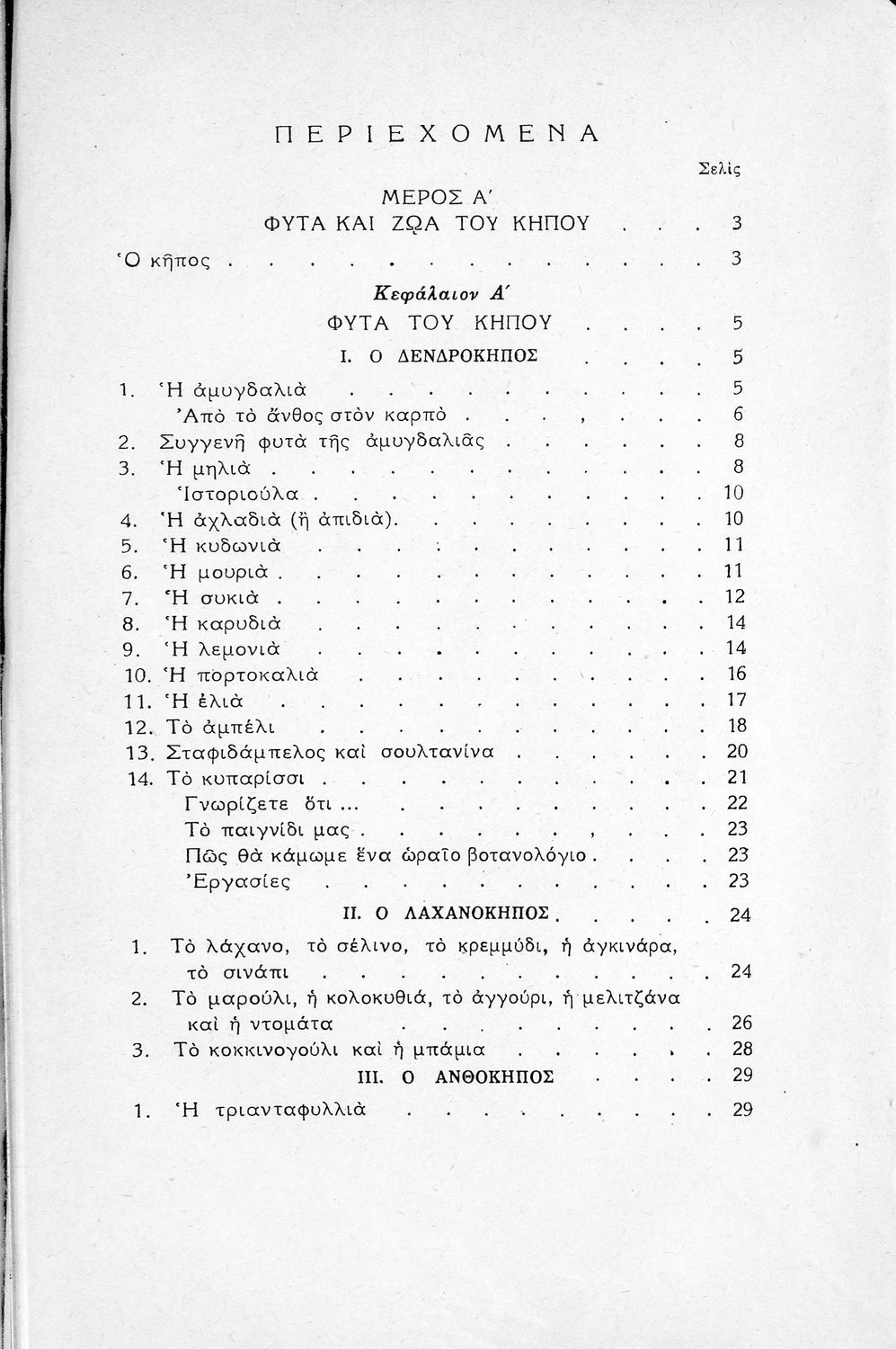 Το σύγγραμμα ήταν μαθητικό βοήθημα για το μάθημα της Φυσικής Ιστορίας στο Δημοτικό. Περιέχει πληροφορίες για τη φυτολογία και τη ζωολογία. Το βιβλίο έχει εικόνες, οι οποίες διευκολύνουν τη διδασκαλία των ...